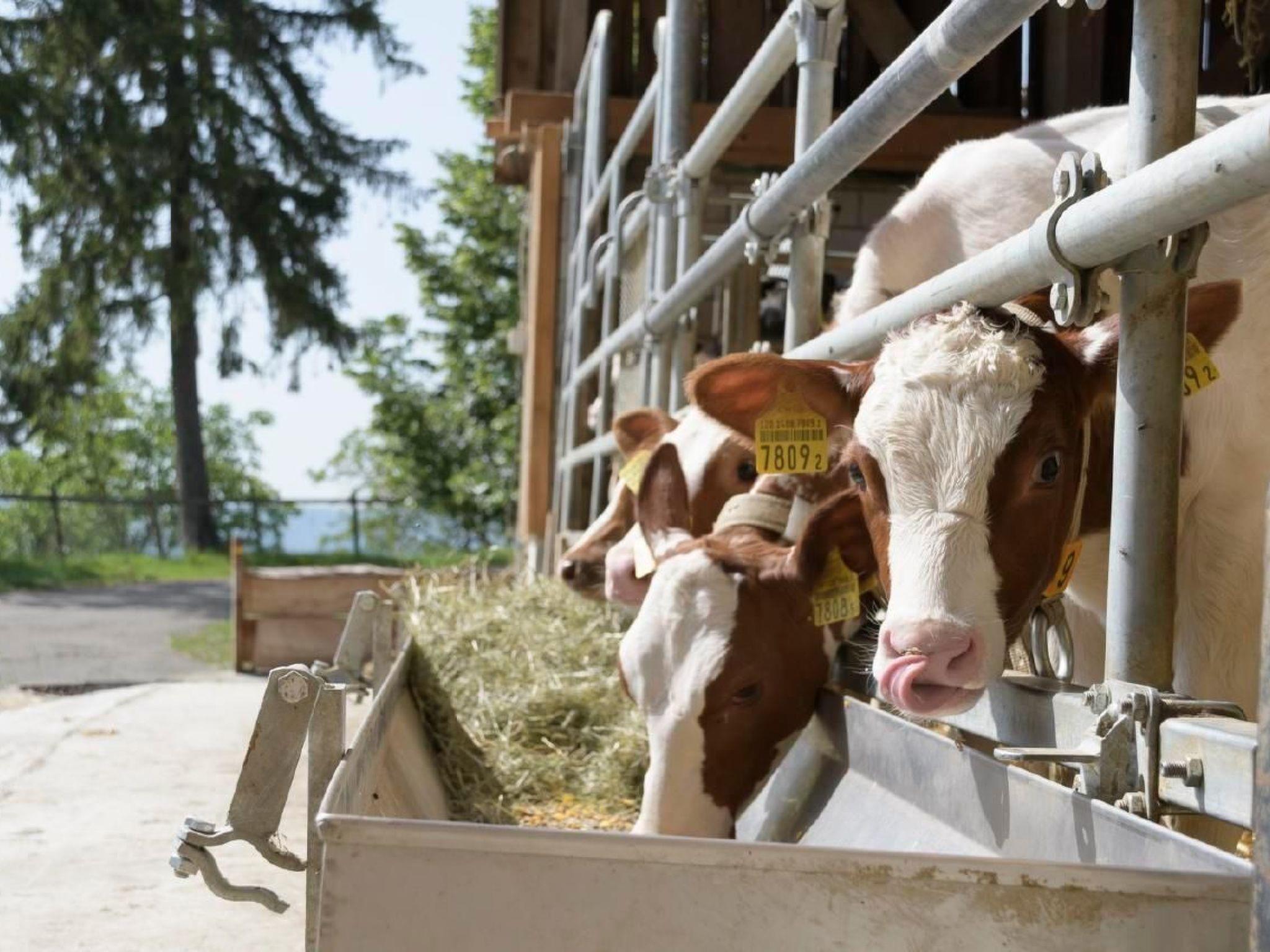 On our farm we have dairy cows and calves, alpacas, cats, goats, chickens and rabbits.