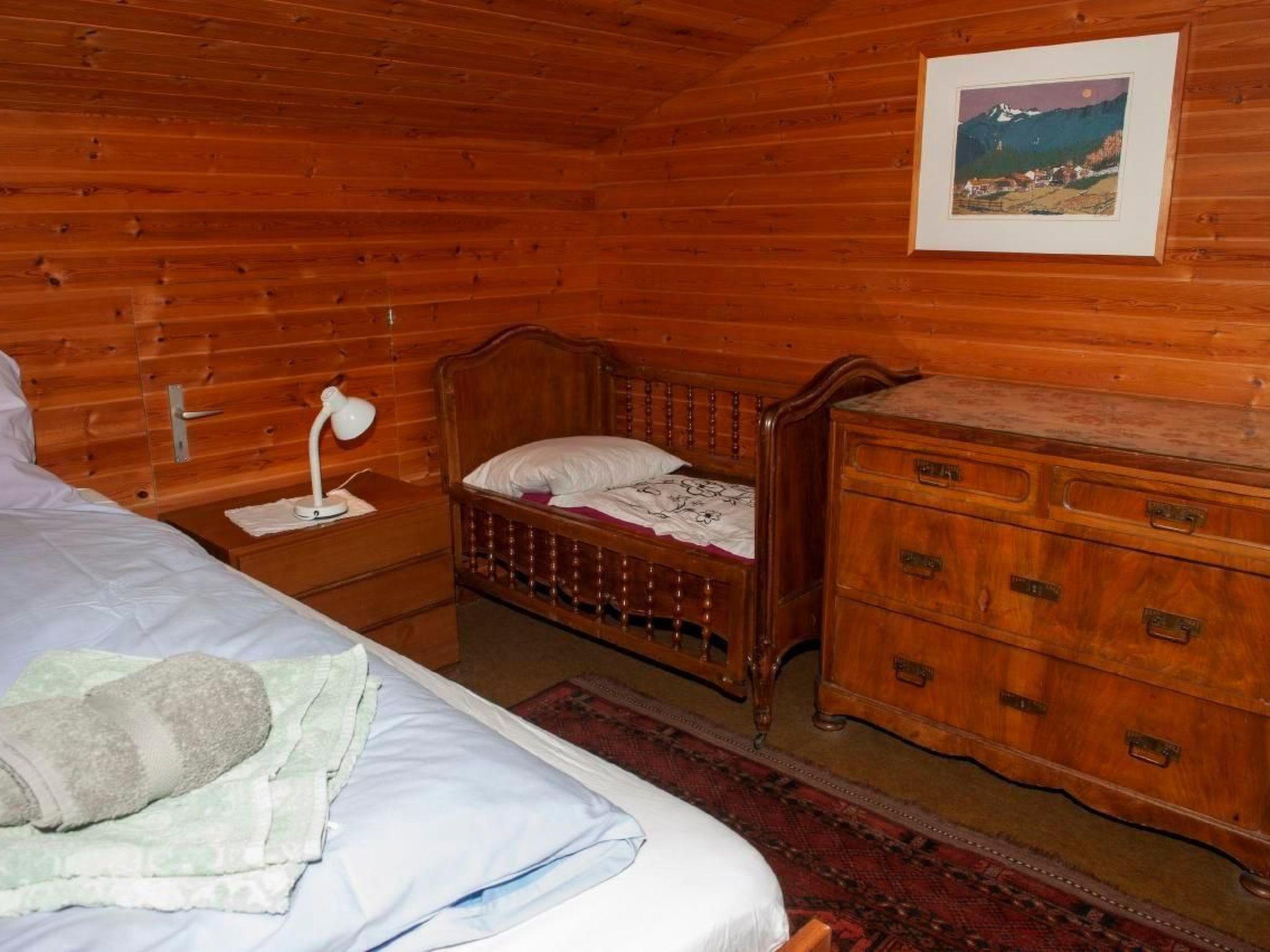 The interior leaves nothing to be desired. and a fully equipped kitchen with four hobs and oven, dishwasher, raclette and fondue equipment and a capsule coffee machine. In the spacious living room, the dining table with 9 chairs and the fireplace with a seating area invite you to spend cosy hours; with a small grand piano, a stereo system and Swisscom TV, a games collection and a large selection of fiction and crime novels in the house library, entertainment is provided. - Two bedrooms on the first floor each sleep 2 people (one with a double bed and one with a Grand LIt and a cot), and there is also a single bedroom on the ground floor with a rustic old wooden bed. An entrance hall with wardrobe and shoe rack, a boiler room with washing machine, a bathroom with bathtub and a separate toilet complete the interior.