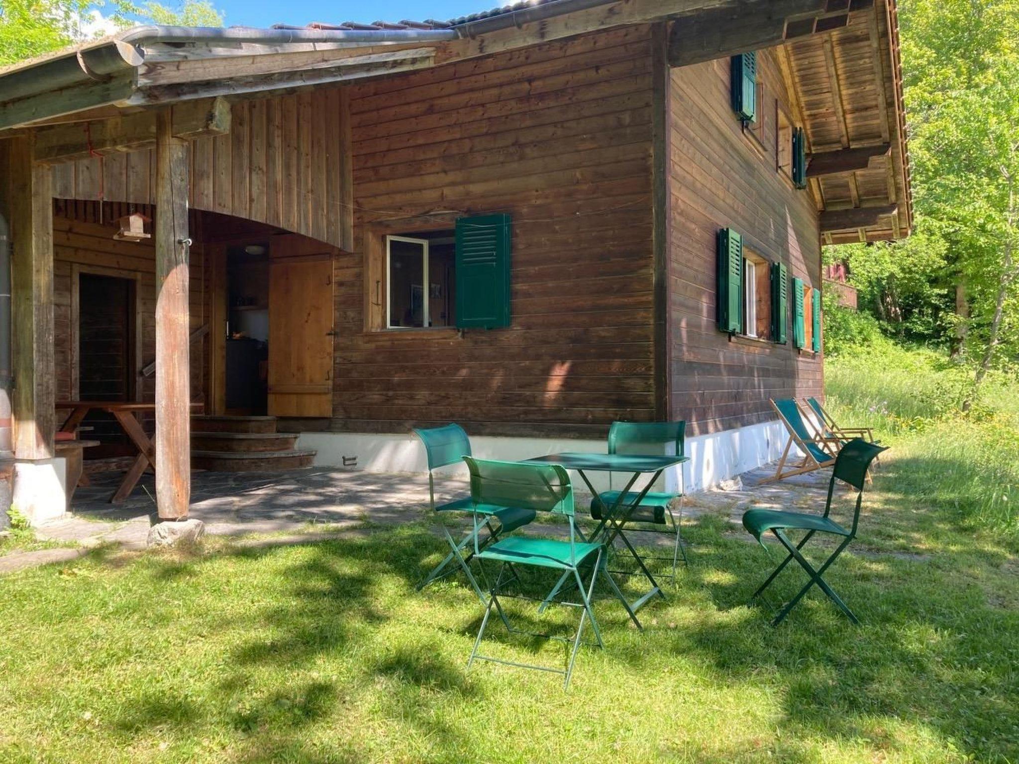 Chalet with a big conversion, especially suitable for families. 78 m2 the whole house. 3 double rooms and and cosy living room with tiled stove, large dining table and corner bench, sofa and CD player. The central wood stove is easy to use. (It is heated manually from the corridor.) New kitchen with glass ceramic stove, oven, refrigerator and dishwasher. It opens directly onto the covered furnished seating area. Renovated bathroom with shower and double sink. The WC is separately next to it. In the screed there is an additional living area/playing room with a separate additional bed. Toys and swings for children available. The chalet (built in 1950) was extensively renovated in 2011. It is situated on the edge of a protected maple forest with a beautiful view of the whole mountain panorama. With its surrounding meadows, the nearby stream, the playground in the forest, it offers children a lot of freedom of movement. For outdoor life, there is an adjoining shelter with garden furniture and games (badminton, etc.) available for use.