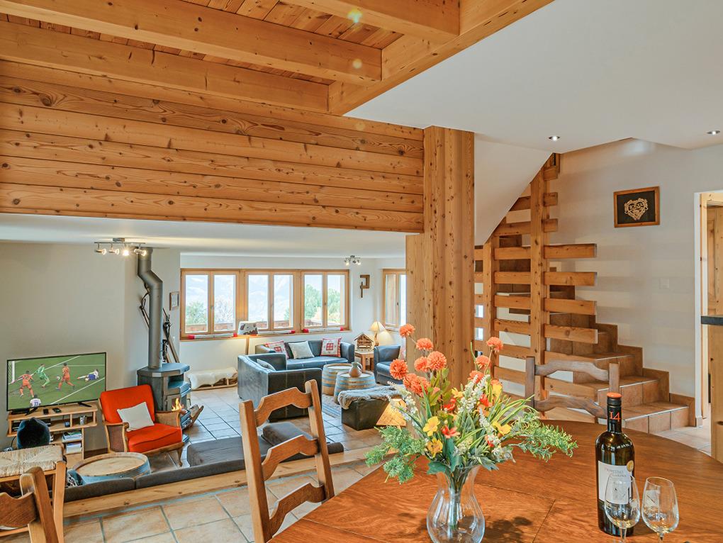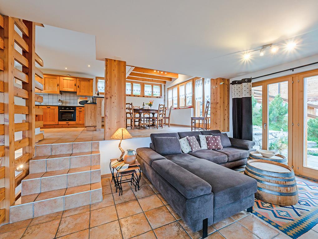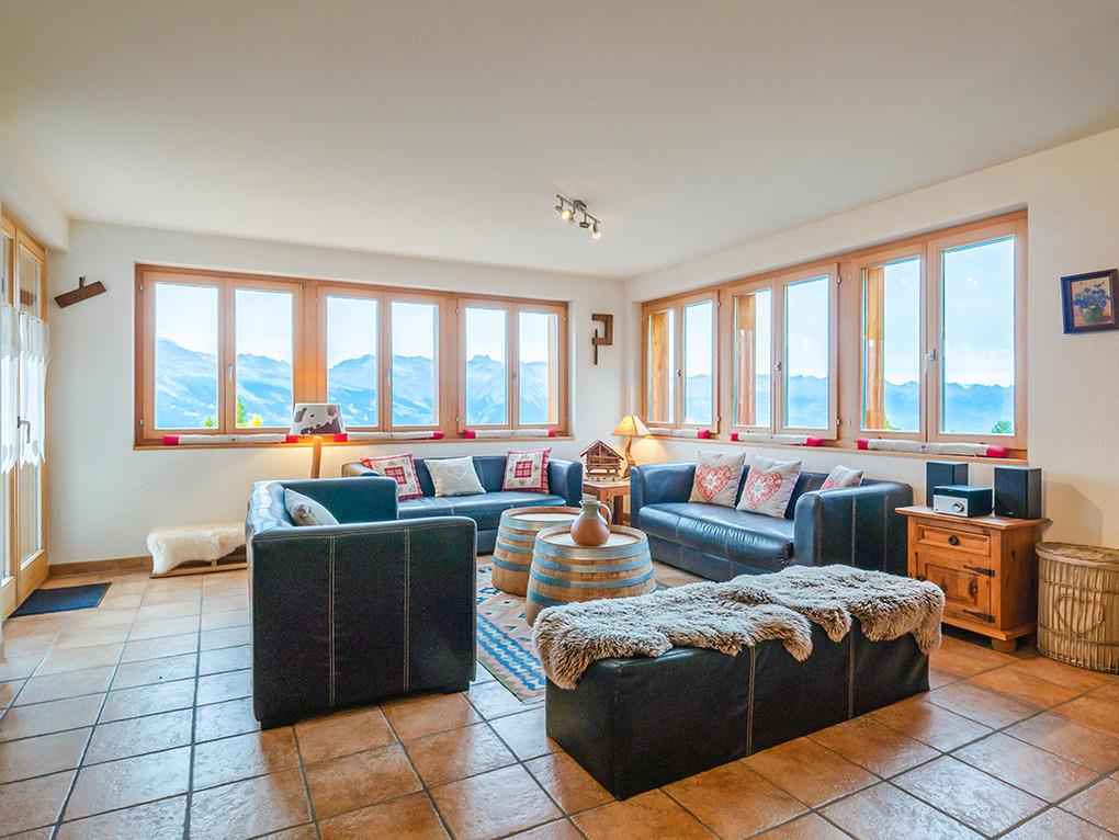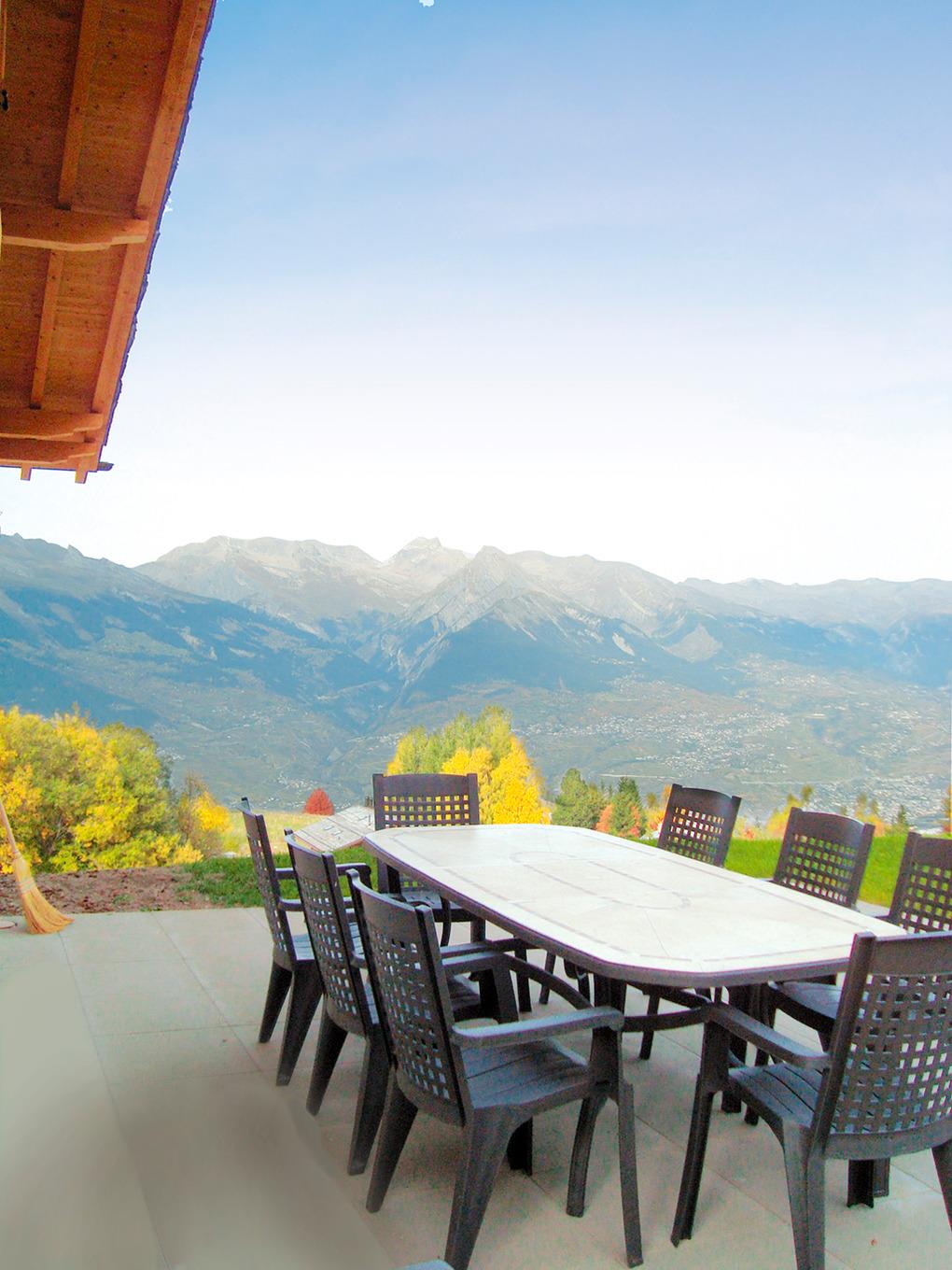 Ort: Nendaz. Traumhafte Lage oberhalb des Ortes, inmitten von Almwiesen, Wanderwegen und hübschen Chalets. Phantastischer Panoramablick ins Rhône-Tal. Ortsmitte zu Fuß 650 m, per Pkw 1,3 km. Restaurant 150 m.