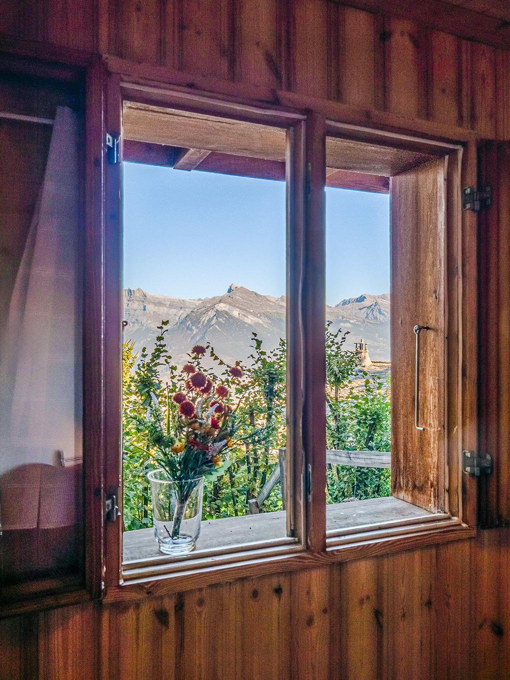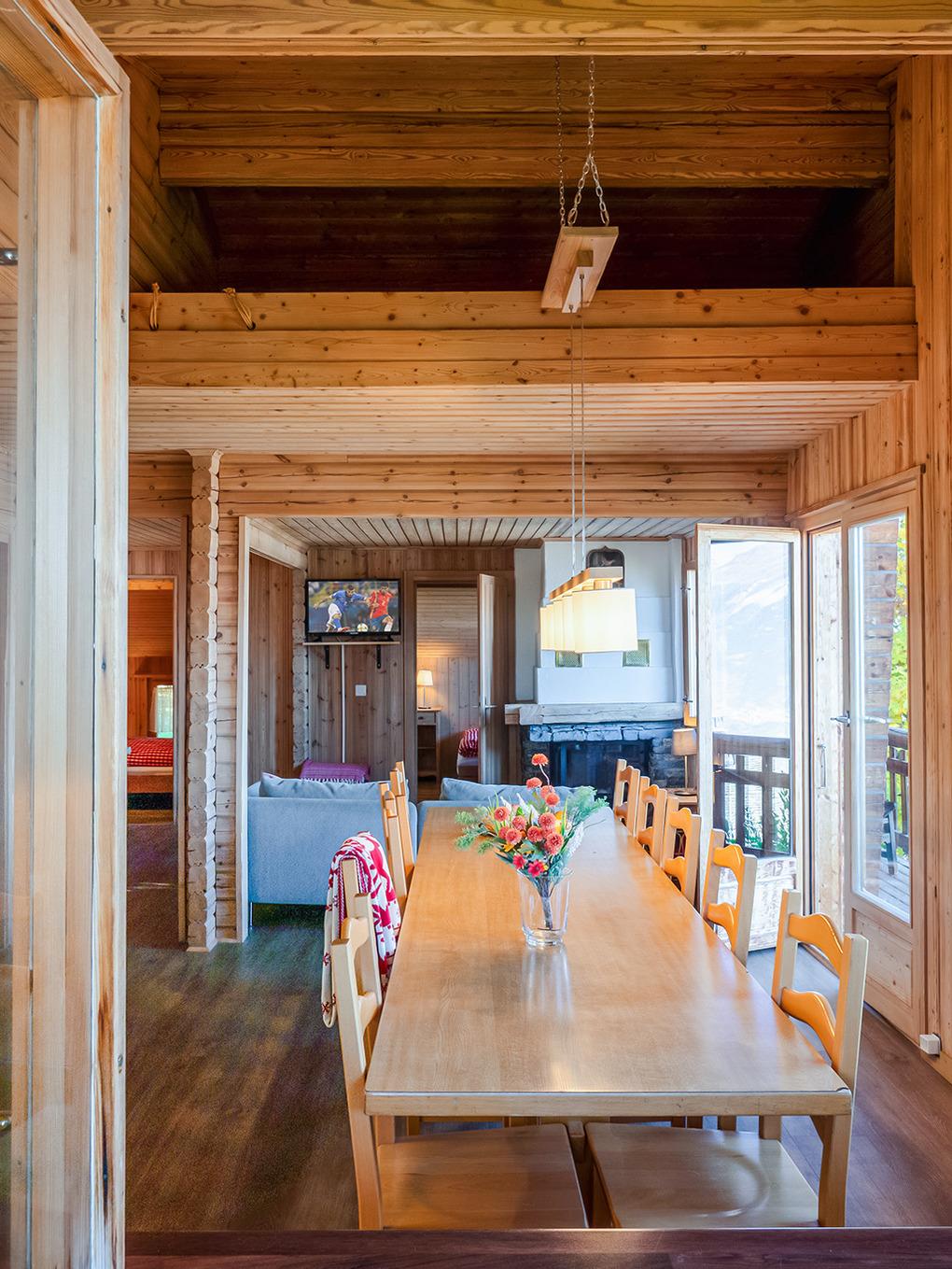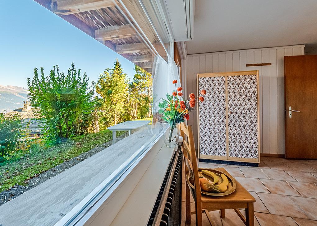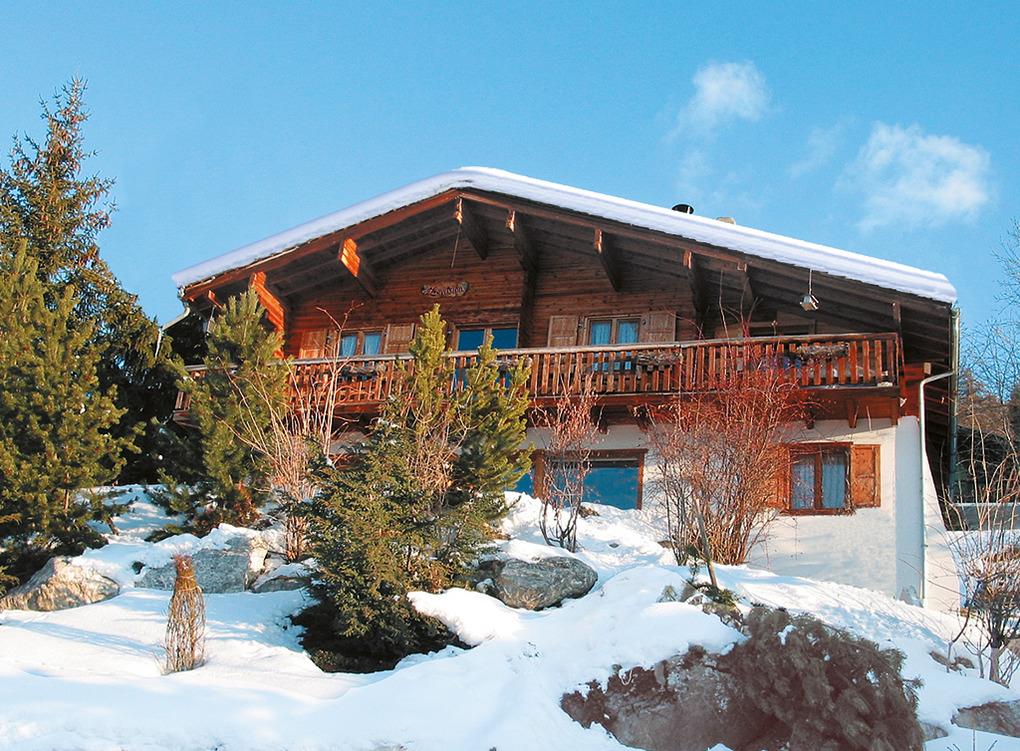 Ort: Nendaz. Chaletsiedlung in exponierter sonniger Südlage. Chalet in ruhiger Hanglage mit Panoramablick ins Rhônetal. Zufahrt bis auf 30 m, danach Fußweg zum Chalet. Skibus 100 m. Gondelstation 2400 m. Ortsmitte 1700 m.