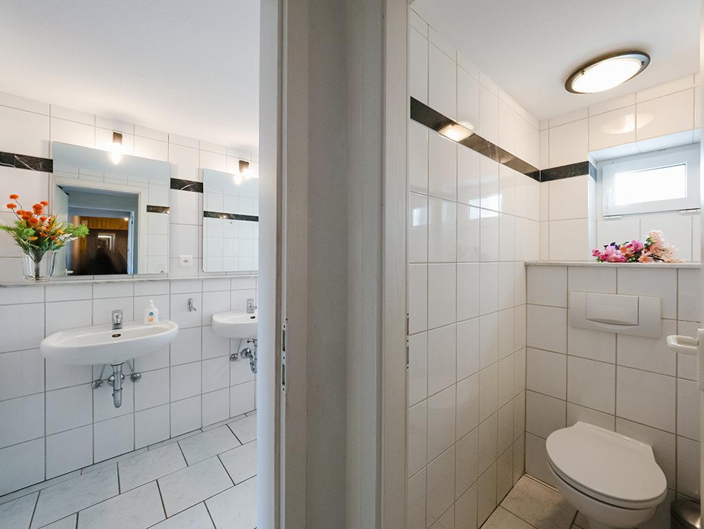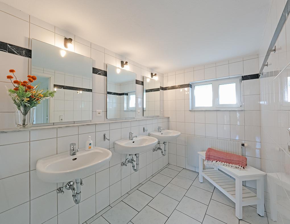 Parterre: 2-Bettzimmer. Doppelzimmer mit franz. Bett. 4-Bettzimmer mit 2 Etagenbetten. Großes, schönes Bad mit Sauna, 2 Duschen, 3 Wb. 2 separate WC.