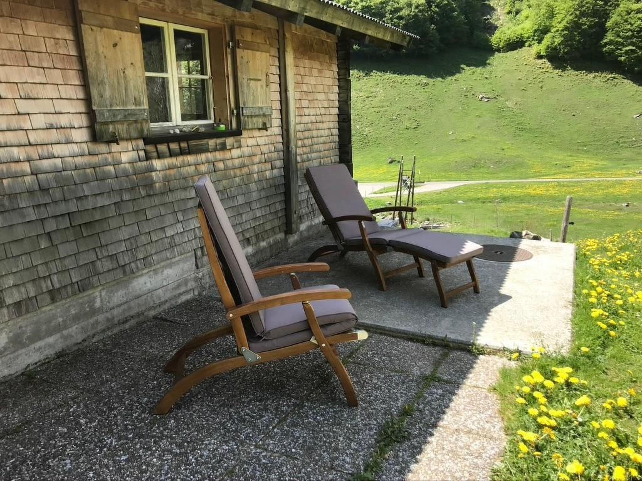 The alpine hut has two comfortable deckchairs (deckchairs with cushions), which can be used both indoors as reading chairs and outdoors as deckchairs.