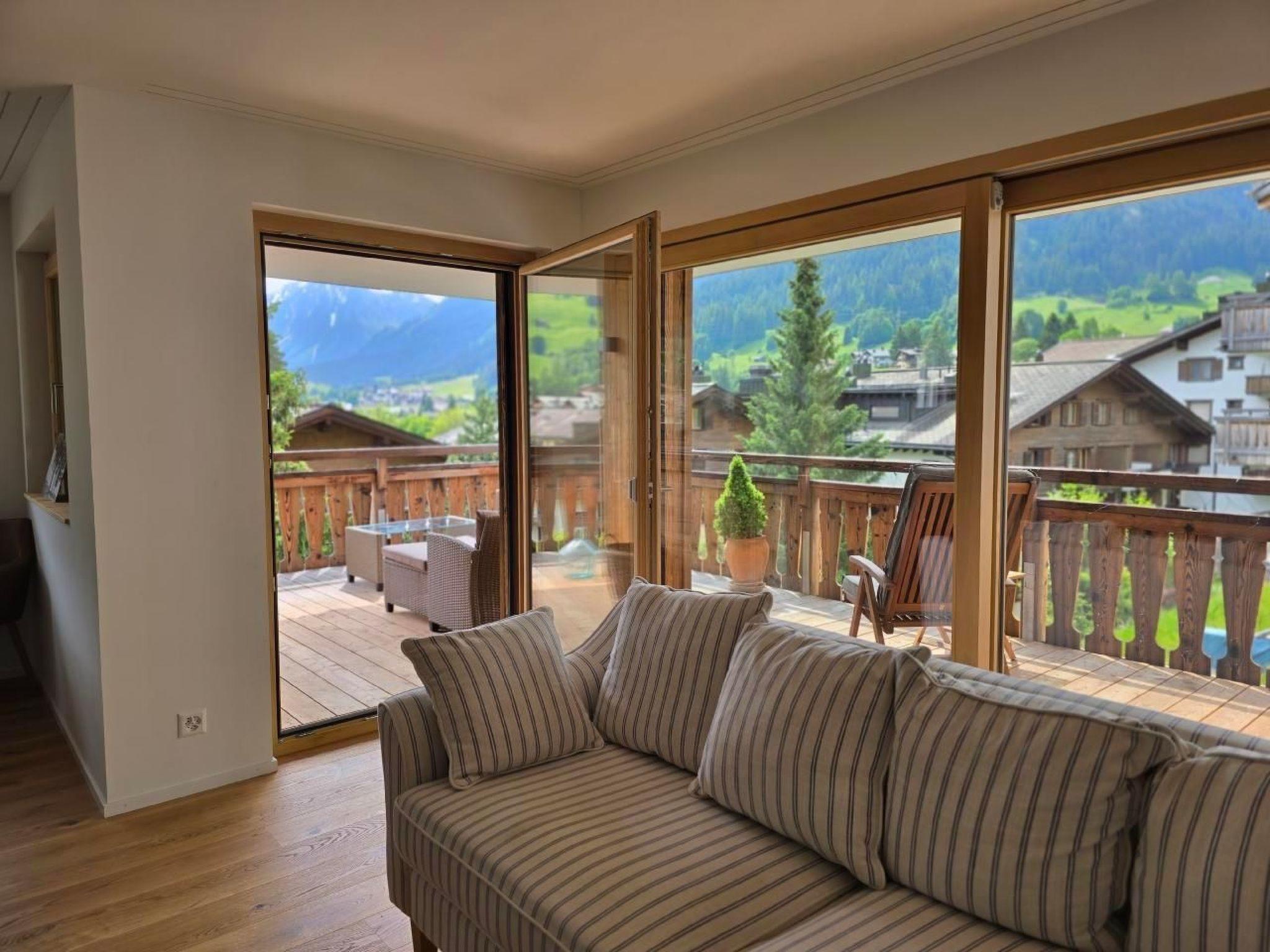 Beautiful and newly released 122 meter apartment has a terrace with great views. In the center of the pretty village of Klosters, with numerous restaurants, bars and shops. The apartment is located 200 meters from the Klosters Platz train station and the famous ski resort of Davos - Klosters. Bright and cozy apartment built in December 2022. Fully equipped kitchen, bed linen and towels included. Access to the apartment is handicapped accessible. Garage space included.