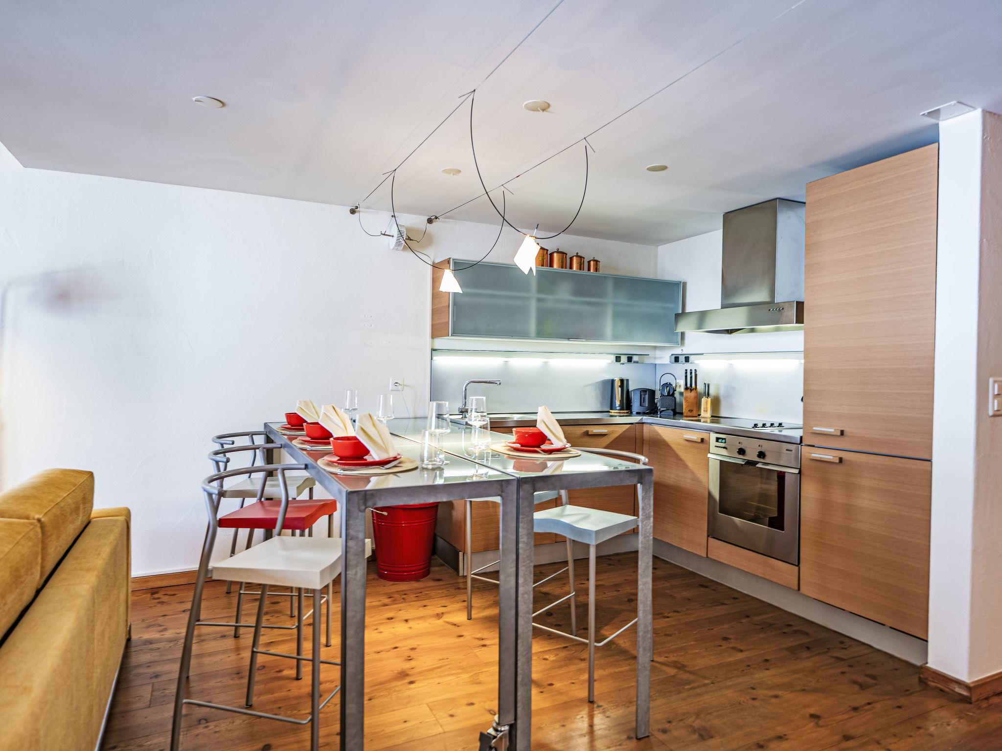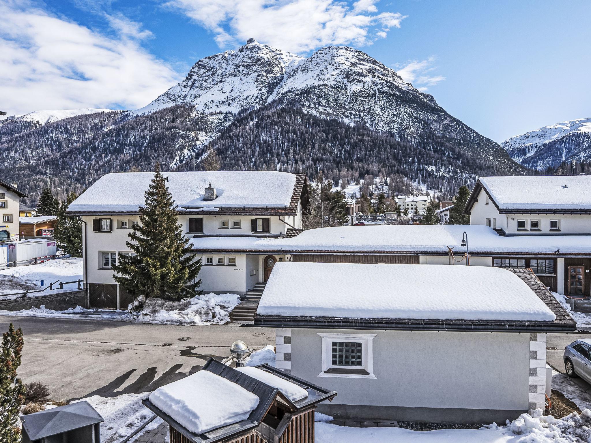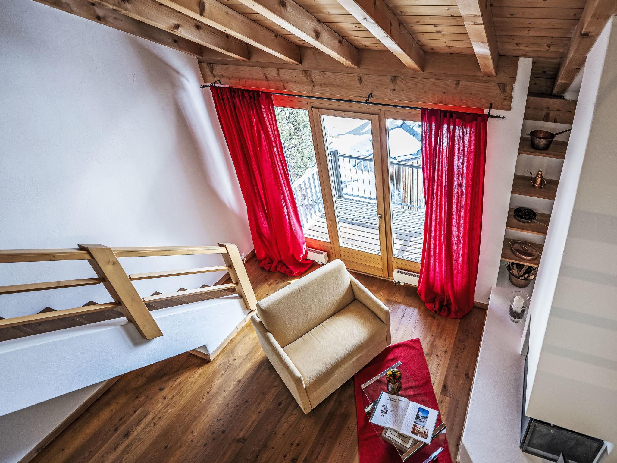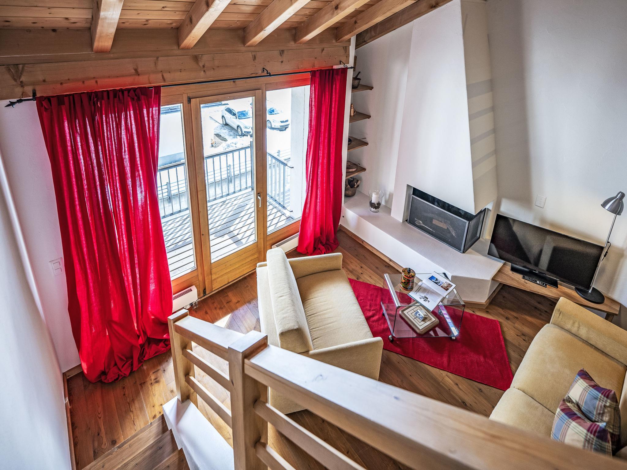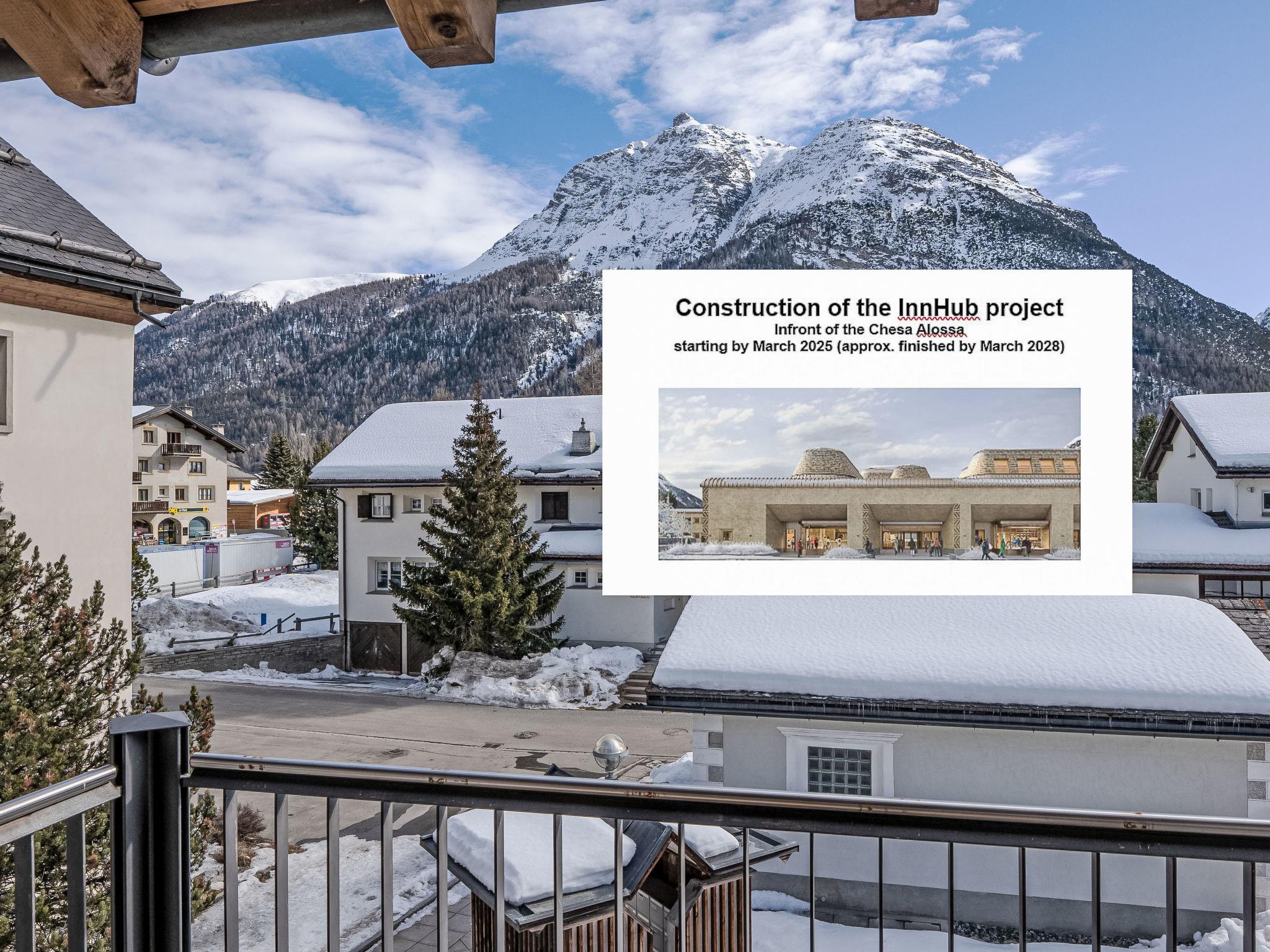 "Chesa Alossa", 3-room maisonette 75 m2 on 1st floor. Simple and cosy furnishings: open living/dining room with open-hearth fireplace, dining table, kitchen corner and TV (flat screen). Exit to the balcony. 1 small room with 1 french bed (1 x 160 cm, length 200 cm). Open large gallery with 1 french bed (1 x 160 cm, length 200 cm), shower/WC. Open kitchen (oven, dishwasher, 4 ceramic glass hob hotplates, toaster, kettle, freezer, electric coffee machine, Capsules for coffee machine (Nespresso) extra). Bath/WC. Heating. Parquet floors. Very beautiful view of the mountains and the countryside. Facilities: iron, hair dryer. Internet (WiFi, free). Garage space n Scavino (1 car) at the house, height 195 cm, width 230 cm. Please note: not suitable for children under 6 years. Non-smokers only, non-smoking house. Maximum 2 pets/ dogs allowed. No lift. :InnHub construction project in front of the house approx. 30 m (March 2025 - approx. March 2028) - during the snow season no construction will be done.