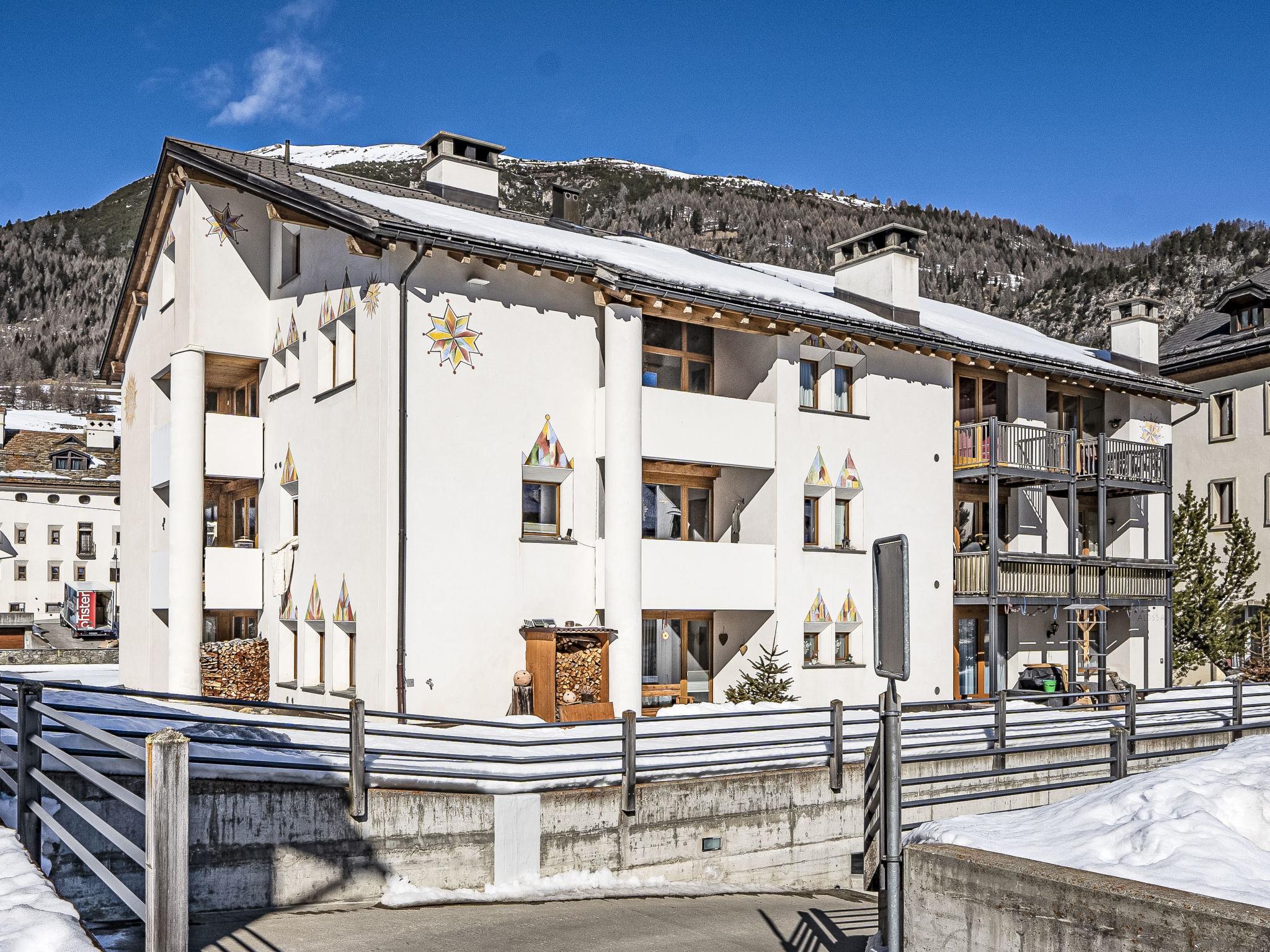 La Punt-Chamues-ch: Beautiful apartment house "Chesa Alossa", 3 storeys. In a sunny position in the residential district, 20 m from the river, in a cul-de-sac, in the countryside. In the house: storage room for bicycles, storage room for skis, washing machine, tumble dryer (for shared use, extra). In Winter: please take snow chains. Communal covered parking at the house. Grocery 80 m, restaurant 30 m, bus stop "La Punt" 80 m, railway station "La Punt" 350 m, indoor swimming pool 14 km. Golf course (18 hole) 5 km, minigolf 15 km, riding stable 1 km, walking paths from the house 200 m, slopes 6 km, ski rental 500 m, ski bus stop 80 m, ski school 6 km, children's ski school 700 m, sled run 6 km, cross country ski track 500 m, ice rink 400 m. Nearby attractions: Segantini-Museum in St. Moritz, Caferama Badilatti Zuoz, Nationalparkzentrum Zernez 25 km. Well-known ski regions can easily be reached: Zuoz 6 km, Corviglia 11 km, Diavolezza - Lagalb 25 km. Well-known lakes can easily be reached: St. Moritz See 14 km, Silvaplaner See 20 km. Hiking paths: Albula Pass, Val Trupchun. Schweizer Nationalpark, Muottas Muragl. Please note: no lift.