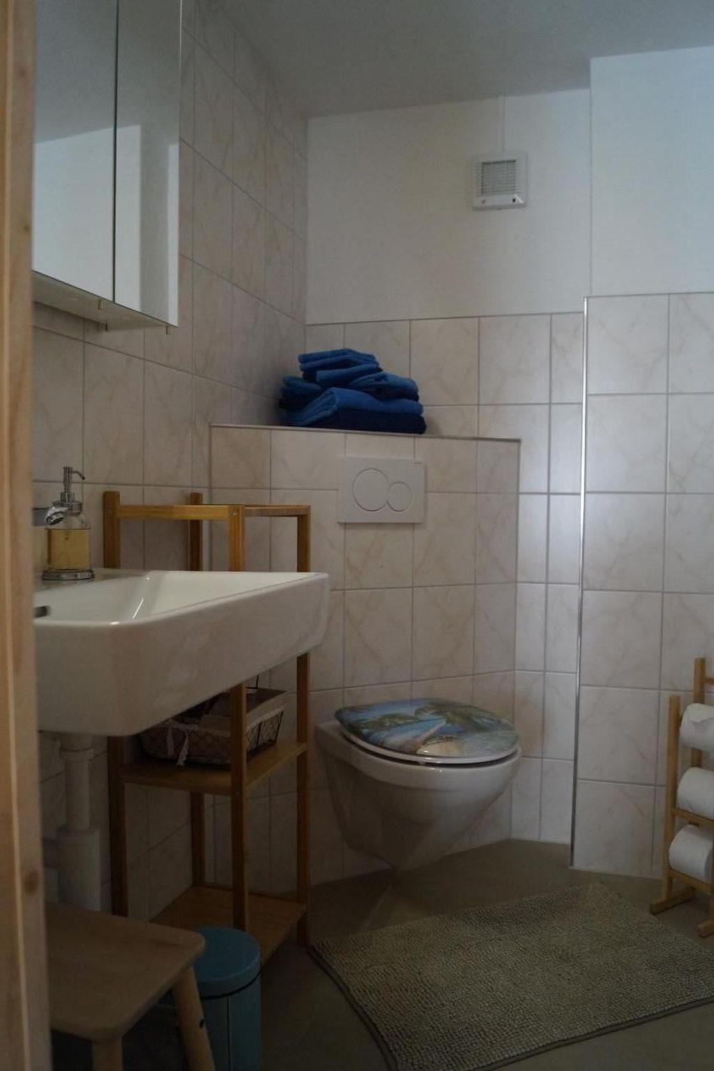 In the light-flooded kitchen of our non-smoking flat you can prepare and enjoy your meals in a pleasant atmosphere. It is fully equipped with a 4-ring electric hob, oven, freezer compartment, fridge and other amenities such as a blender, Nespresso machine (capsules for a fee), toaster and kettle. Kitchen linen is included in the first set, and entertainment is provided by a radio with CD/USB player. In the cosy bedroom, the beds have already been lovingly made for your arrival and a spacious wardrobe with hangers is also available. We ask for your understanding that pets are not permitted.