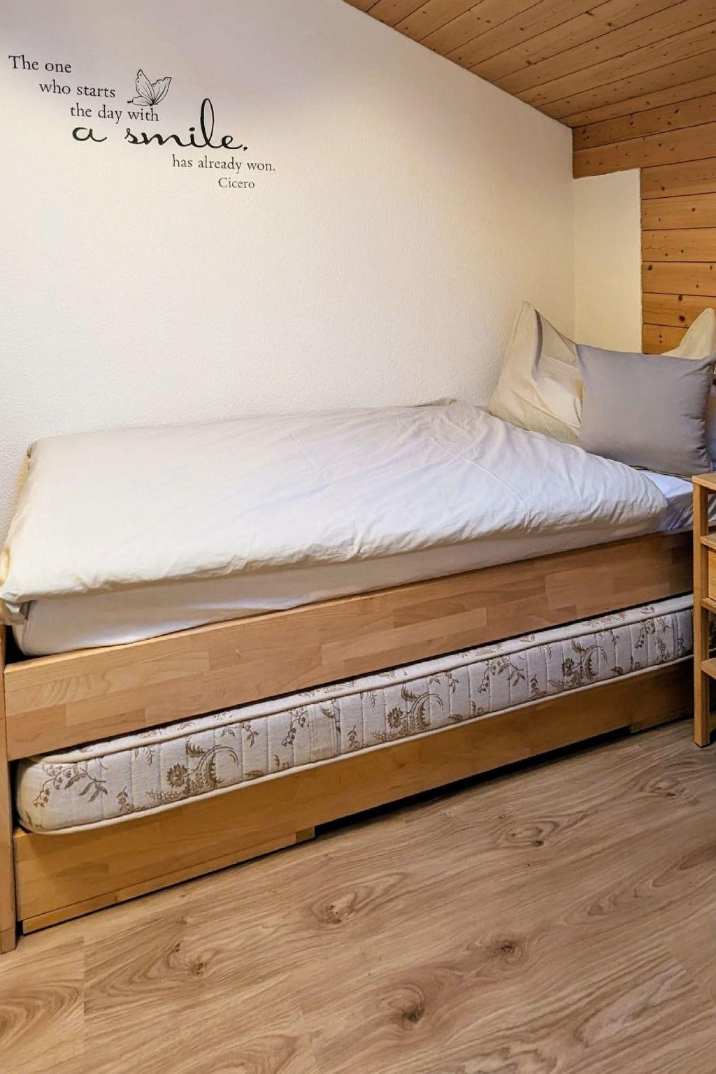 A cozy modern 3-room apartment (2-6 people) with 60m2 on the 2nd floor (east side) of the house. The apartment has a large balcony with a great view of the Lauterbrunnen valley. The apartment includes shower / toilet, kitchen combination, coffee machine, fridge / freezer, dishwasher, satellite TV and radio. The apartment has two bedrooms. One bedroom is furnished with a double bed and the second bedroom with two single beds. In the living and dining room there is a dining table, seating and a pull-out sofa bed. A parking space is available free of charge. Smoking is not allowed in the apartment. Pets are not allowed. The house is in the center of Lauterbrunnen, set back a little from the main street and only one minute from the bus stop and five minutes from the train station. In good snow conditions, it is possible to descend with winter sports equipment right up to the door.