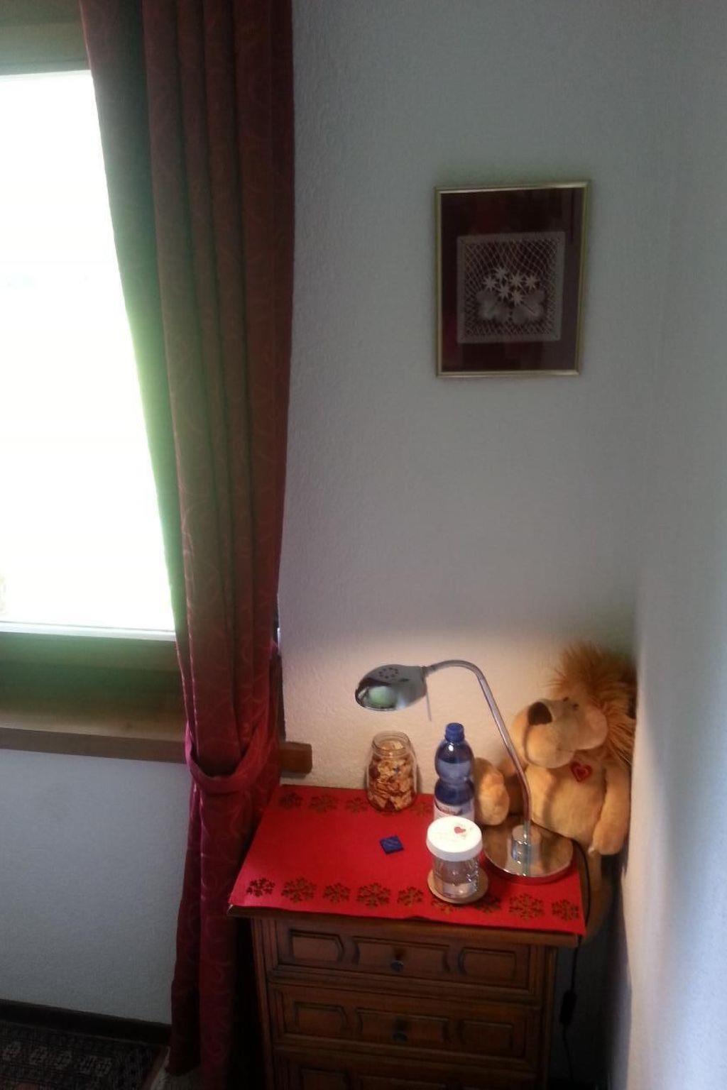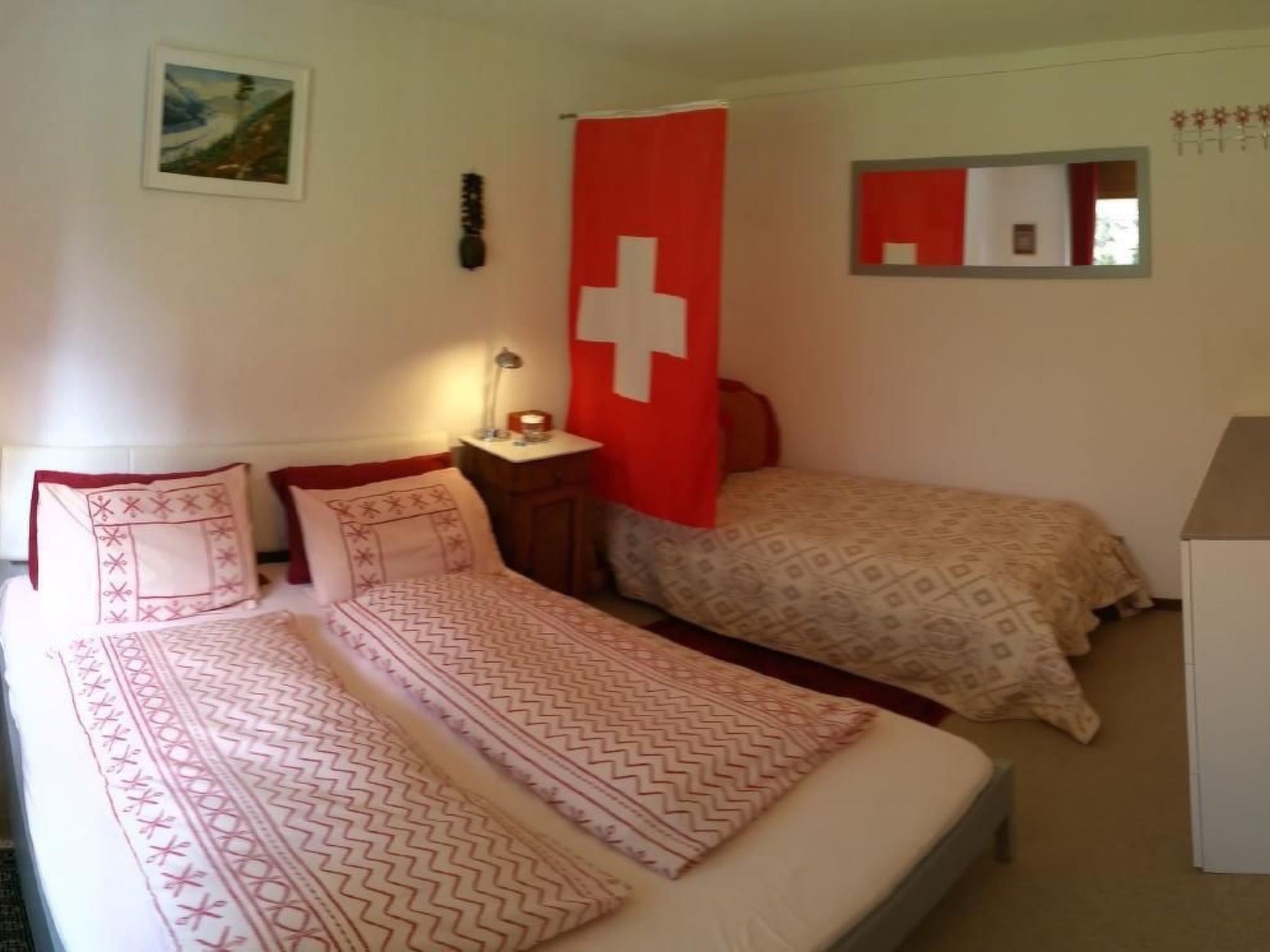 The 50 m² non-smoking flat "Ruhe in EyHus 5" on the first floor is cosily furnished, tiled and has adjustable central and underfloor heating. It offers a bedroom with a large EU king-size double bed, a single bed and an additional single mattress, a travel cot (for hire), ample wardrobe space and a view of the Staubbach Falls. The living room is furnished with two sofas, Wi-Fi internet (20 MB) - please note that there is no TV, but 400 English language films are available. A practical open-plan kitchen area (with dishwasher, 3 hotplates, oven, microwave, rice cooker) leads to the balcony. There is also a shower room/WC with hairdryer, iron and ironing board.