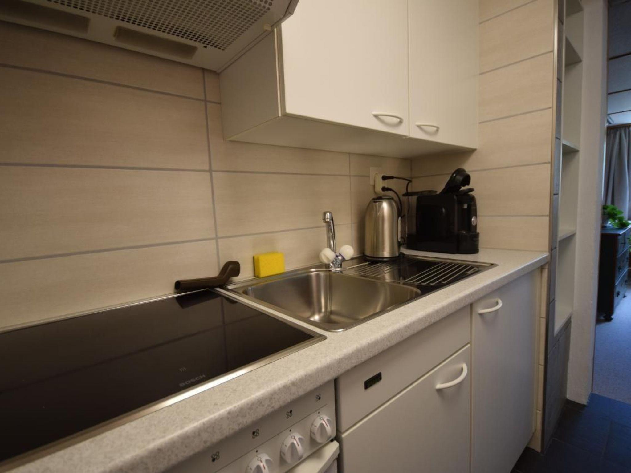 The small, cosy studio has a combined living room and bedroom, equipped with a large box-spring bed, Swisscom TV and free WiFi, a small, well-equipped kitchenette for self-catering and a bathroom with WC and shower. The tasteful and comfortable furnishings invite you to linger and relax.