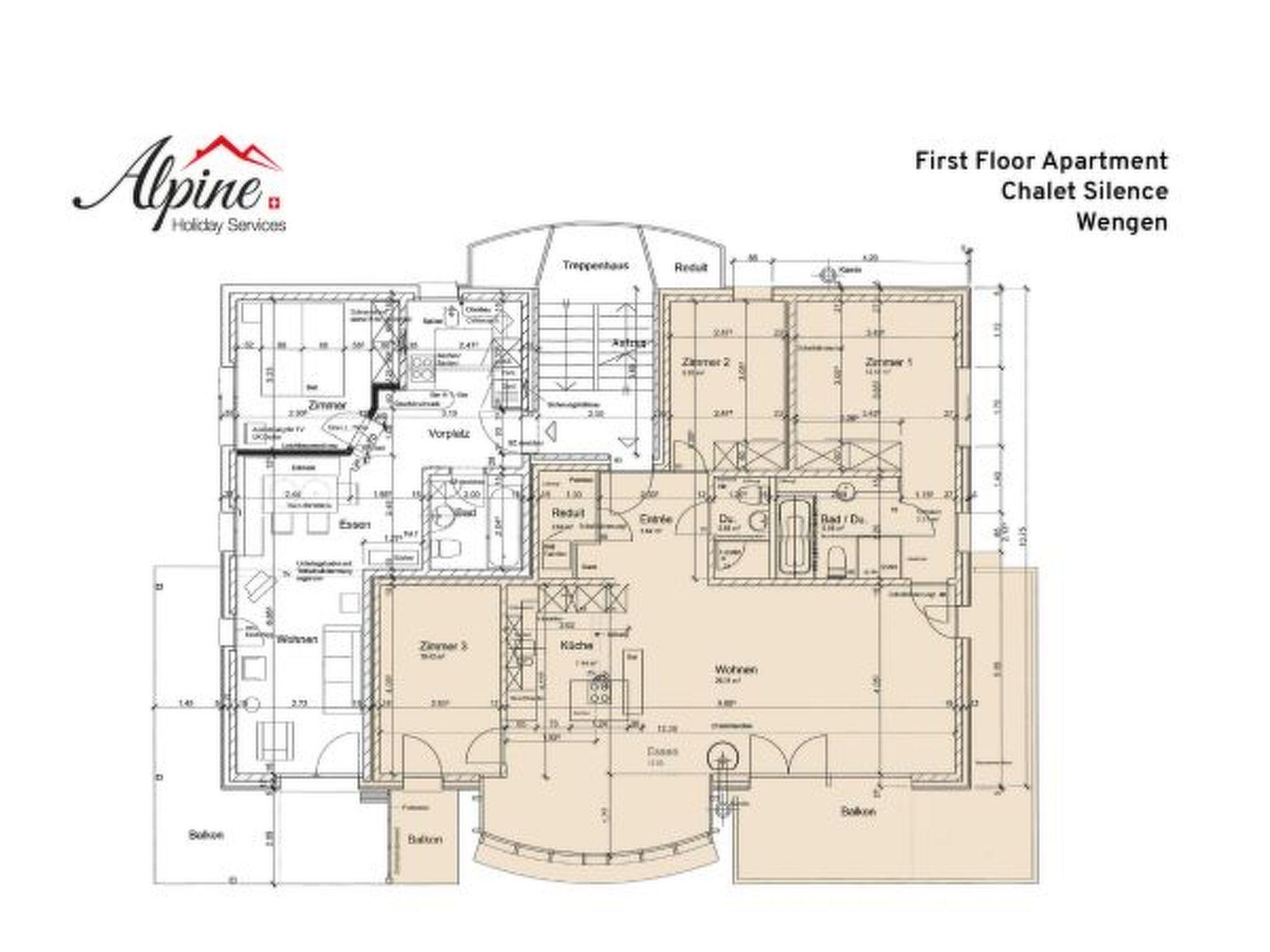 DescriptionThis spacious 105 square metre apartment at Chalet Silence offers fantastic accommodation for up to 6 guests, featuring 3 well-appointed bedrooms with a mix of king-size and individual beds.The apartment boasts a thoughtfully furnished interior with modern amenities to ensure a comfortable stay. The kitchen is fully equipped with high-end appliances including a glass-ceramic hotplate, fridge, freezer, oven, dishwasher, coffee machine, and essential kitchenware. Guests will appreciate the convenience of a washing machine and dryer, as well as a toaster and kettle.Enjoy breathtaking mountain views from the private balconies, perfect for morning coffee or evening relaxation. The living space features central heating to keep you warm during cooler mountain evenings, and complimentary WiFi ensures you stay connected. The apartment includes two bathrooms - one with a shower and another with a bathtub - providing ample convenience for all guests.Located just 450 metres from a Coop Supermarket, 490 metres from the Wengen Train Station, and 530 metres from the ski slopes, this property offers is ideal for mountain enthusiasts and explorers looking to experience the stunning Swiss mountain landscape. Complimentary use of the Central Sport ski, board and boot depot. The depot is located adjacent to the Männlichen cable car within the shop and offers places for more than 1,000 skis, boards and boots. The depot is supervised and is open at the same time as the shop. Every depot space is numbered and a boot drying system is installed. Central Sport Rent-Discount & Shopping Card (10% discount on rentals, 10% discount on purchases for transactions over CHF 200.-) Ski Set Rent-Discount (20% discount on rental equipment) Molitor Sport Rent-Discount (15% discount on rental equipment)Mandatory or included services:Bed linen : IncludedFinal Cleaning : IncludedHeating : IncludedInternet Access : IncludedSecurity Deposit (refundable) : CHF 300.00 /bookingSki Board & Bootdepot Central Sport : IncludedTowels : IncludedWelcome Amenities (Slippers, Hotel Cosmetics, Toilet Paper, Dishwasher Tablets, Bin Bag) : IncludedOptional services:Baby high chair : CHF 15.00 / dayCot/Crib : CHF 10.00 / dayFirewood : CHF 50.00 /bookingJungfrau Travel Pass (Adult) 3 days : CHF 210.00 /personCheck-in schedule:1.1-31.12 from 16:00 to 00:00, Monday, Tuesday, Wednesday, Thursday, Friday, Saturday, SundayCheck-out schedule: 10:00