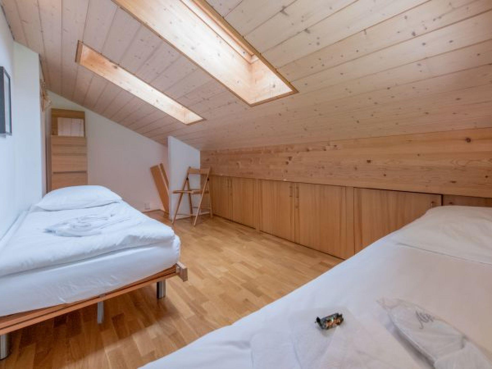 DescriptionRacers Retreat 5 is a contemporary semi-detached chalet on four levels with 2/3 bedrooms, 3 bathrooms, open plan living-dining-kitchen and 2 balconies. The chalet is located in Innerwengen near the finishing line of the Lauberhorn World Cup Ski Races and a 1.3 kilometer walk from the Wengen train station. Wengen is a car limited village and is accessible by train from Lauterbrunnen.The open plan living-dining-kitchen on the entrance level is charming with its exposed beams and Swedish wood burner. A double set of glass doors open out on to the spacious balcony which offers ample space to enjoy the outdoors and the beautiful mountain views.The kitchen is fully equipped for preparing meals back at the chalet. It includes an oven, microwave, fridge, dishwasher, ceramic hob, Nespresso coffee machine, kettle, toaster and fondue set.The first floor has two bedrooms. The master with double bed (180x200cm), impressive double height ceiling and ensuite bathroom with bathtub and the second with two single beds (each 90x200cm) and ensuite shower room. On the fourth level of the chalet is a gallery with 2 further single beds (each 90x200cm) which is accessed via a wooden ladder.On the lower level of the chalet is an additional shower room with toilet, laundry facilities as well as a sauna. Complimentary use of the Central Sport ski, board and boot depot. The depot is located adjacent to the Männlichen cable car within the shop and offers places for more than 1,000 skis, boards and boots. The depot is supervised and is open at the same time as the shop.Every depot space is numbered and a boot drying system is installed. Central Sport Rent-Discount & Shopping Card (10% discount on Winter and Summer purchases and rentals for transactions over CHF 200.-) Ski Set Rent-Discount (20% discount on rental equipment) Molitor Sport Rent-Discount (15% discount on rental equipment)Mandatory or included services:Bed linen : IncludedFinal Cleaning : IncludedHeating : IncludedInternet Access : IncludedSecurity Deposit (refundable) : CHF 300.00 /bookingSki Board & Bootdepot Central Sport : IncludedTowels : IncludedWelcome Amenities (Slippers, Hotel Cosmetics, Toilet Paper, Dishwasher Tablets, Bin Bag) : IncludedOptional services:Baby high chair : CHF 15.00 / dayCot/Crib : CHF 10.00 / dayFirewood : CHF 50.00 /bookingJungfrau Travel Pass (Adult) 3 days : CHF 210.00 /personCheck-in schedule:1.1-31.12 from 16:00 to 00:00, Monday, Tuesday, Wednesday, Thursday, Friday, Saturday, SundayCheck-out schedule: 10:00