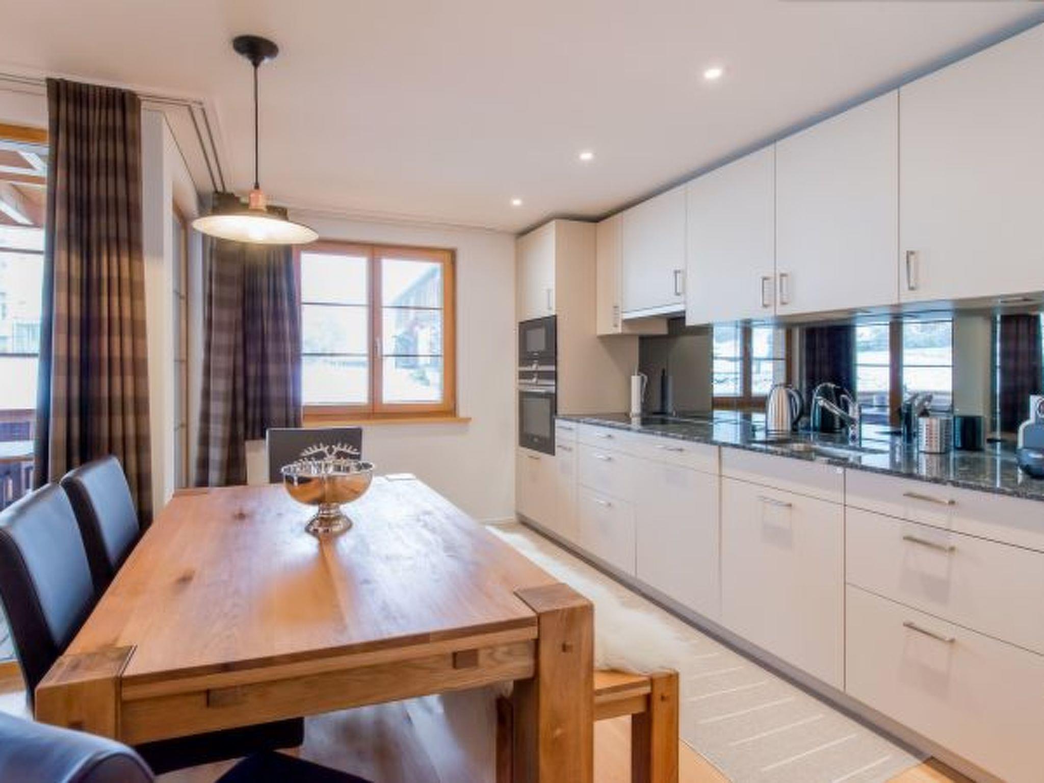 DescriptionEnjoy your Swiss holiday in Wengen in this warm and welcoming 2-bedroom, 2-bathroom apartment "Akroyd" in Chalet Camelia of Panoramapark Soleil. Swiss contemporary style combined with the best of Swiss Chalet Tradition make this apartment an appealing space for your next getaway in the Jungfrau Region.Set in the quaint, traditional and car limited village of Wengen (accessible by train from Lauterbrunnen) just 420 meters from the train station and amenities, this chalet is within a complex of 6 wood-crafted Chalets. Enter through an elegant marble hallway into the apartment; an entrance area with conveniently situated hanging space and shoe racks awaits you.The cosy and stylish open plan living, dining and kitchen feature floor to ceiling windows and doors which open out onto the extensive balcony with dining for 6 and mountain views.The master bedroom with contemporary ensuite shower room features a queen size double (160x200cm) with a Chalet-style wooden bed frame, whilst the second bedroom offers 2 singles (90x200cm) which can be combined to be used as a double. A further family size bathroom is located off the entrance hall.The washing machine and dryer are situated in the private cellar unit which also provides useful storage space.A private elevator helpfully shortens the uphill walk from Panoramapark Soleil chalets to the village to just over 400 meters. In addition, the chalet itself offers an elevator to all floors.Features: Complimentary use of the Central Sport ski, board and boot depot. The depot is located adjacent to the Männlichen cable car within the shop and offers places for more than 1,000 skis, boards and boots. The depot is supervised and is open at the same time as the shop.Every depot space is numbered and a boot drying system is installed. swiss contemporary style combined with the best of Swiss Chalet Tradition cosy and stylish open plan living, dining and kitchen with floor to ceiling windows and doors extensive balcony with dining for 6 and mountain views master bedroom with contemporary ensuite shower room features a queen size double (160x200cm) with a Chalet-style wooden bed frame second bedroom offers 2 singles (90x200cm) which can be combined to be used as a double family size bathroom features bathtub, sink, toilet and heated towel rail situated in a landscape of 6 wood-crafted Chalets washing machine and dryer are situated in the private cellar unit private elevator helpfully shortens the uphill walk from Panoramapark Soleil chalets to the village to just over 400 meters. In addition, the chalet itself offers an elevator to all floorsMandatory or included services:Bed linen : IncludedFinal Cleaning : IncludedHeating : IncludedInternet Access : IncludedSecurity Deposit (refundable) : CHF 300.00 /bookingSki Board & Bootdepot Central Sport : IncludedTowels : IncludedWelcome Amenities (Slippers, Hotel Cosmetics, Toilet Paper, Dishwasher Tablets, Bin Bag) : IncludedOptional services:Baby high chair : CHF 15.00 / dayCot/Crib : CHF 10.00 / dayFirewood : CHF 50.00 /bookingJungfrau Travel Pass (Adult) 3 days : CHF 210.00 /personCheck-in schedule:1.1-31.12 from 16:00 to 00:00, Monday, Tuesday, Wednesday, Thursday, Friday, Saturday, SundayCheck-out schedule: 10:00