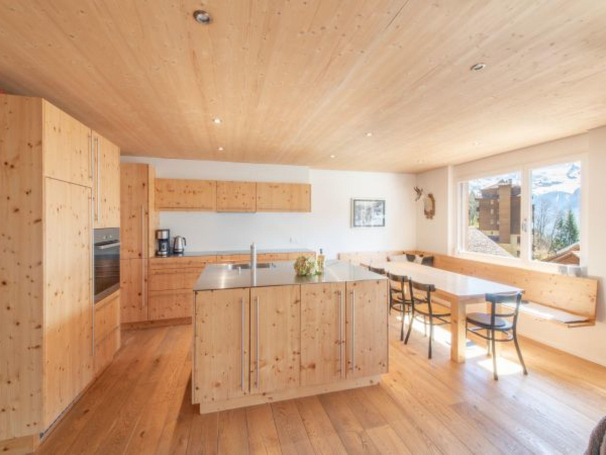 DescriptionTreat yourself to an Alpine holiday in this luxury and chic 3-bedroom, 2-bathroom holiday apartment on the second floor of Chalet am Acher.This chalet in Wengen is situated in a very sought after location just moments from the village mainstreet and Wengen train station. Just a nearly flat 210 meter walk to the back entrance with access via a staircase or a 200 meter walk to the front entrance with access via lift. Wengen is a car limited village accessible by train from Lauterbrunnen.Relax and enjoy mountain views from the stylish and chic open plan living-dining-kitchen. Features include floor to ceiling sliding doors opening out on to the balcony, a stunning fireplace and sleek new kitchen.The contemporary master bedroom with double bed features a sensual and unique ensuite shower room, whilst the second bedroom with double bed and third bedroom with bunks beds share a family bathroom with bathtub.The apartment also has a cellar unit with private washing machine and dryer as well as access to the chalets shared ski & boot room with heated boot racks on the ground floor.Features: Complimentary use of the Central Sport ski, board and boot depot. The depot is located adjacent to the Männlichen cable car within the shop and offers places for more than 1,000 skis, boards and boots. The depot is supervised and is open at the same time as the shop. Every depot space is numbered and a boot drying system is installed. Central Sport Rent-Discount & Shopping Card (10% discount on rentals, 10% discount on purchases for transactions over CHF 200.-) Ski Set Rent-Discount (20% discount on rental equipment) Molitor Sport Rent-Discount (15% discount on rental equipment) Contemporary kitchen area featuring quality appliances including dishwasher, large fridge, hob, oven, extractor fan, toaster, kettle, Nespresso Coffee machine. Furthermore the kitchen is well equipped with cookware, crockery, cutlery and wine and champagne glasses. Living area with fireplace. Dining space for 6-8 people. Master bedroom featuring 180 x 200cm high quality bed and ensuite bathroom with shower cubicle, toilet and sink. Second bedroom features 180x200cm high quality bed. Third bedroom features bunk bed (2x 90x200cm). Family bathroom featuring bathtub with over-bath shower, sink, toilet and heated towel rail. Separate toilet. Washing machine and dryer in private cellar room. Southwest balcony features stunning mountain views. Communal ski and boot room on ground floor.Mandatory or included services:Bed linen : IncludedFinal Cleaning : IncludedHeating : IncludedInternet Access : IncludedSecurity Deposit (refundable) : CHF 300.00 /bookingSki Board & Bootdepot Central Sport : IncludedTowels : IncludedWelcome Amenities (Slippers, Hotel Cosmetics, Toilet Paper, Dishwasher Tablets, Bin Bag) : IncludedOptional services:Baby high chair : CHF 15.00 / dayCot/Crib : CHF 10.00 / dayFirewood : CHF 50.00 /bookingJungfrau Travel Pass (Adult) 3 days : CHF 210.00 /personCheck-in schedule:1.1-31.12 from 16:00 to 00:00, Monday, Tuesday, Wednesday, Thursday, Friday, Saturday, SundayCheck-out schedule: 10:00