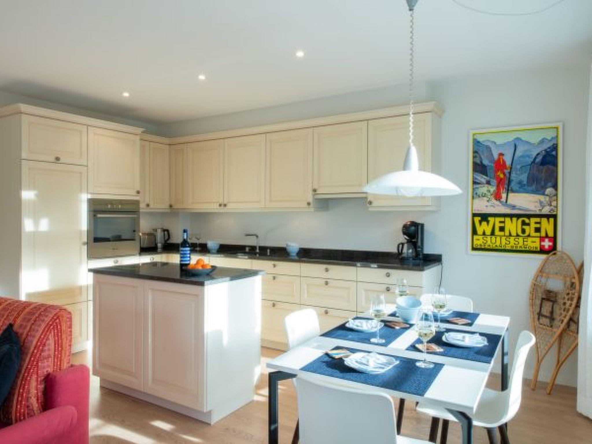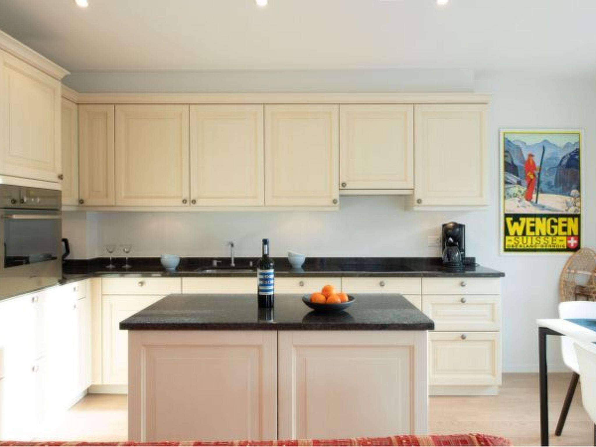DescriptionNestled in the serene Swiss Alps, this beautifully furnished 95 square metre apartment at Chalet Mittaghorn offers a perfect mountain escape for up to 4 guests. The modern, tastefully designed space provides a tranquil sanctuary with breathtaking mountain views that will captivate your senses from the moment you arrive.Step onto the inviting balcony and immerse yourself in the stunning alpine landscape. The apartment features two comfortable bedrooms - one with a king-size bed (180x200cm) and two individual beds (each 90x200cm) - ensuring a restful night's sleep after a day of mountain adventures. Two well-appointed bathrooms, one with a shower and another with a bathtub, provide ample comfort and convenience.The heart of the home is the open plan living-dining-kitchen, fully equipped with modern amenities including a glass-ceramic hotplate, fridge, washing machine, dishwasher, oven, coffee machine, and a complete set of kitchenware. Enjoy preparing meals while overlooking the magnificent mountain scenery, or warm up by the cozy fireplace on cooler evenings.Conveniently located just 480 metres from the Wengen Train Station and 460 metres from a Coop Supermarket, this apartment offers easy access to local amenities. With central heating, complimentary WiFi, and satellite TV in multiple languages, you'll feel right at home in this peaceful mountain retreat. Complimentary use of the Central Sport ski, board and boot depot. The depot is located adjacent to the Männlichen cable car within the shop and offers places for more than 1,000 skis, boards and boots. The depot is supervised and is open at the same time as the shop. Every depot space is numbered and a boot drying system is installed. Central Sport Rent-Discount & Shopping Card (10% discount on rentals, 10% discount on purchases for transactions over CHF 200.-) Ski Set Rent-Discount (20% discount on rental equipment) Molitor Sport Rent-Discount (15% discount on rental equipment)Mandatory or included services:Bed linen : IncludedFinal Cleaning : IncludedHeating : IncludedInternet Access : IncludedSecurity Deposit (refundable) : CHF 300.00 /bookingSki Board & Bootdepot Central Sport : IncludedTowels : IncludedWelcome Amenities (Slippers, Hotel Cosmetics, Toilet Paper, Dishwasher Tablets, Bin Bag) : IncludedOptional services:Baby high chair : CHF 15.00 / dayCot/Crib : CHF 10.00 / dayFirewood : CHF 50.00 /bookingJungfrau Travel Pass (Adult) 3 days : CHF 210.00 /personCheck-in schedule:1.1-31.12 from 16:00 to 00:00, Monday, Tuesday, Wednesday, Thursday, Friday, Saturday, SundayCheck-out schedule: 10:00