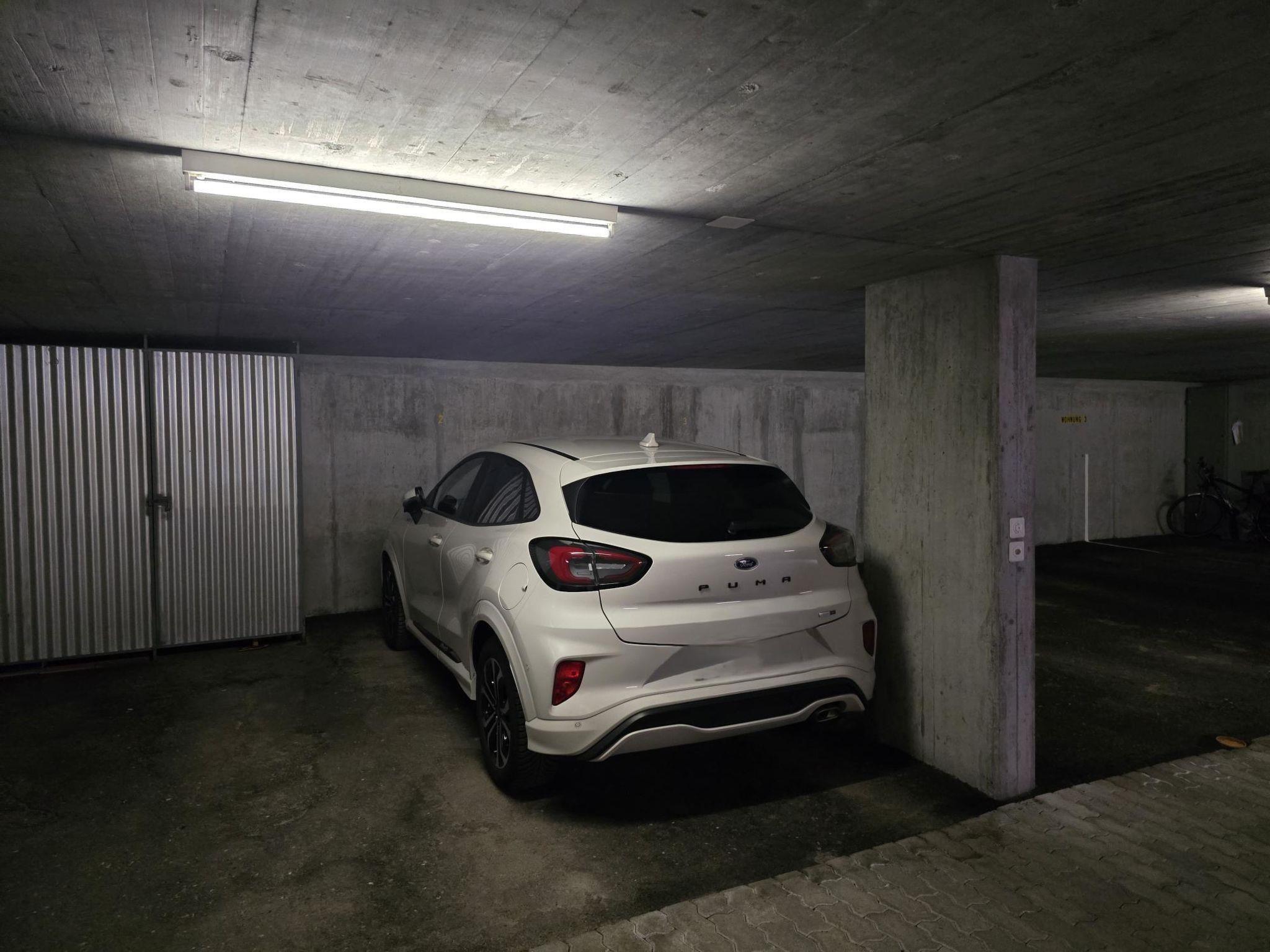 The cozy 2-room ground-floor holiday apartment is approximately 40 m² and features an entrance area with a wardrobe, a living and dining room with a dining table and four chairs, a sofa bed (135 x 200 cm), a comfortable armchair, a TV and direct access to the southwest-facing terrace. The open kitchen is equipped with a 3-burner electric stove, oven, dishwasher, refrigerator, extractor hood and plenty of built-in cupboards. The bedroom offers a French double bed (160 x 200 cm) and the bathroom is fitted with a toilet and washbasin. Shared facilities include a ski room, a ski cellar and a washing machine, which guests must register to use in a list located in the laundry room. A parking space in the underground garage is also included. Wi-Fi is available. Pets are not allowed and this is a non-smoking apartment.