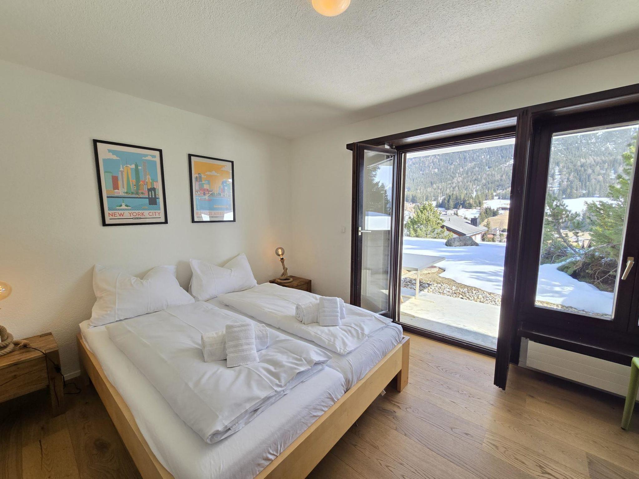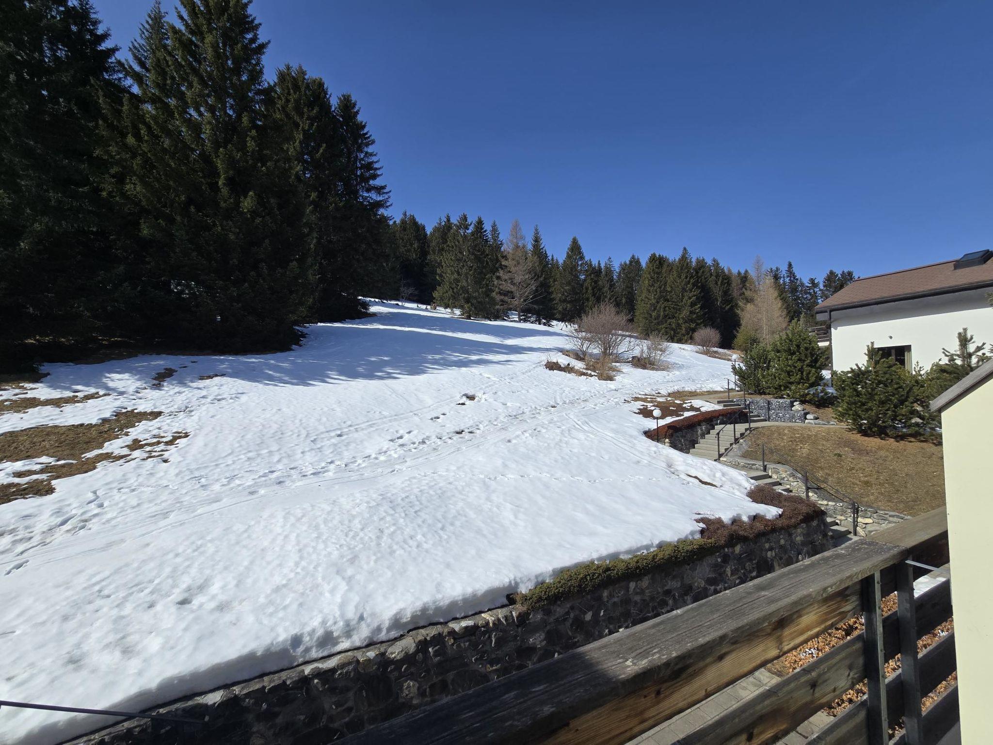 120 m2. More information by the provider: Casa La Schmetta 54 is located in a quiet and sunny setting on the southern edge of the village, nestled within a picturesque woodland area, offering unobstructed views of the Alps and just a few minutes’ walk from the village center. The location ensures maximum privacy and guarantees relaxation in the midst of nature. The Crestas ski lift is situated right next to the complex and you can ski all the way back to the front door – no car required. The property is also an ideal starting point for skiing, hiking and cycling/mountain biking. Cross-country ski trails, hiking paths and a golf course are all nearby. Casa La Schmetta 54 is a comfortable, family-friendly home (semi-detached) spread over three floors, featuring a sun terrace, a covered garden seating area and a west-facing balcony. A children’s playground is located within the complex. Pets are welcome.