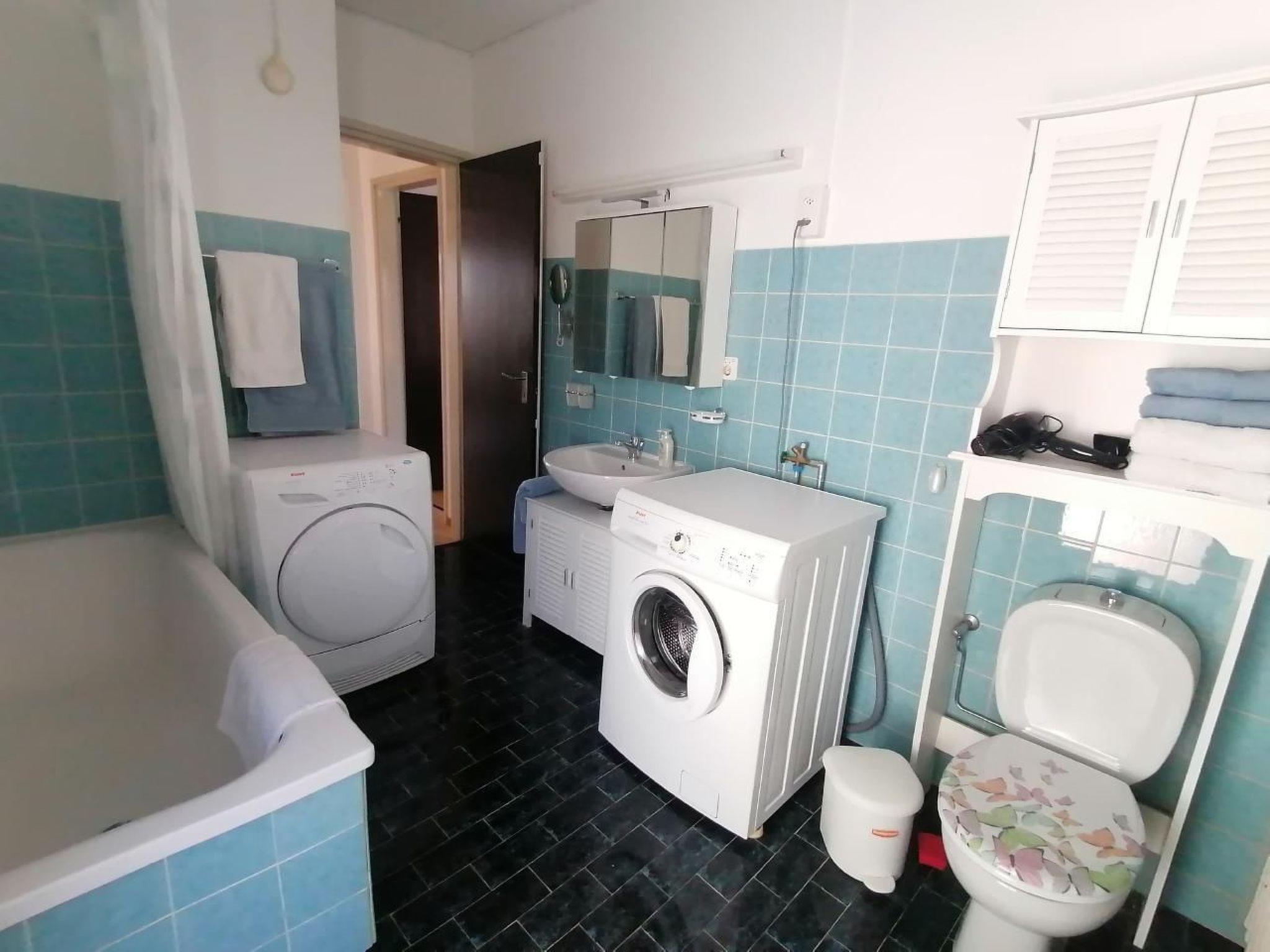 Holiday flat in a central location just a few minutes' walk from the Piazza Grande and the historic centre of Locarno. Ideal for families or small groups of 4 adults. Well accessible by public transport and by car. Grocery shops, public transport stops and post office in the immediate vicinity. The flat has 2 spacious and furnished bedrooms, a large dining room with living room and TV (Swisscom TV), a fully equipped modern kitchen with dishwasher, microwave, classic oven and glass ceramic hob, and a large bathroom with washing machine and tumble dryer. In addition, the apartment has access from all rooms to one of the balconies and terraces. On the ground floor of the building there is a sports bar with a hot kitchen. In front of the building there is a brand new playground. Around the building there are plenty of public 'blue zone' parking spaces.