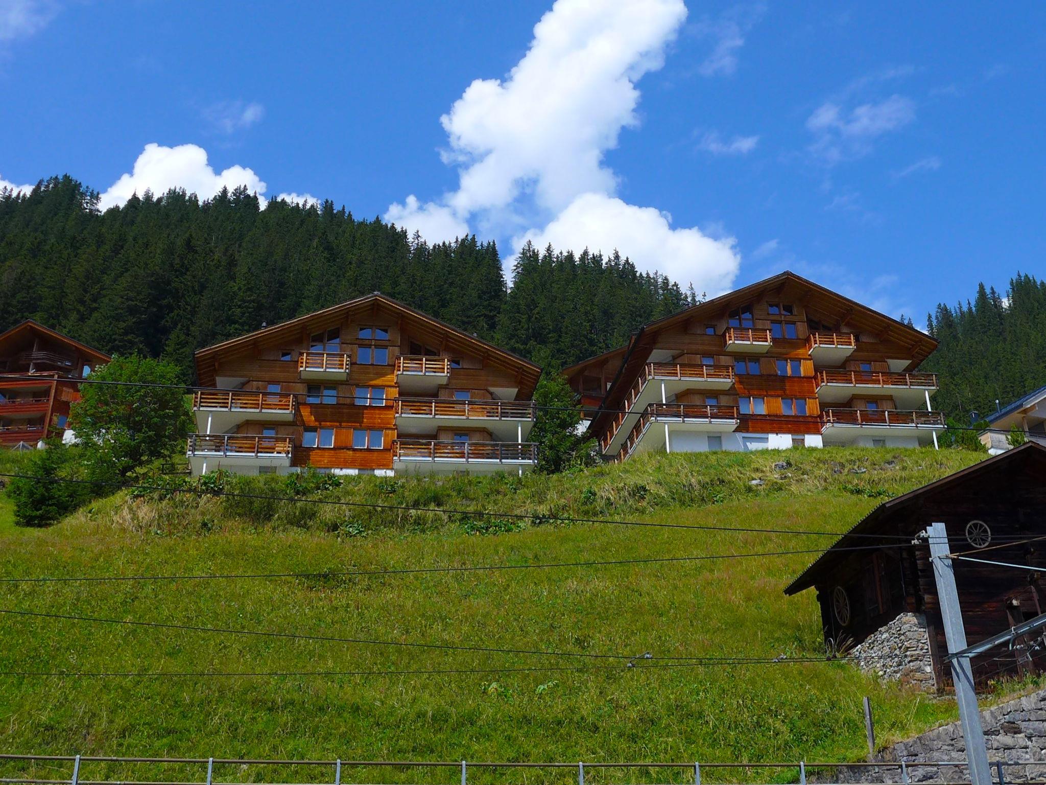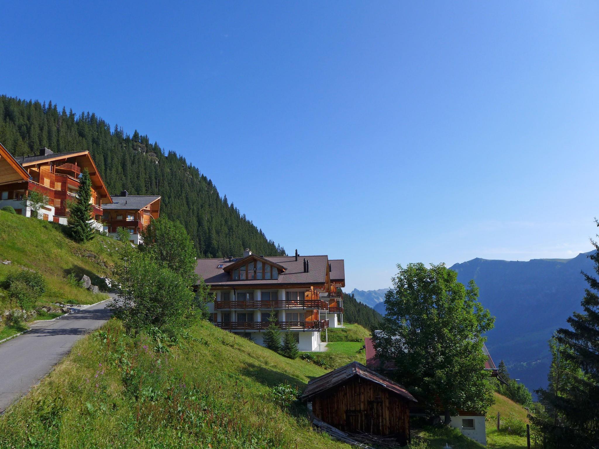 Modern, comfortable apartment block "Nollen". In a quiet, sunny position on a slope. In the house: storage room for skis, ski boot dryer. Grocery 600 m, restaurant 300 m, bus stop "Lauterbrunnen, Bahnhof" 10 km, railway station "Mürren BLM" 200 m, indoor swimming pool 300 m. Sports centre 200 m, walking paths from the house 50 m, cable car 1 km, skisport facilities, ski school 200 m. Nearby attractions: Trümmelbachfälle. Well-known ski regions can easily be reached: Mürren - Schilthorn, Wengen - Kleine Scheidegg. Well-known lakes can easily be reached: Thuner- / Brienzersee. Please note: car-free holiday complex. In case of good snow conditions, the house is accessible on skis. Arrival via mountain railway.