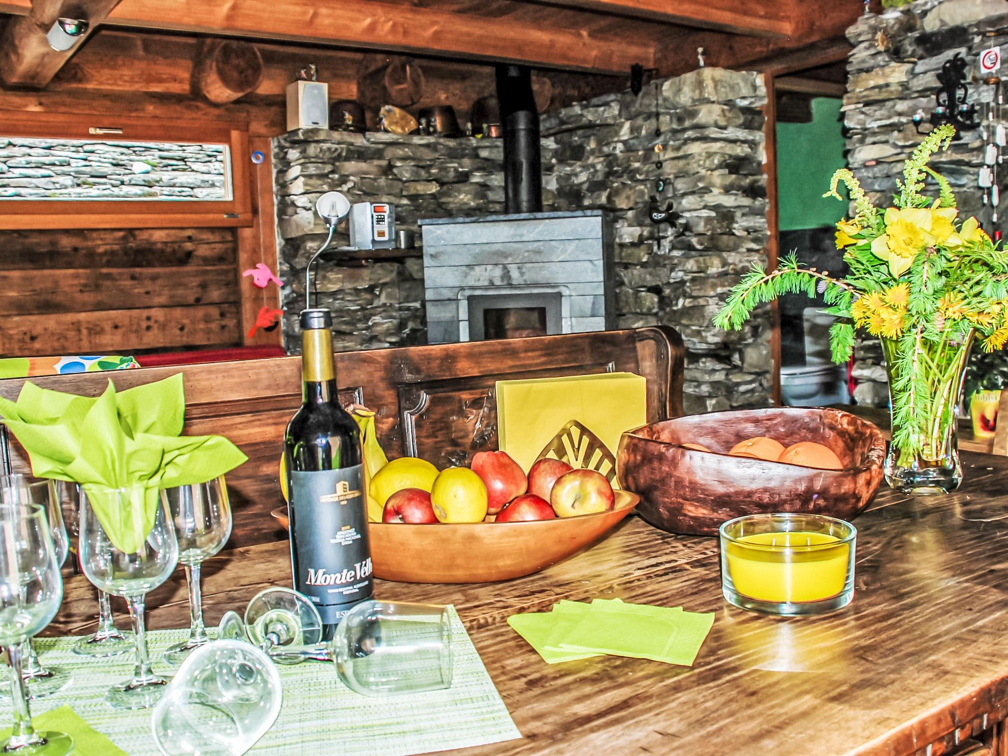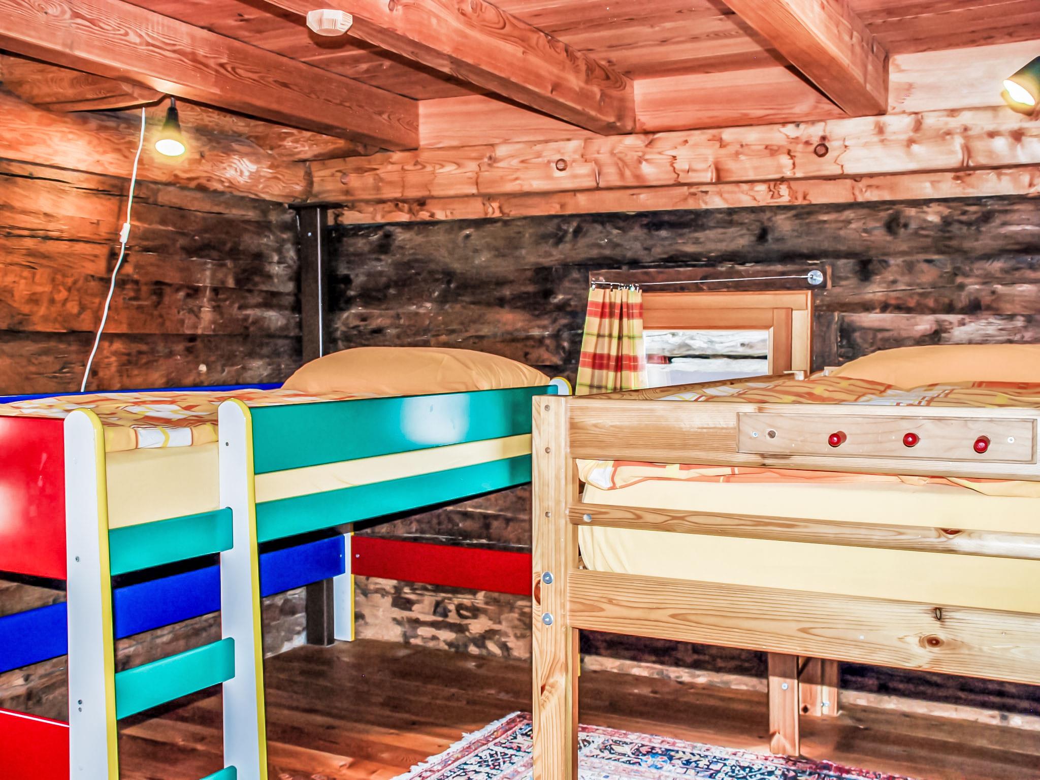 "Rustico Cà dru Lurenz", 5-room cottage 110 m2 on 2 levels. Partly with sloping ceilings, rustic and cosy furnishings: open living/dining room with Scandinavian wood stove, radio and hi-fi system. Exit to the garden. 1 double bedroom with 1 double bed (2 x 90 cm, length 200 cm). 1 room with 2 x 1 bunk beds (90 cm, length 200 cm). Open kitchen (oven, Gas stove, 4 gas rings, fondue Set (chinoise, cheese)) with wood-burning stove. Exit to the patio. Shower/WC. Wood heating. Solar power. Upper floor: open gallery with 1 sofabed and satellite TV (flat screen). 1 double bedroom with sloping ceilings with 1 double bed (2 x 90 cm, length 200 cm). Patio, small garden. Terrace furniture, barbecue (portable), deck chairs (4). Panoramic view of the mountains, the valley and the countryside. Facilities: children's high chair, baby cot for up to 2 year olds (extra). Please note: non-smoking house. Maximum 2 pets/ dogs allowed. Fire extinguisher. Important to know: 1 extra bed can be booked. NL-00005424