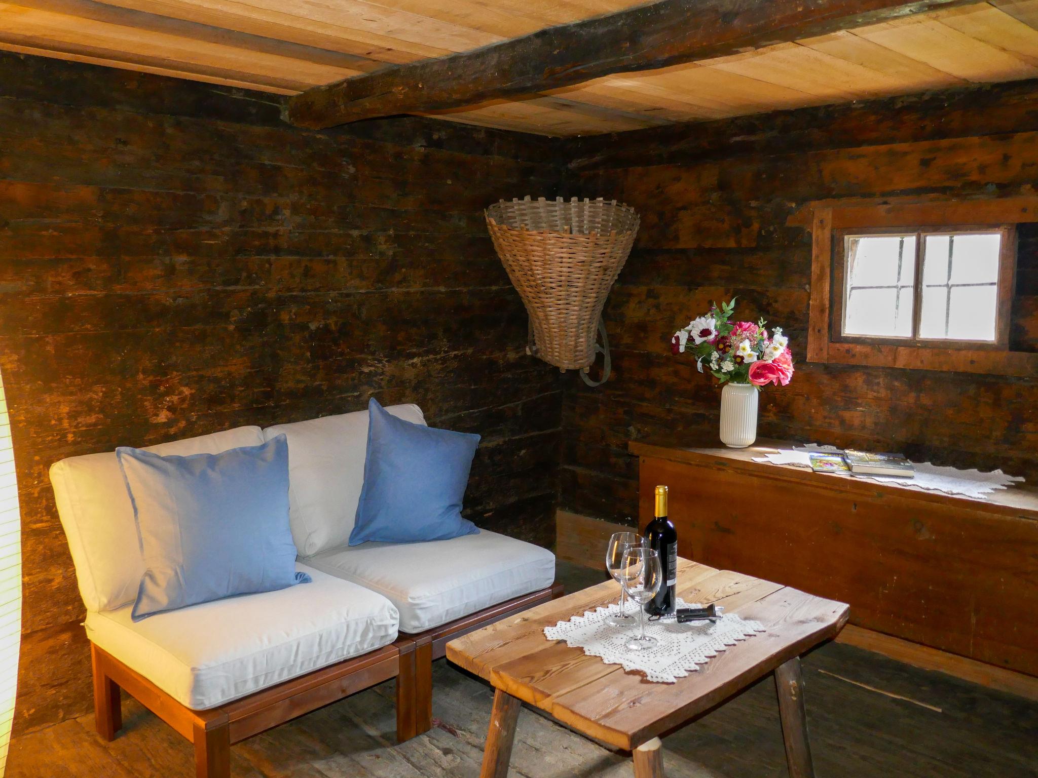 "Rustico La Dimora", 2-room house 30 m2 on 2 levels, south-east facing position. Object suitable for 2 adults + 2 children. Partly with sloping ceilings, fully renovated in 2022, practical and wooden furniture furnishings: open kitchen (Gas stove, 4 gas rings) with dining table, radio and wood-burning stove. Shower/WC. Wood heating. Solar power. Upper floor: open gallery with 1 double bed (2 x 80 cm, length 200 cm), 1 pull-out bed (2 pers. 2 x 80 cm, length 200 cm). Wooden floors. Terrace furniture, deck chairs (2). Beautiful view of the mountains and the resort. Facilities: children's high chair, baby cot for up to 2 year olds (extra). Please note: non-smokers only. >>Additional information: The Rustico Dimora has a historic outbuilding that is also available for use. It is decorated with furniture and tools from previous generations and thus provides an insight into the life of the inhabitants of Dandrio in past centuries. Instead of an enclosed bedroom, some sleeping areas are located in an open-plan area (gallery, alcove, etc.). NL-00003749