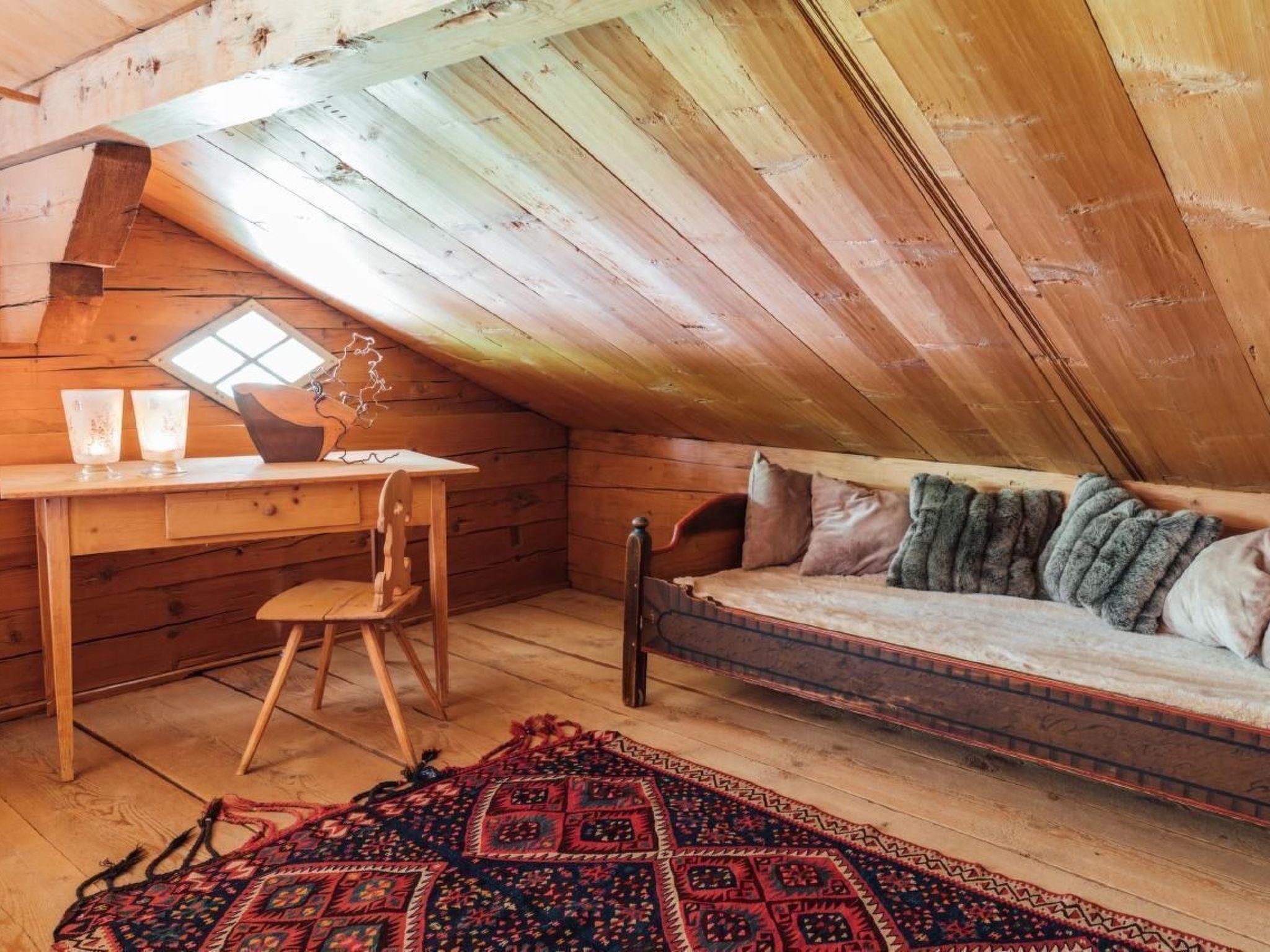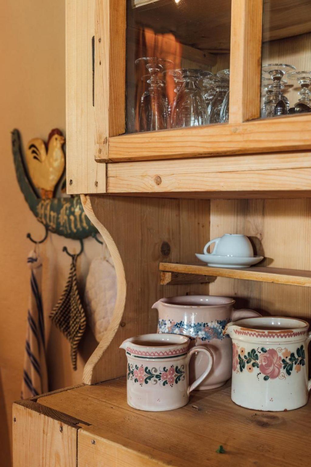 Inside, the BLACHTY welcomes you with a lovingly designed eat-in kitchen, which is equipped with a wooden cooker, a corner bench and an antique table. The entire living area is furnished with authentic period furniture, complemented by contemporary works of art from the owners' family. The functional kitchen has a cooking island and is equipped with everything you need to conjure up culinary masterpieces. A traditional wood-burning cooker provides cosy warmth, alongside modern amenities such as an oven and dishwasher. In the cosy living room, sofas and a wing chair next to an old sandstone stove invite you to relax, while two spacious bedrooms with comfortable beds and a loft with a TV and reading room round off the offer.