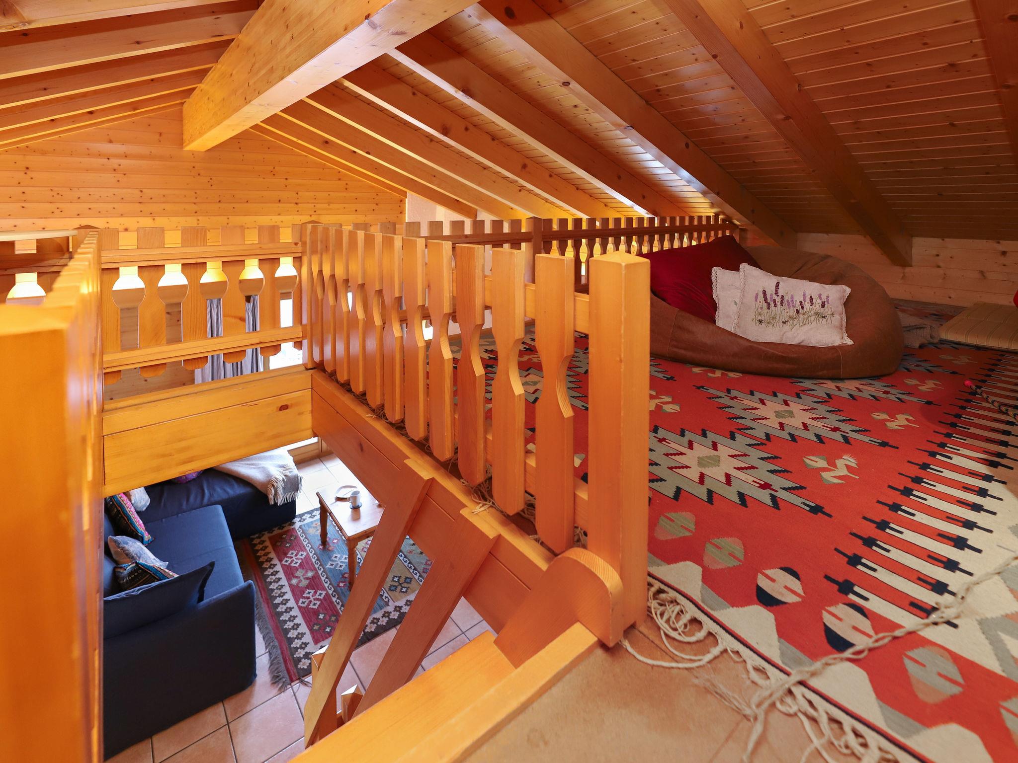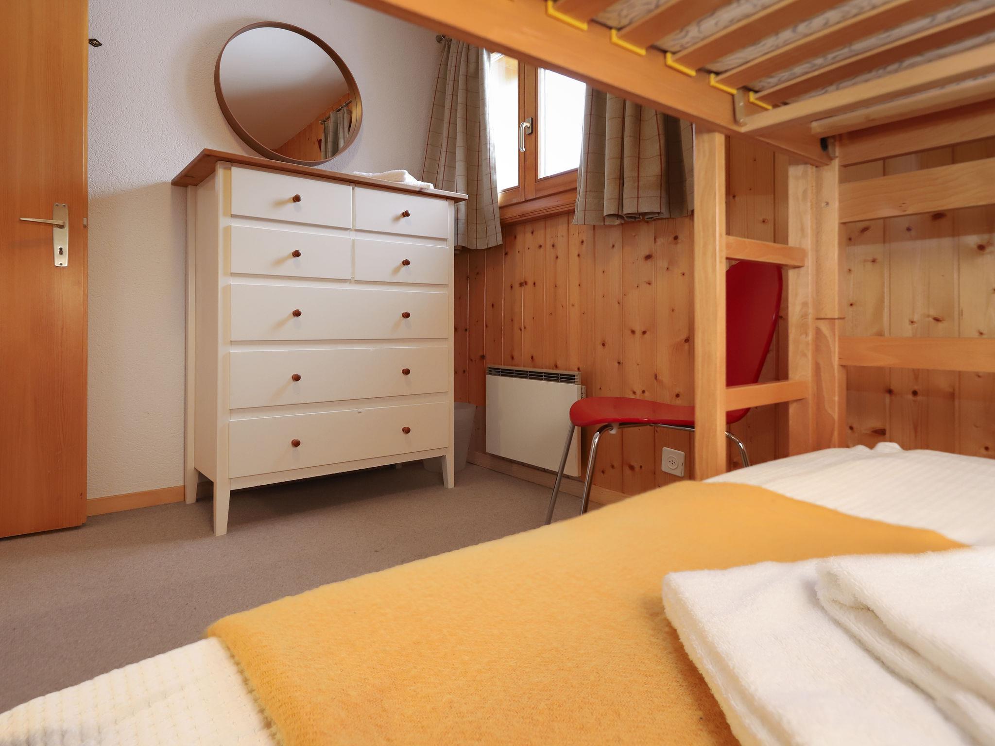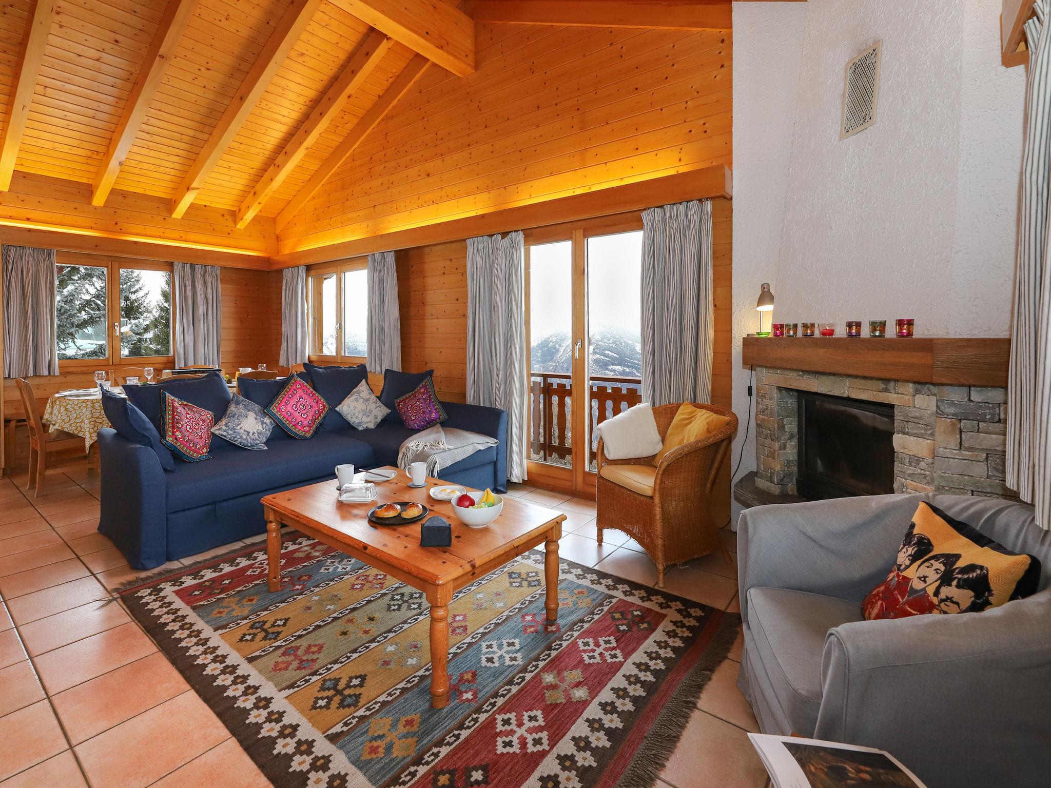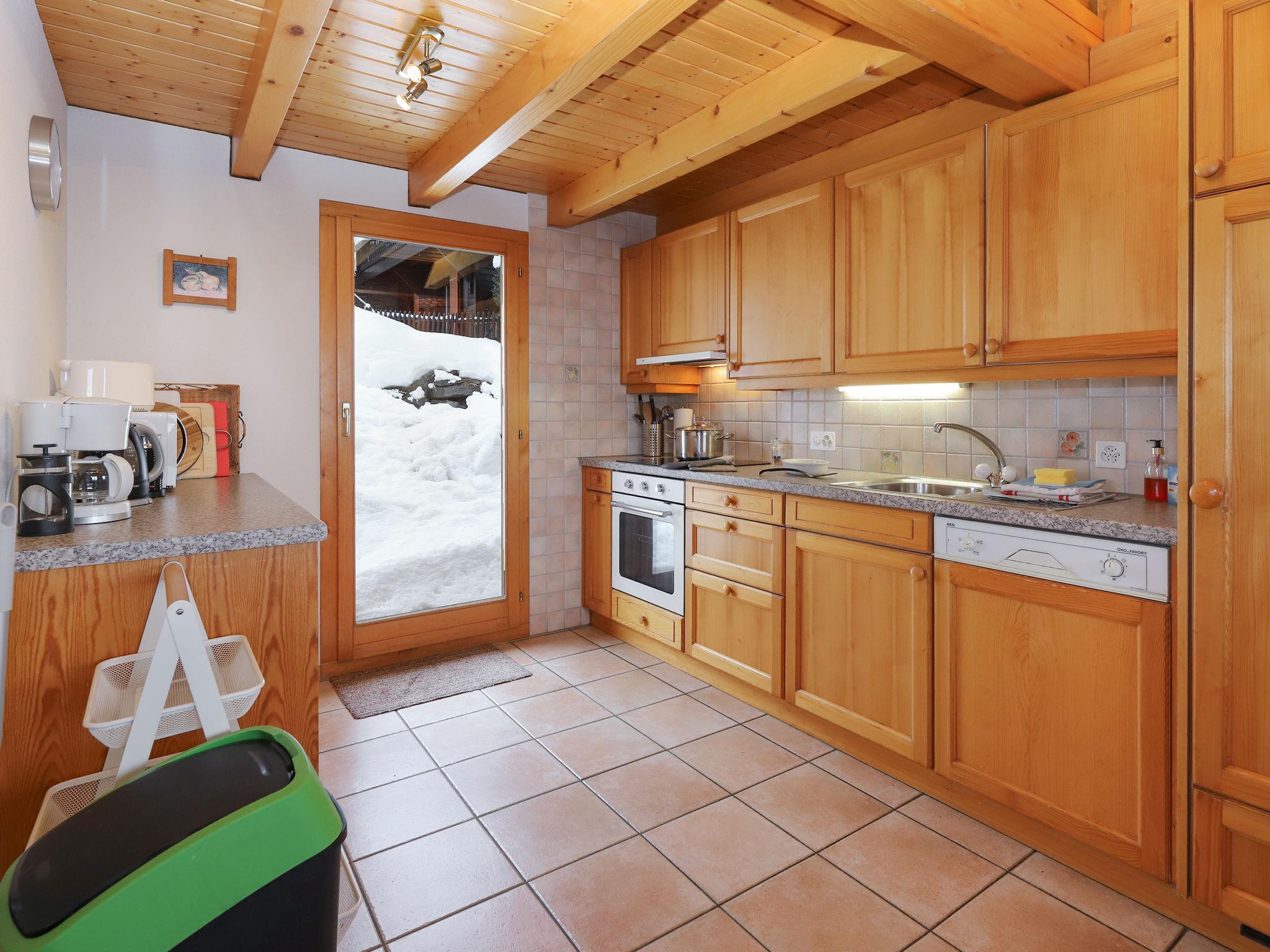 "Lara", 4-room chalet 94 m2 on 2 levels. Practical and beautiful furnishings: living/dining room with open-hearth fireplace and cable TV. Exit to the balcony, north facing position. Open kitchen (oven, dishwasher, toaster, kettle, microwave, electric coffee machine, Capsules for coffee machine (Nespresso) extra, raclette grill, fondue Set (cheese)). Shower/WC. Electric heating. On the lower ground floor: 1 room with 2 beds (90 cm, length 200 cm). 1 room with 1 french bed (160 cm, length 200 cm). 1 room with 1 x 2 bunk beds (90 cm, length 200 cm). Bath/WC. Balcony, north facing position, terrace, south facing position. Beautiful view of the valley. Facilities: washing machine. Internet (WiFi, free). Parking (2 cars). Please note: non-smokers only.