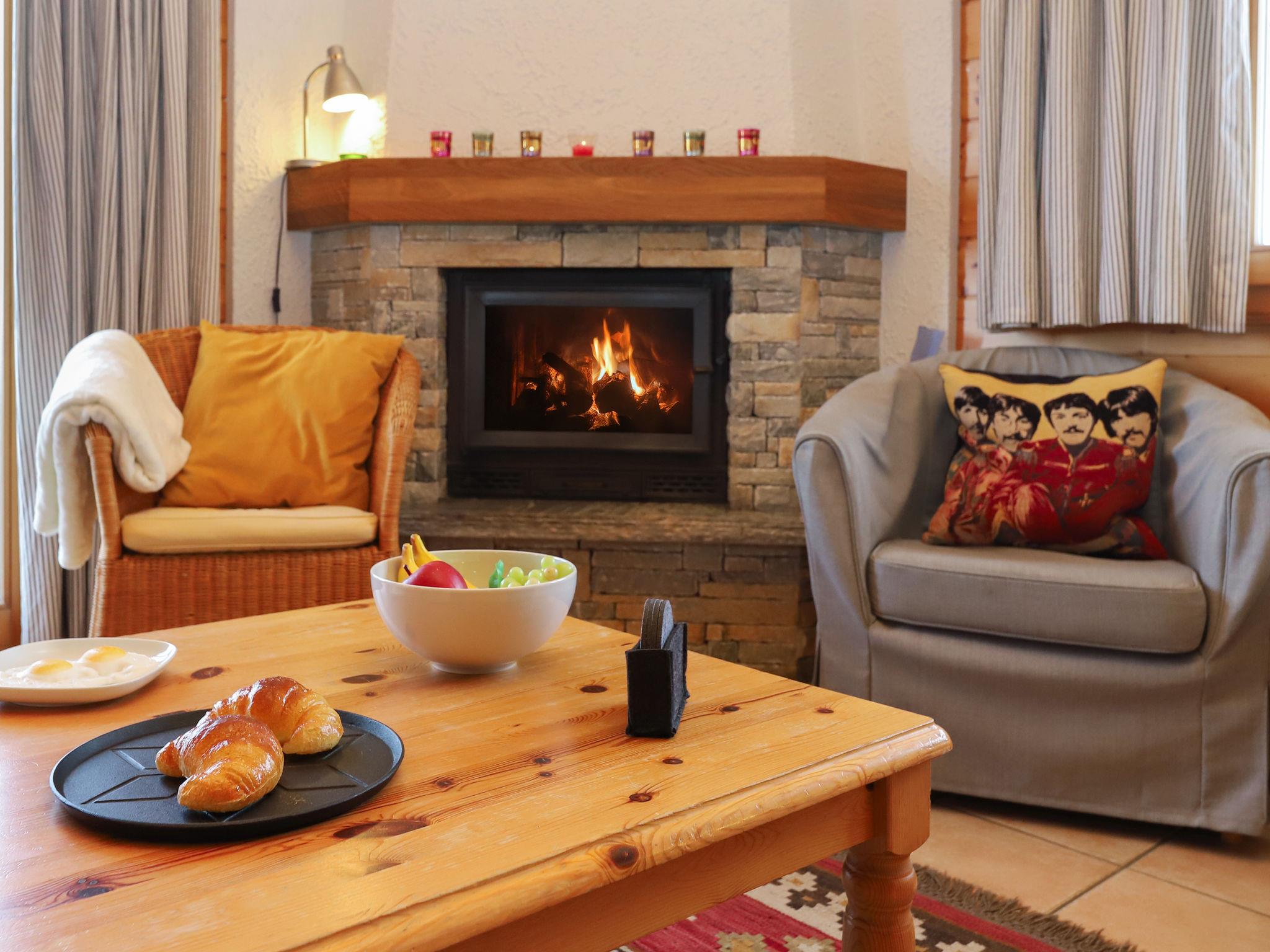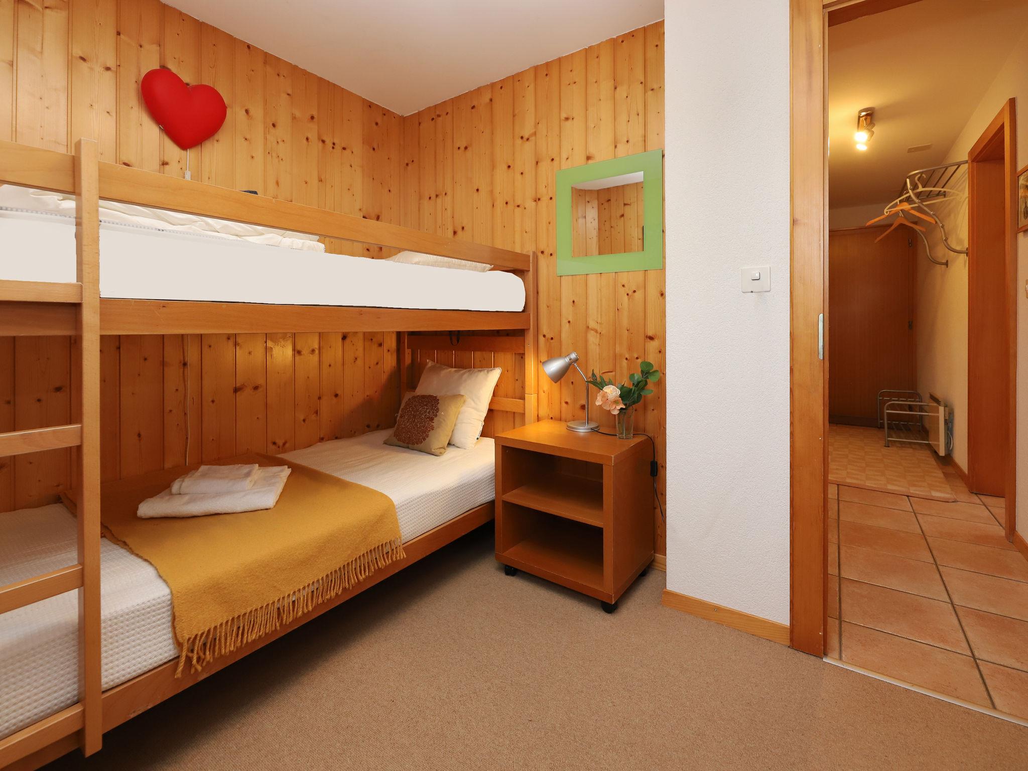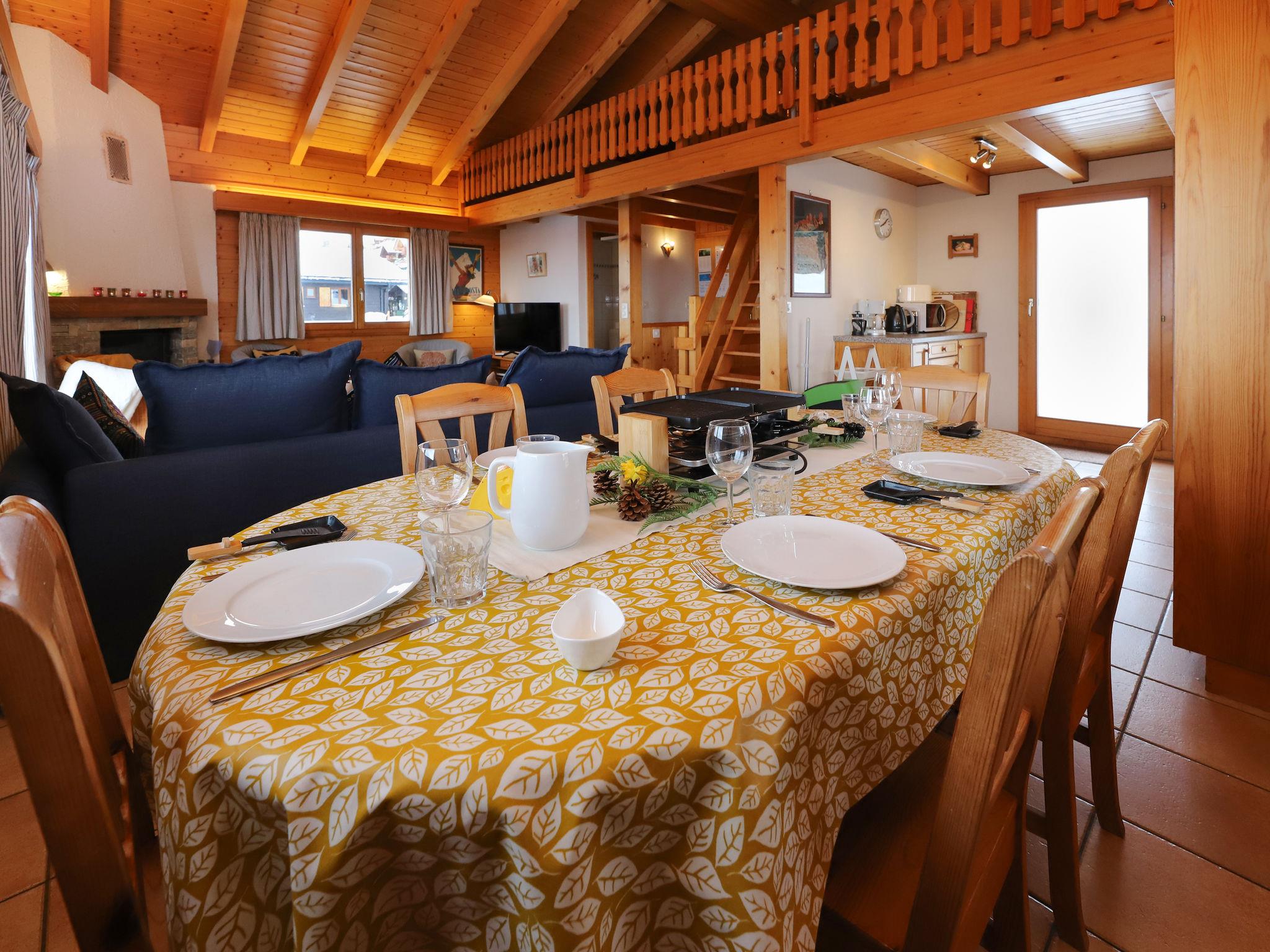 "Lara", 4-room chalet 94 m2 on 2 levels. Practical and beautiful furnishings: living/dining room with open-hearth fireplace and cable TV. Exit to the balcony, north facing position. Open kitchen (oven, dishwasher, toaster, kettle, microwave, electric coffee machine, Capsules for coffee machine (Nespresso) extra, raclette grill, fondue Set (cheese)). Shower/WC. Electric heating. On the lower ground floor: 1 room with 2 beds (90 cm, length 200 cm). 1 room with 1 french bed (160 cm, length 200 cm). 1 room with 1 x 2 bunk beds (90 cm, length 200 cm). Bath/WC. Balcony, north facing position, terrace, south facing position. Beautiful view of the valley. Facilities: washing machine. Internet (WiFi, free). Parking (2 cars). Please note: non-smokers only.