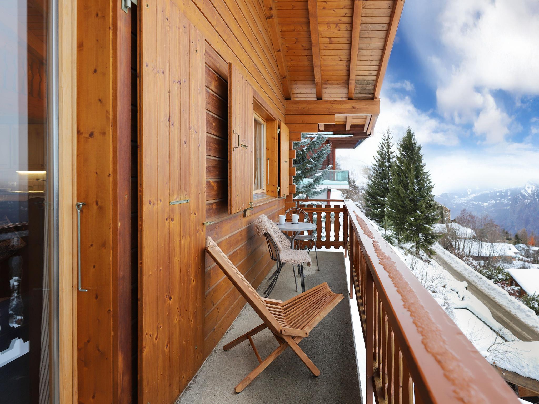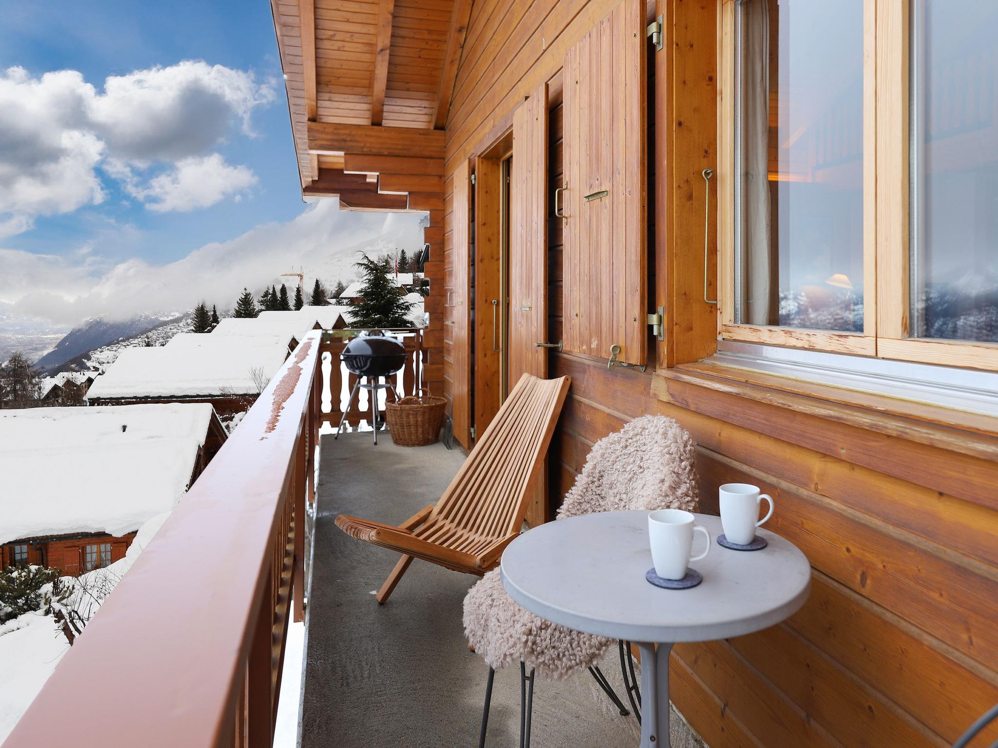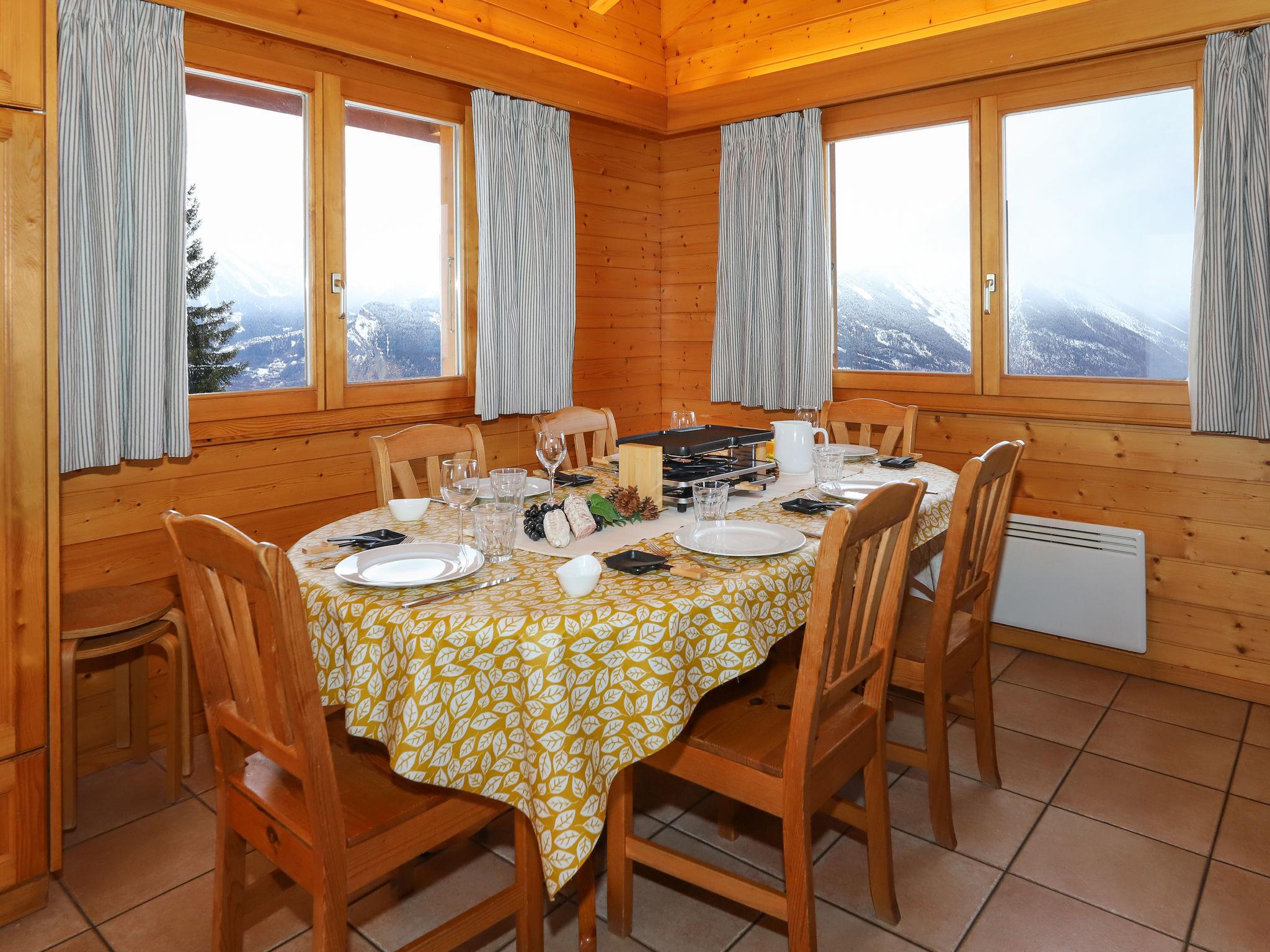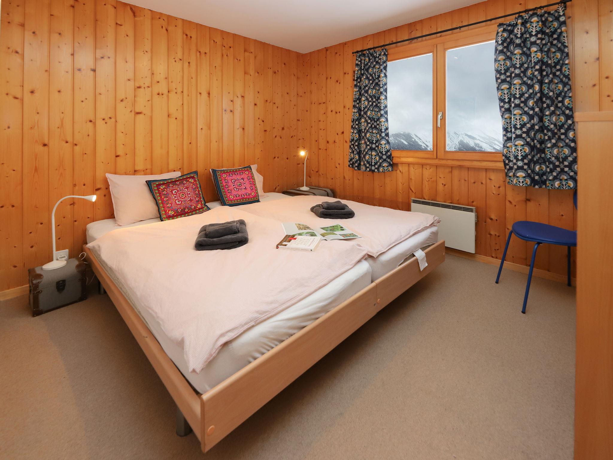 "Lara", 4-room chalet 94 m2 on 2 levels. Practical and beautiful furnishings: living/dining room with open-hearth fireplace and cable TV. Exit to the balcony, north facing position. Open kitchen (oven, dishwasher, toaster, kettle, microwave, electric coffee machine, Capsules for coffee machine (Nespresso) extra, raclette grill, fondue Set (cheese)). Shower/WC. Electric heating. On the lower ground floor: 1 room with 2 beds (90 cm, length 200 cm). 1 room with 1 french bed (160 cm, length 200 cm). 1 room with 1 x 2 bunk beds (90 cm, length 200 cm). Bath/WC. Balcony, north facing position, terrace, south facing position. Beautiful view of the valley. Facilities: washing machine. Internet (WiFi, free). Parking (2 cars). Please note: non-smokers only.