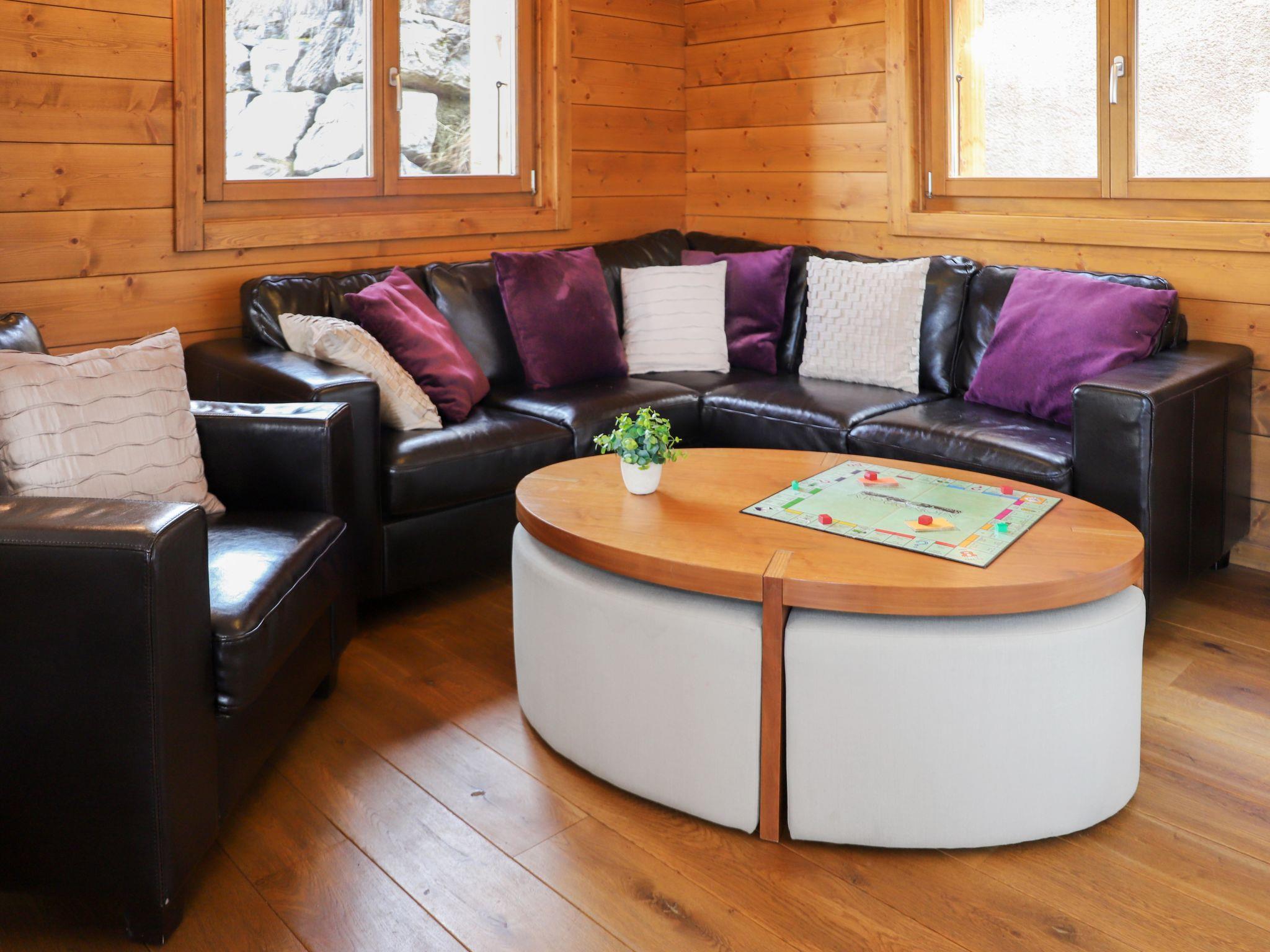 "Le Grillon", 7-room chalet 200 m2 on 3 levels. Spacious, comfortable and tasteful furnishings: large living room with open-hearth fireplace, cable TV and DVD. Exit to the balcony. Small lounge with TV and DVD. Exit to the terrace. Dining room. Exit to the terrace. Large kitchen (oven, dishwasher, 4 ceramic glass hob hotplates, toaster, kettle, microwave, freezer, electric coffee machine, Capsules for coffee machine (Nespresso) extra, raclette grill, fondue Set (cheese)). On the lower ground floor: small entrance hall. 1 room with 1 french bed (140 cm, length 200 cm). 1 room with 1 french bed (160 cm, length 200 cm). 1 room with 2 beds (90 cm, length 200 cm), shower/WC. Shower/WC. Underfloor heating. Top floor: 1 large room with 2 beds (90 cm, length 200 cm), bath/WC. Exit to the balcony, north facing position. 1 children's room with 1 french bed (140 cm, length 190 cm). Bath/shower/WC. Balcony, north facing position, large terrace, west facing position. Terrace furniture, barbecue, deck chairs (2). View of the mountains. Facilities: washing machine, dryer, iron, hair dryer. Internet (WiFi, free). Parking (4 cars). Please note: non-smoking house.