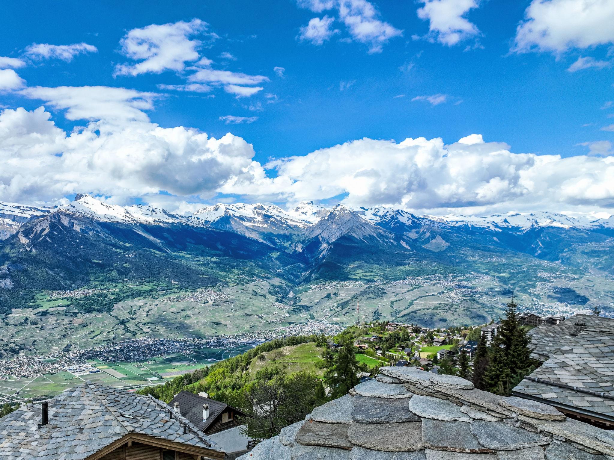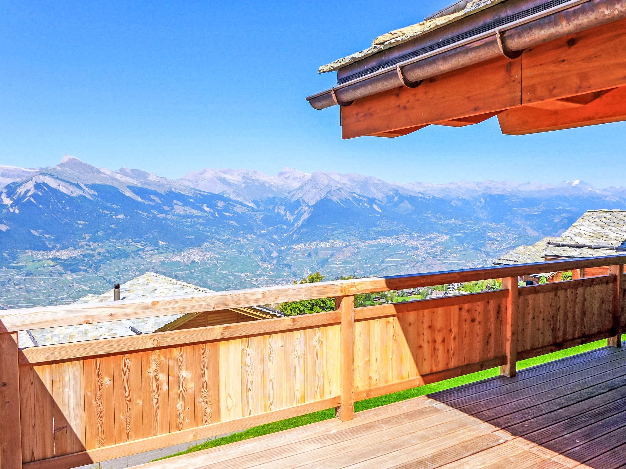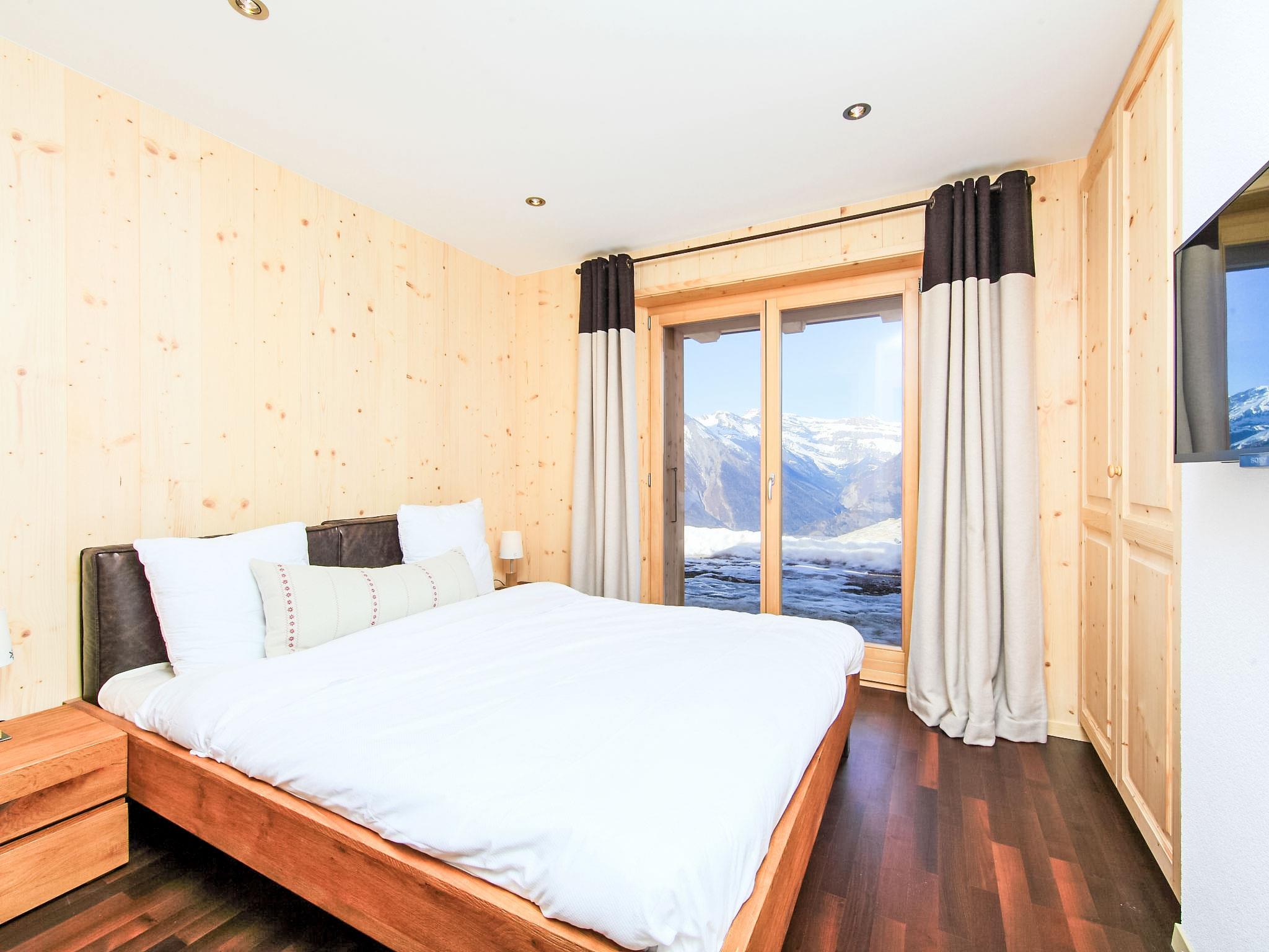 "Chalet Flocon de Neige", 5-room chalet 184 m2 on 2 levels. Comfortable furnishings: large living/dining room with panoramic window with Scandinavian wood stove, dining nook, cable TV and DVD. Open kitchen (oven, dishwasher, 6 induction hot plates, toaster, kettle, microwave, electric coffee machine, Capsules for coffee machine (Nespresso) extra, raclette grill, cooking island, fondue Set (cheese)). Sep. WC. Heating. On the lower ground floor: 2 double bedrooms, each room with 2 beds (90 cm, length 200 cm). 1 children's room with 1 bed (90 cm, length 190 cm), 1 x 2 bunk beds (90 cm, length 190 cm), cable TV, flat screen and DVD. 1 double bedroom with 1 french bed (160 cm, length 190 cm), shower/WC, cable TV and flat screen. Bath/WC, shower/WC. Balcony, north facing position, terrace, west facing position and north facing position. Terrace furniture, barbecue, deck chairs (2). Very beautiful view of the mountains and the valley. Facilities: washing machine, dryer, children's high chair, baby cot, hair dryer. Internet (WiFi, free). Parking (3 cars). Please note: non-smoking house.