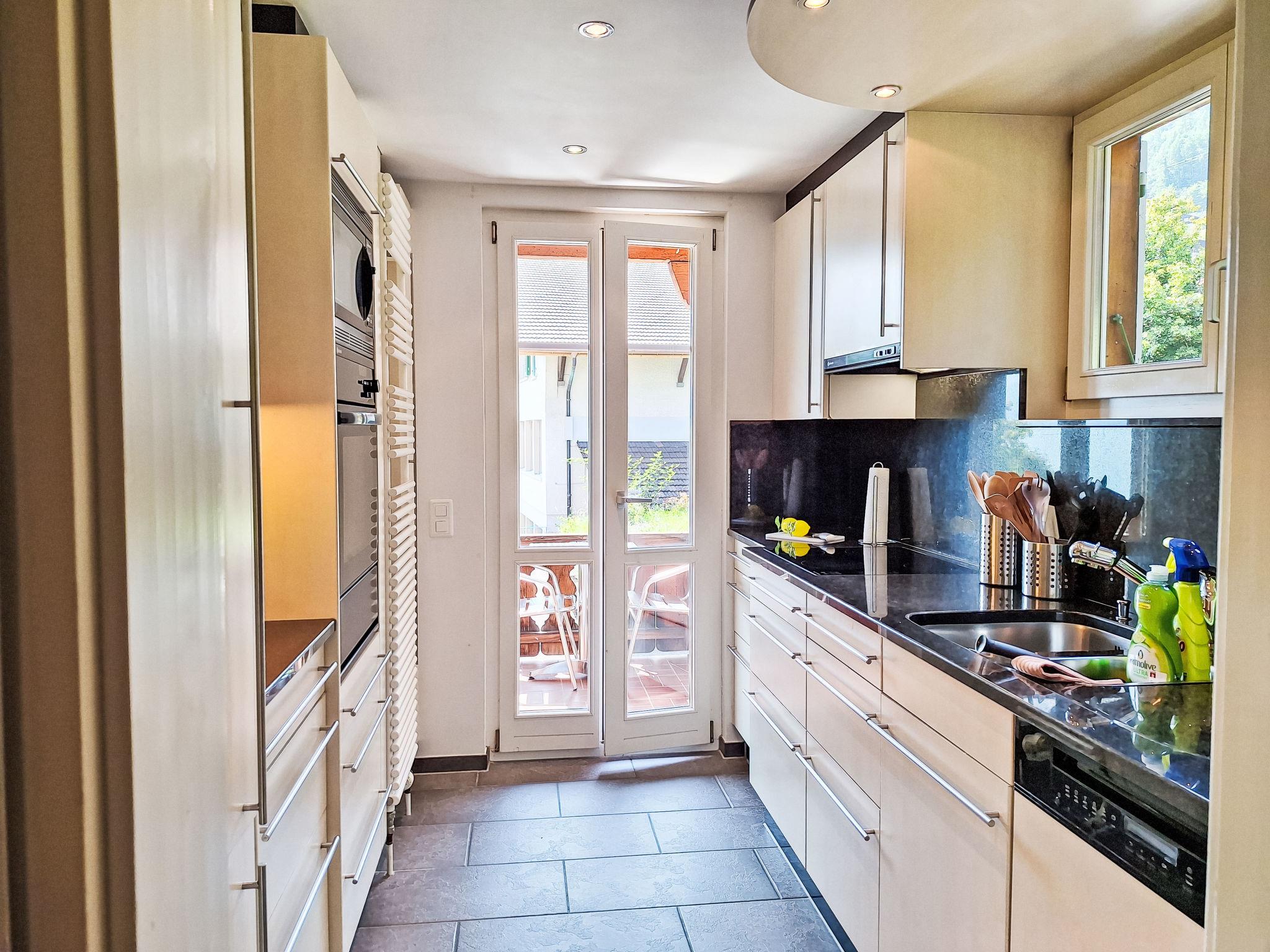 Very beautiful chalet "Haus am See", 3 storeys, detached. In a sunny position, 10 m from the lake. Private: natural state property, terraced garden (not fenced), lawn for sunbathing. Bathing place. In the house: central heating system, washing machine, tumble dryer, drying room. Parking on the premises. Shop 8.5 km, grocery 4 km, supermarket 8 km, restaurant 250 m, bus stop "Niederried Dorf" 350 m, railway station "Niederried" 400 m. Golf course (18 hole) 15 km. Nearby attractions: Jungfraujoch Top of Europe, Schilthorn Piz Gloria, Freilichtmuseum Ballenberg, Interlaken. Well-known ski regions can easily be reached: Grindelwald Kleine Scheidegg 26 km, Meiringen Hasliberg 27 km. Well-known lakes can easily be reached: Brienzersee, Thunersee. Hiking paths: Jungfrau Region. Please note: railway line closeby.