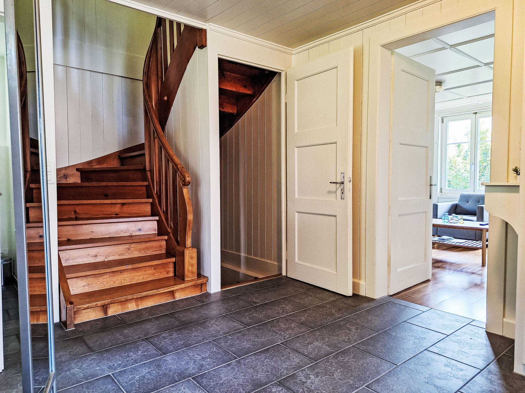 7-room chalet on 3 levels. Spacious and bright, comfortable and cosy furnishings: living room with Scandinavian wood stove and cable TV. Open dining room with sliding door. Exit to the balcony. Kitchen (oven, dishwasher, 4 ceramic glass hob hotplates, toaster, kettle, microwave, electric coffee machine, Capsules for coffee machine (Nespresso) extra, raclette grill). Exit to the balcony. Sep. WC. On the lower ground floor: 2 rooms, each room with 1 double bed (180 cm, length 200 cm). Shower/WC. Upper floor: 2 rooms, each room with 1 bed (90 cm, length 200 cm). 1 large double bedroom with 1 double bed (180 cm, length 200 cm). Exit to the balcony. Bath/shower/WC, double hand-basin. 2 balconies, south facing position, small balcony, west facing position. Marvellous view of the lake, the mountains and the countryside. Facilities: hair dryer. Internet (WiFi). Please note: non-smoking house. Smoke alarm, fire extinguisher. Property is located directly on the lake, not fenced.