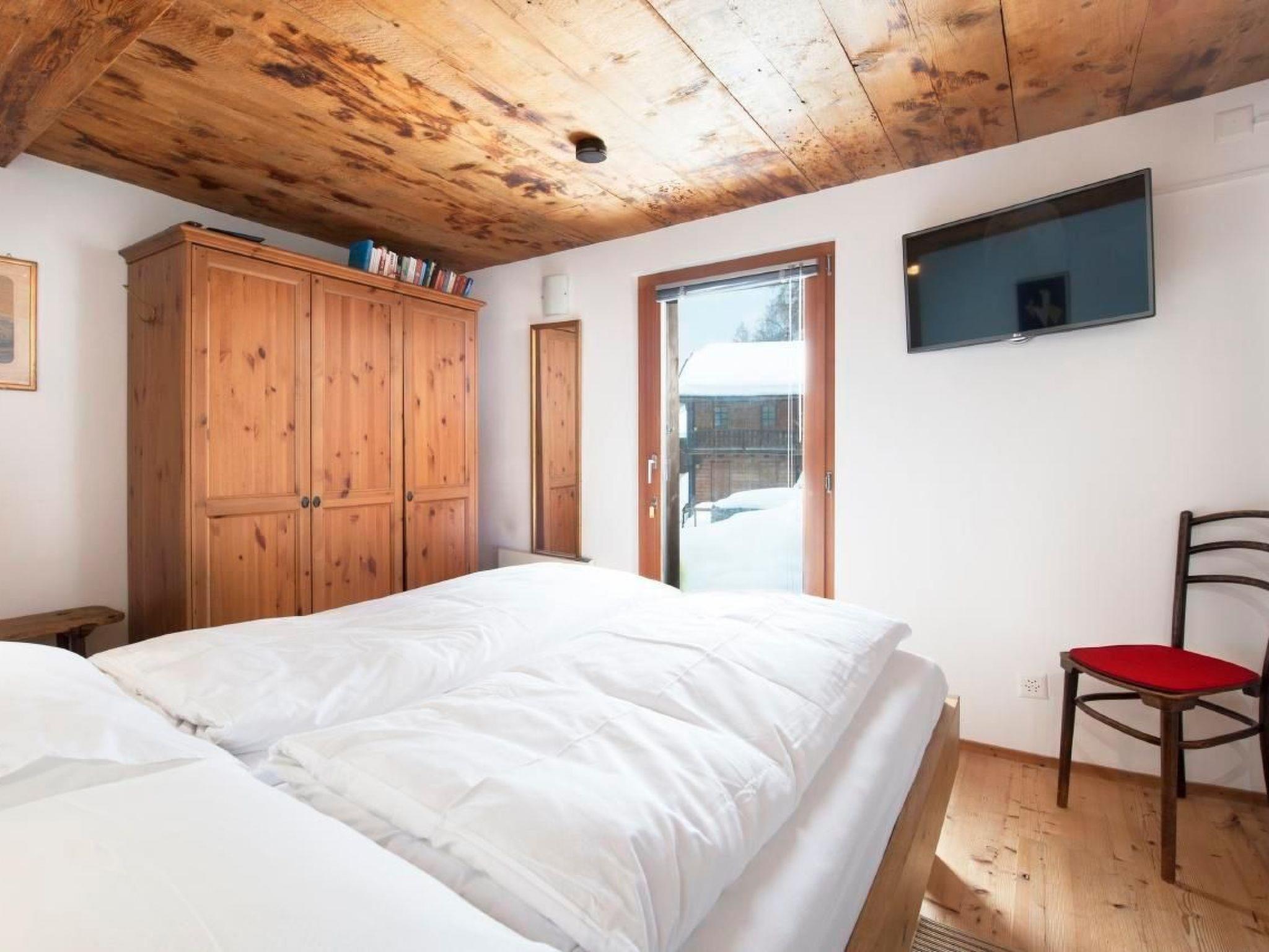 Following careful modernisation in 2010, the interior of the Spycher is cosy and functional. The ground floor has a bedroom with a double bed, TV, shower and WC as well as an additional washbasin. The original eat-in kitchen on the upper floor is equipped with a red kitchenette with a ceramic hob, fridge and dishwasher. A sofa, a sideboard, a table, Internet/WLAN and a SONOS loudspeaker complete the room.