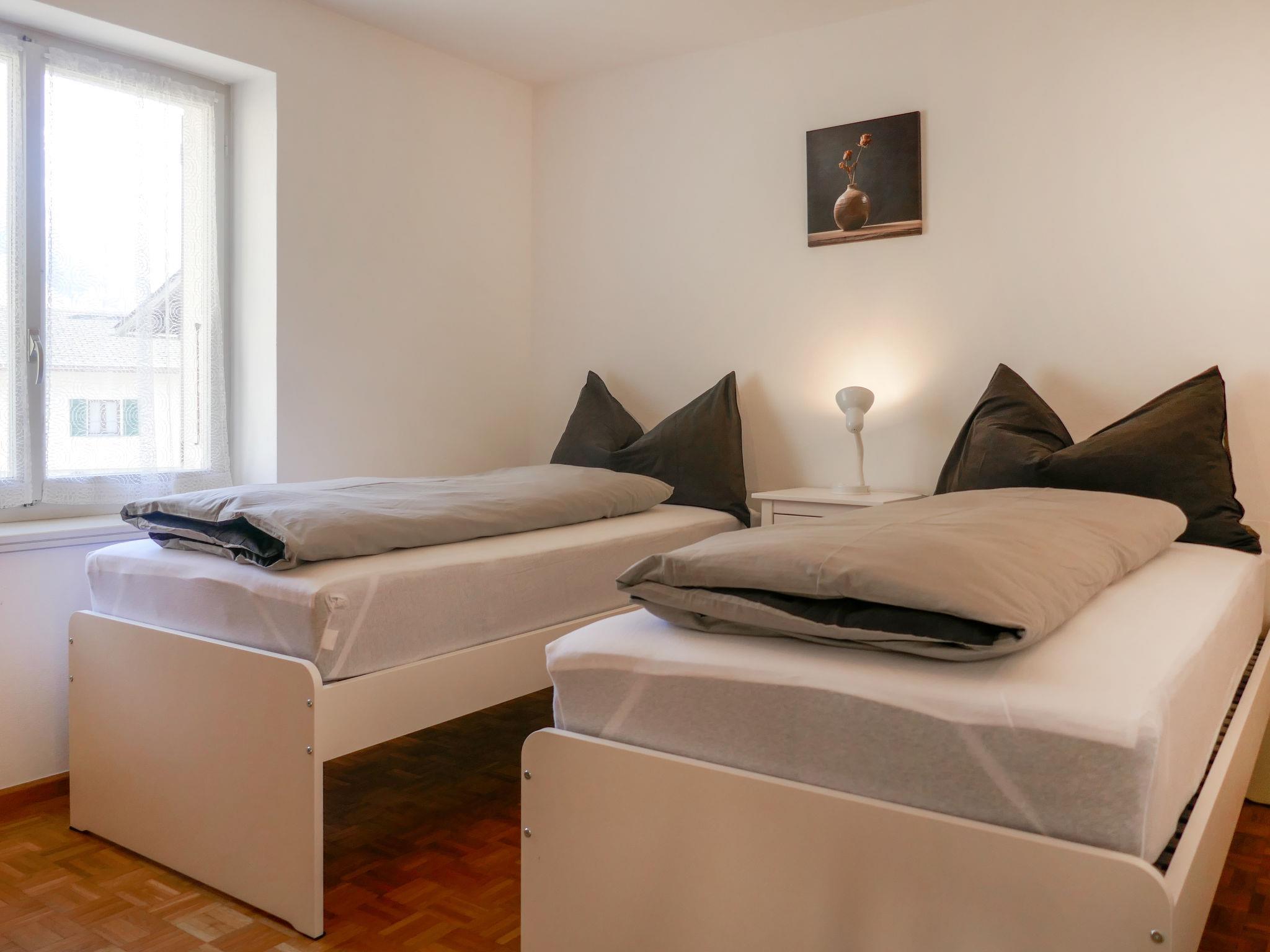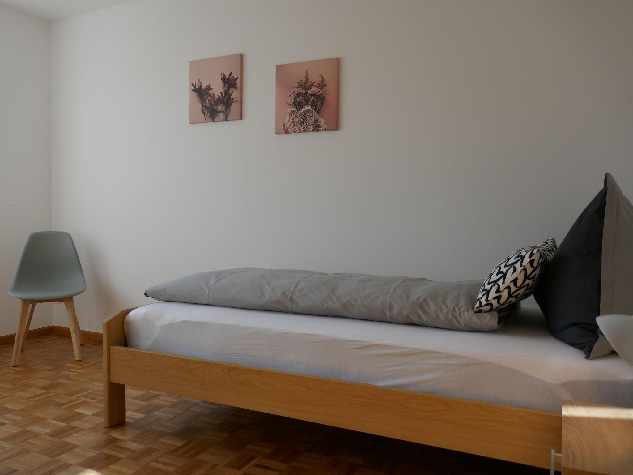 "Terry", 4-room apartment 90 m2 on 1st floor. Spacious and bright, practical and comfortable furnishings: open living room with satellite TV. Exit to the balcony. 1 double bedroom with 1 double bed (1 x 160 cm, length 200 cm), shower/WC. 1 room with 2 beds (90 cm, length 200 cm). 1 room with 1 bed (90 cm, length 200 cm). Kitchen (4 ceramic glass hob hotplates, toaster, kettle, freezer, electric coffee machine, Capsules for coffee machine (Nespresso) extra, raclette grill). Exit to the terrace. Bath/WC. Electric heating. Terrace. Terrace furniture, barbecue (portable), deck chairs (2). Beautiful view of the mountains and the countryside. Facilities: children's high chair, baby cot for up to 2 year olds (extra), hair dryer. Internet (WiFi, free). Please note: non-smokers only. Maximum 1 pet/ dog allowed. NL-00006981