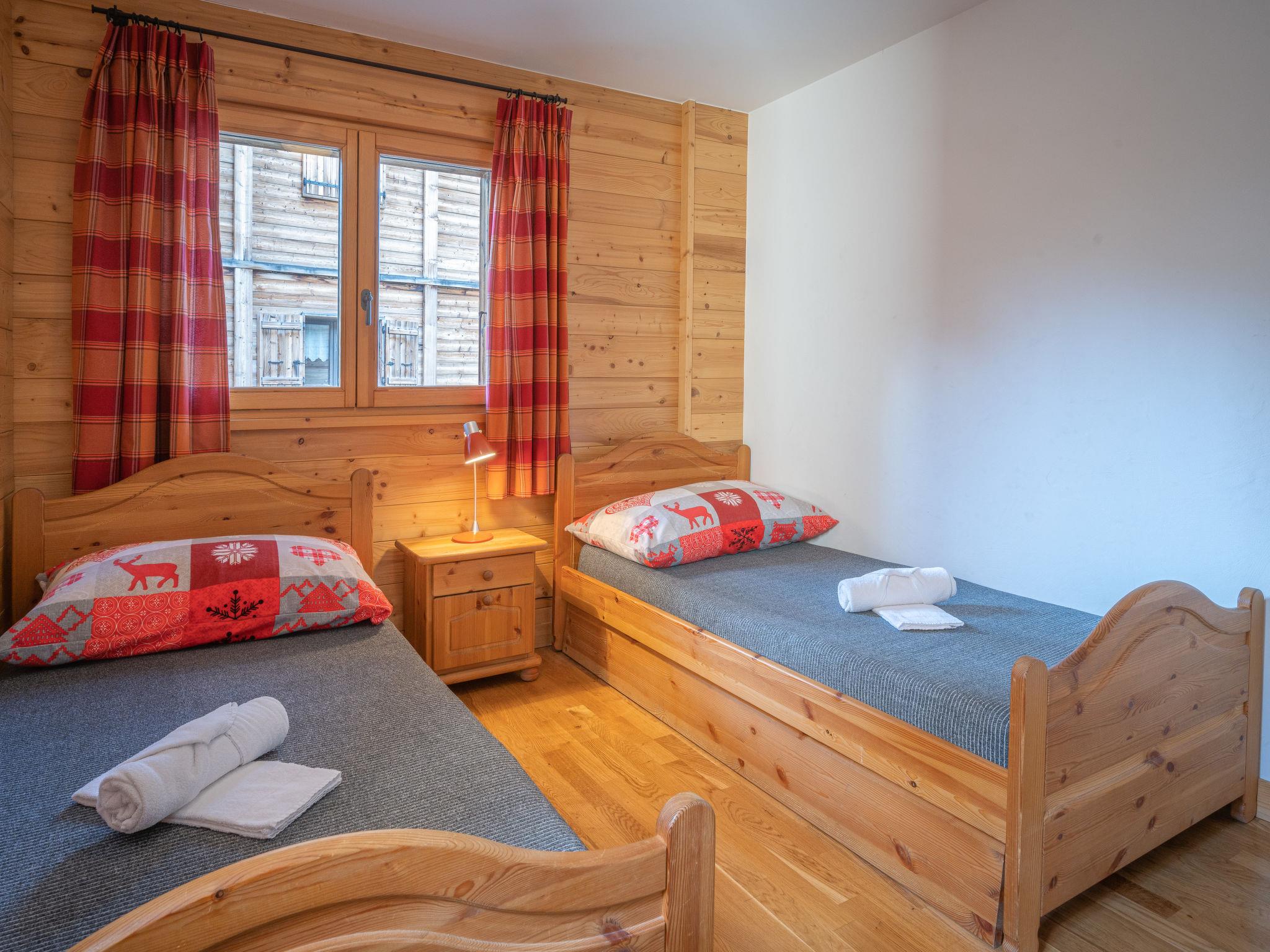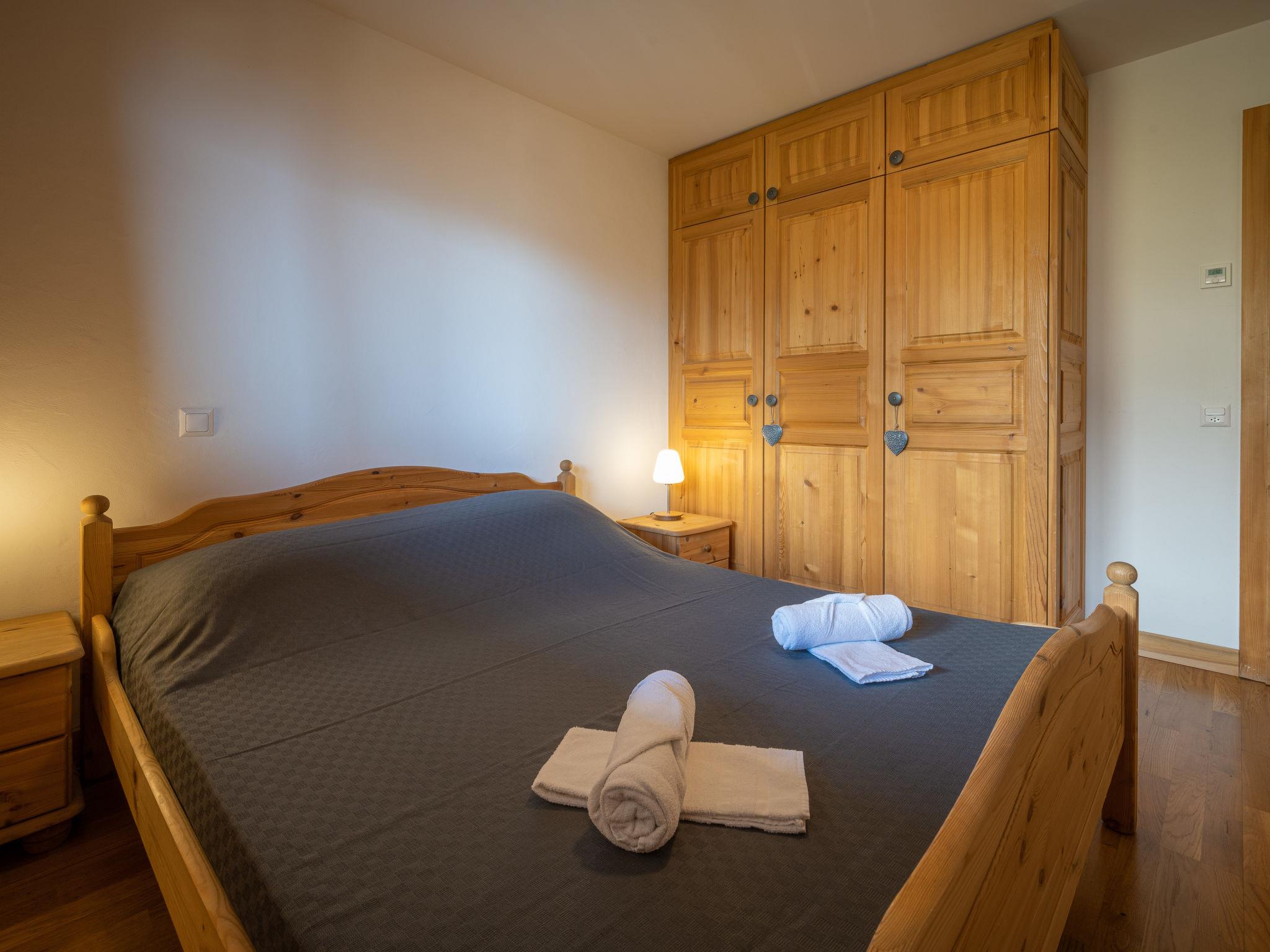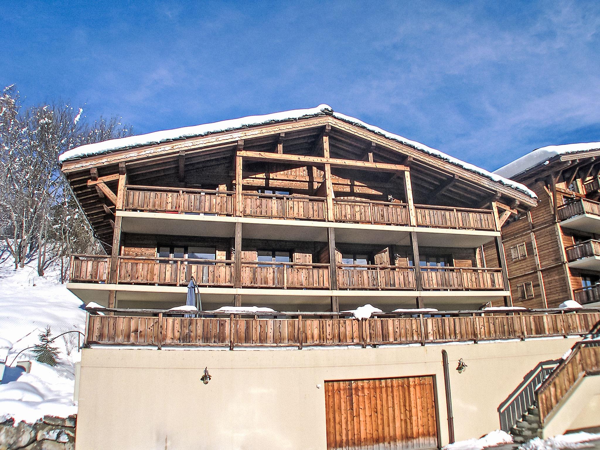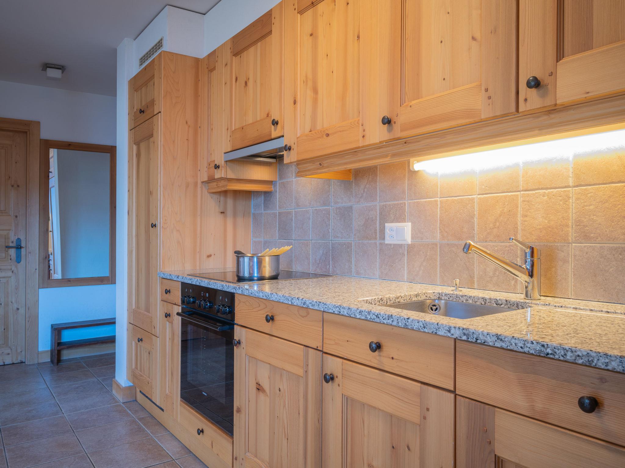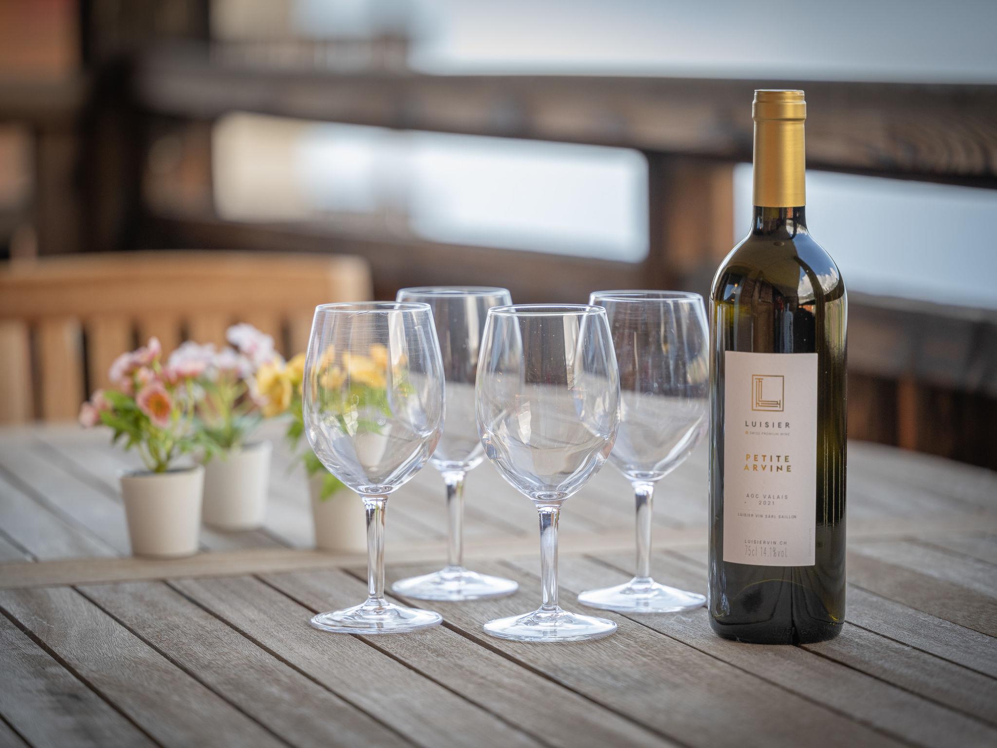 "Les Chalets de Marie A 21", 3-room apartment 70 m2, south-east facing position. Comfortable and tasteful furnishings: living/dining room with 1 sofabed (90 cm, length 190 cm), dining table, cable TV, video, hi-fi system and DVD. Exit to the balcony. 1 room with 1 french bed (1 x 160 cm, length 190 cm), radio. 1 room with 2 beds (90 cm, length 190 cm). Open kitchen (4 hot plates, oven, dishwasher, microwave, electric coffee machine, Capsules for coffee machine (Nespresso) extra). Shower/WC, sep. WC. Terrace 15 m2. Terrace furniture, deck chairs (4). Very beautiful view of the mountains and the valley. Facilities: iron, baby cot for up to 3 year olds, hair dryer. Internet (WiFi, free). Garage space n 21, height 215 cm. Please note: non-smokers only.