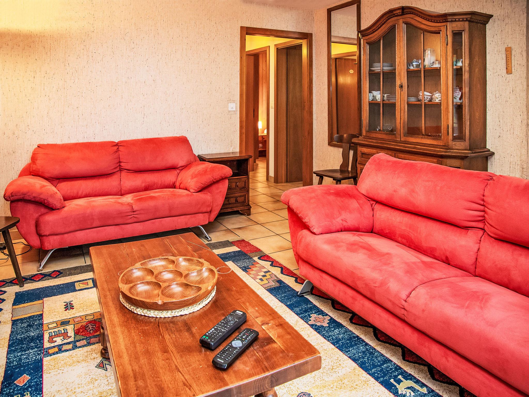 "Roc Lyv", 3-room apartment 73 m2. Comfortable and tasteful furnishings: entrance hall. Living/dining room with open-hearth fireplace, cable TV, flat screen, radio, CD-player and DVD. Exit to the balcony, south facing position. 1 room with 1 bed (90 cm, length 210 cm), 1 x 2 bunk beds (90 cm, length 210 cm). 1 room with 1 french bed. Open kitchen (oven, dishwasher, 4 ceramic glass hob hotplates, microwave, electric coffee machine, Capsules for coffee machine (Nespresso) extra, raclette grill, fondue Set (chinoise, cheese)) with dining table. Shower/WC, sep. WC. Large balcony 7 m2, south facing position. Very beautiful view of the mountains. Facilities: Internet (WiFi, free). Parking, garage. Please note: non-smokers only.
