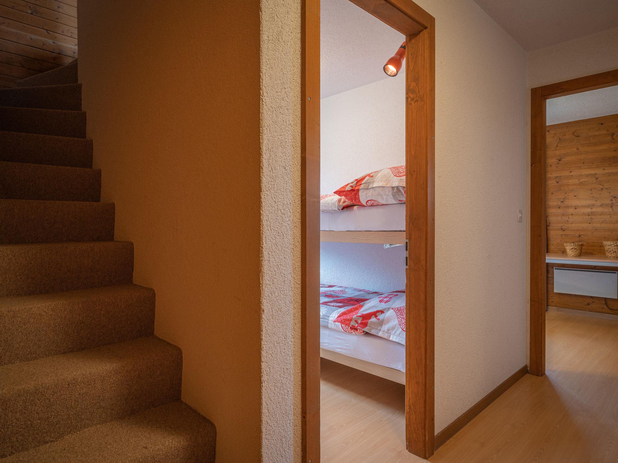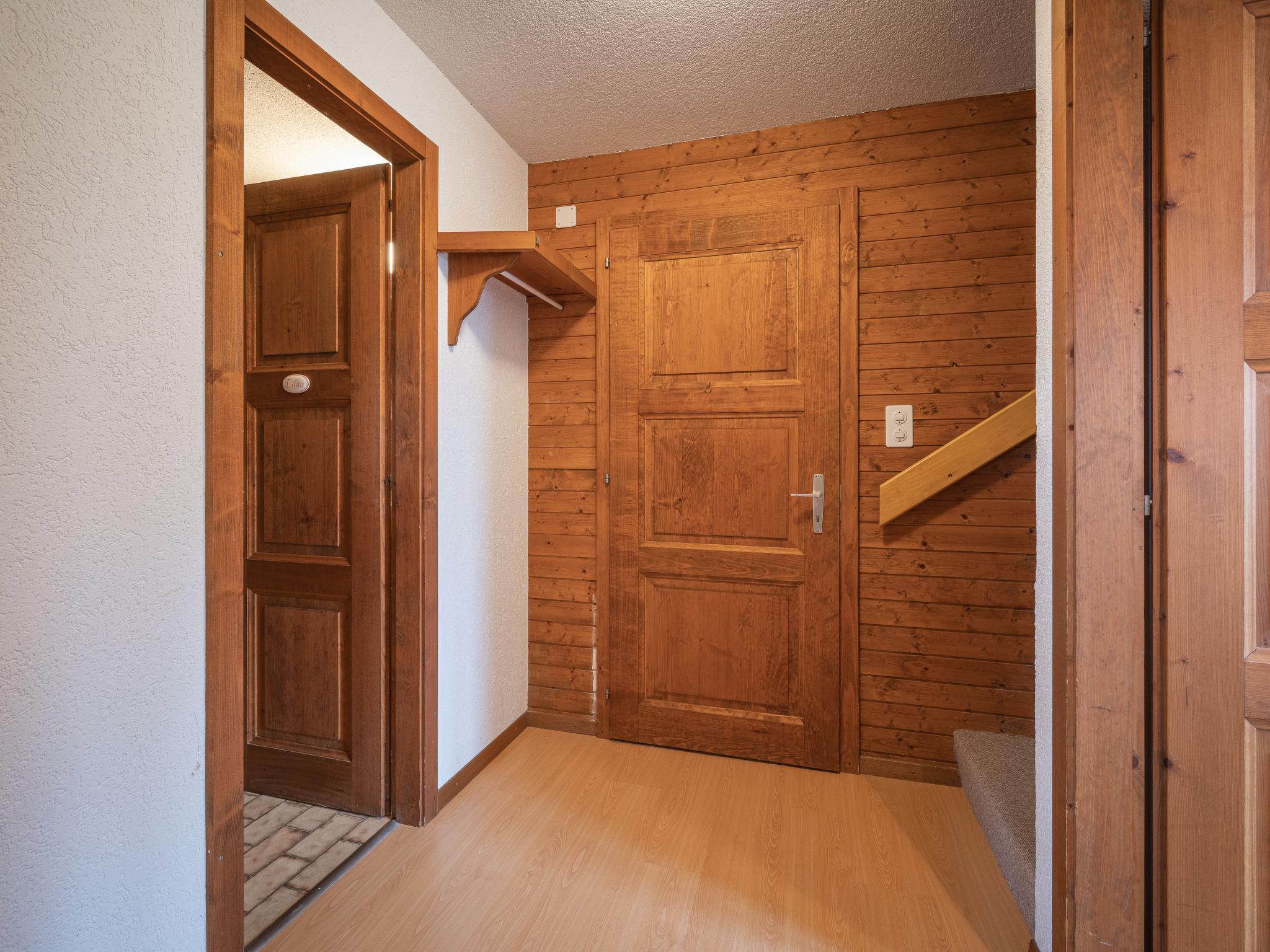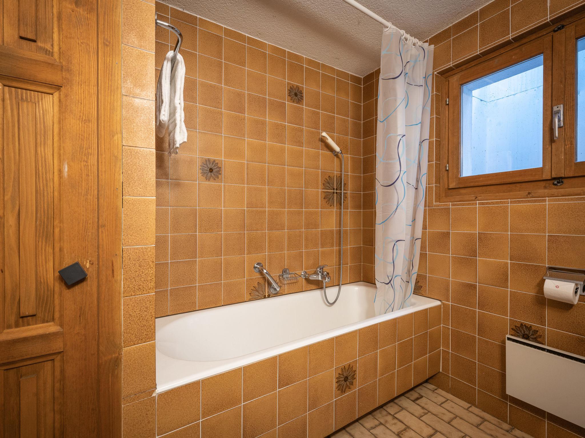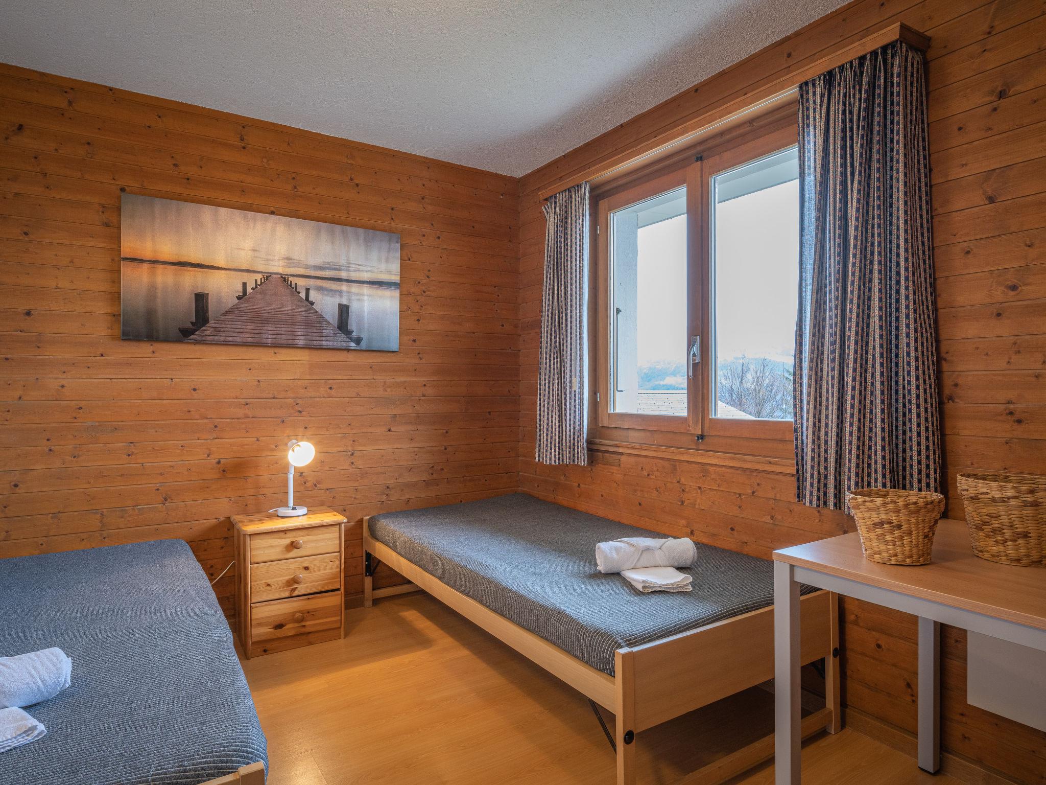 4-room chalet on 2 levels, south facing position. Comfortable furnishings: living/dining room with open-hearth fireplace, TV and radio. Exit to the balcony. Kitchenette (oven, dishwasher, 4 ceramic glass hob hotplates, toaster, microwave, electric coffee machine, Capsules for coffee machine (Nespresso) extra, fondue Set (chinoise, cheese)). Sep. WC. On the lower ground floor: 1 room with 2 beds (90 cm). 1 room with 2 beds and hand-basin. 1 children's room with 1 x 2 bunk beds. Bath/WC, shower. Electric heating. Balcony. Deck chairs, box-room. Beautiful view of the mountains. Facilities: iron, baby cot for up to 2 year olds. Internet (WiFi, free). Garage. Please note: non-smokers only.
