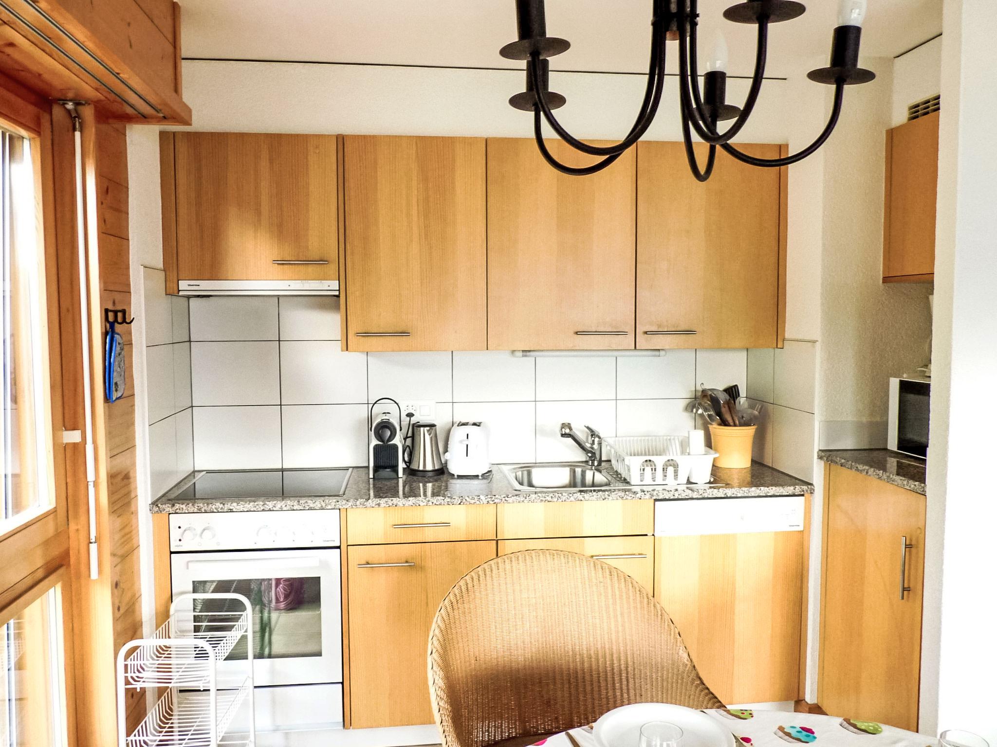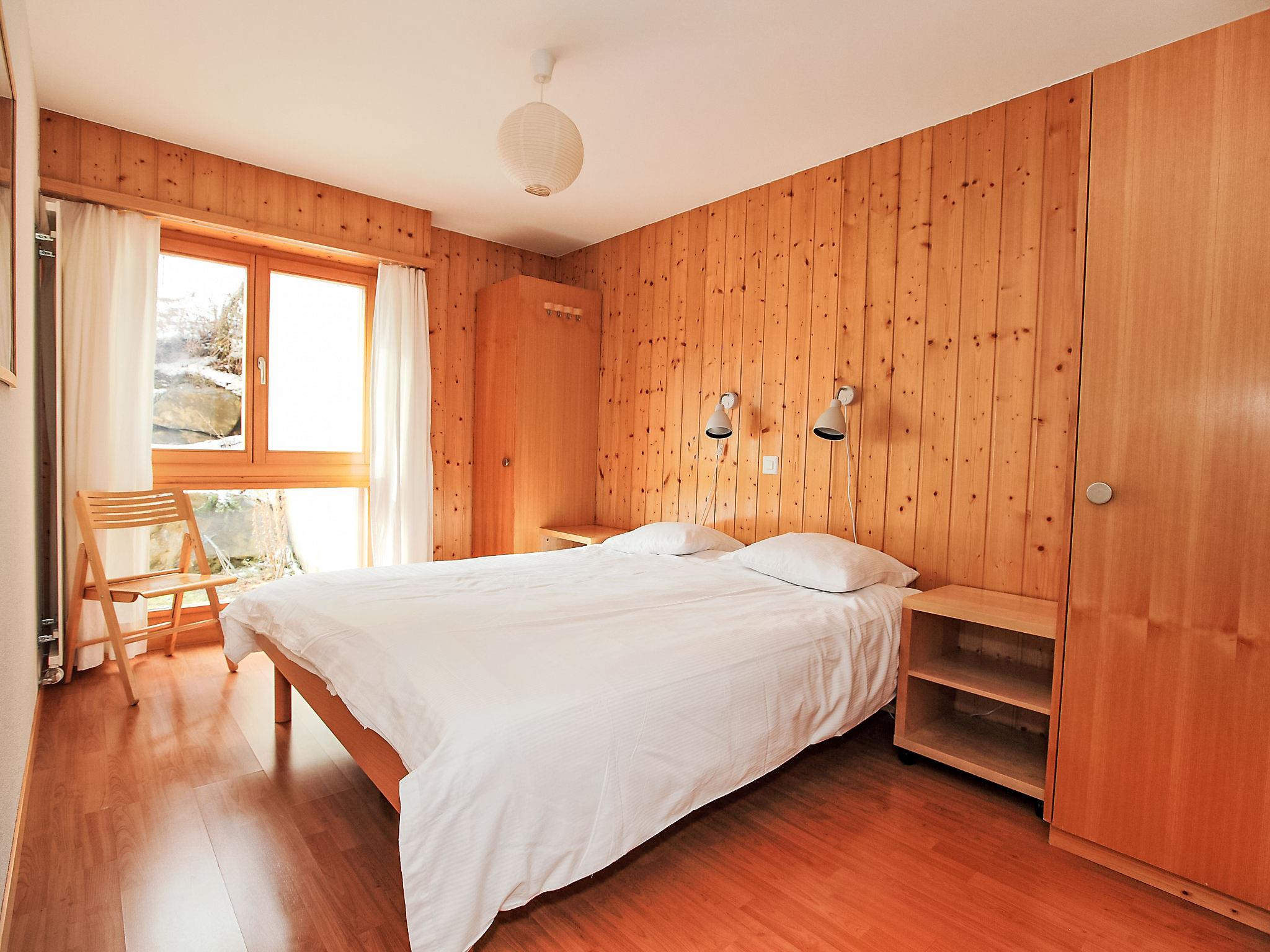 "Fénestral R01", 3-room apartment 70 m2, on the ground floor. Living/dining room with 1 double sofabed, dining table, cable TV and DVD. Exit to the terrace, south-west facing position. 2 rooms, each room with 2 beds (90 cm, length 200 cm). (dishwasher, 4 ceramic glass hob hotplates, microwave, electric coffee machine, Capsules for coffee machine (Nespresso) extra, fondue Set (cheese)). Bath/WC, shower/WC. Terrace. Terrace furniture. Beautiful view of the mountains. Facilities: Internet (WiFi, free). Garage space n R0 1. Suitable for families.