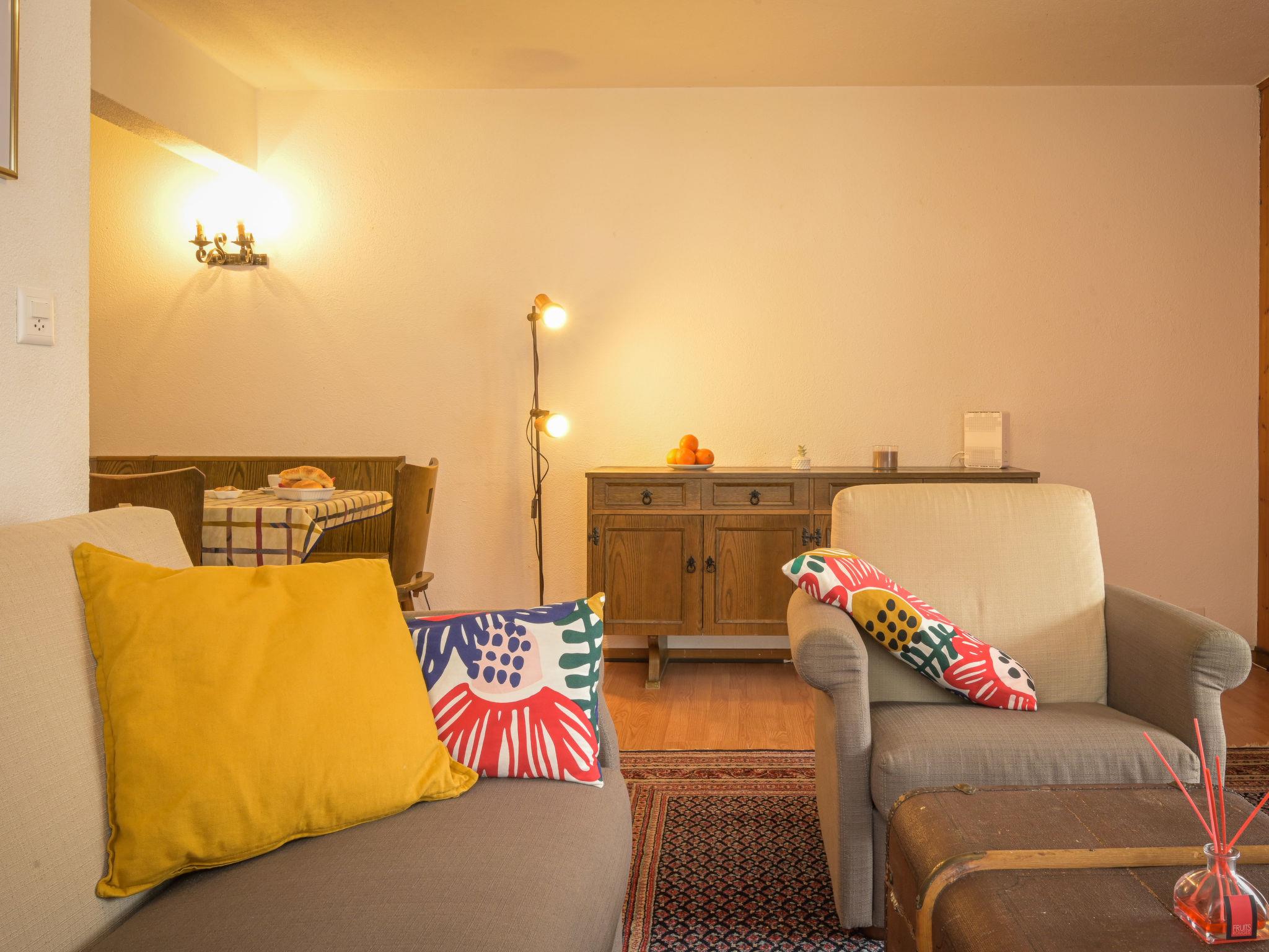 "Dent Favre A 5", 2-room apartment 50 m2 on 2nd floor, south-west facing position. Comfortable and beautiful furnishings: entrance hall. Living/dining room with panoramic window with 1 sofabed and cable TV. Exit to the balcony, south facing position. 1 room with 1 french bed (160 cm, length 200 cm). Kitchen (4 hot plates, oven, electric coffee machine, Capsules for coffee machine (Nespresso) extra, raclette grill, fondue Set (cheese)). Bath/WC. South-west facing position. Balcony furniture. Panoramic view of the mountains and the valley. Facilities: iron, baby cot (extra), hair dryer. Internet (WiFi, free). Parking (1 car) at 50 m. Please note: non-smokers only.