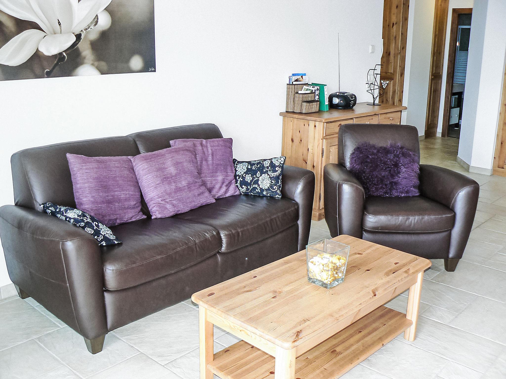 "Ardève No 11", 3-room apartment 80 m2 on 2nd floor, south facing position. Very comfortable and modern furnishings: entrance hall. Living/dining room with panoramic window with 1 sofabed (140 cm, length 190 cm), dining table, cable TV, CD-player and DVD. Exit to the balcony, south facing position. 1 room with 1 french bed (160 cm, length 200 cm), bath/WC. 1 room with 2 beds (90 cm, length 190 cm). Open kitchen (oven, dishwasher, 4 ceramic glass hob hotplates, kettle, microwave, electric coffee machine, Capsules for coffee machine (Nespresso) extra, raclette grill, fondue Set (chinoise, cheese)). Shower/WC. Large balcony 11 m2, south facing position. Balcony furniture, deck chairs (4). Very beautiful view of the mountains and the valley. Facilities: iron, baby cot for up to 3 year olds, hair dryer. Internet (WiFi, free). Parking space n 11 (1 car), garage space n 11 (1 car), height 200 cm, width 220 cm. Please note: non-smokers only.
