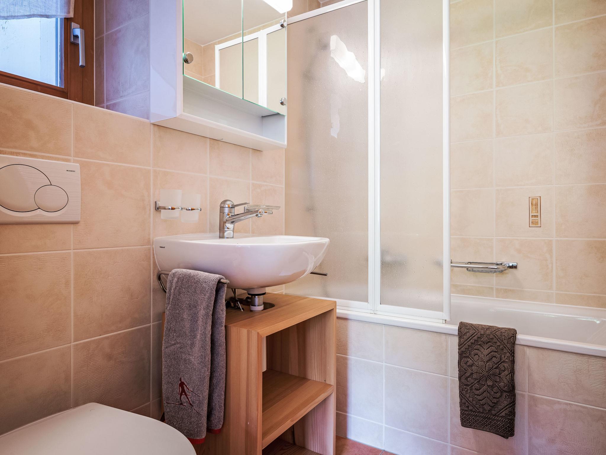 "Rhodos B 101", 3-room apartment 65 m2 on 1st floor, south facing position. Spacious and bright, tasteful and cosy furnishings: living/dining room with cable TV and DVD. Exit to the balcony. 1 room with 1 double bed (2 x 90 cm, length 200 cm), bath/WC. 1 room with 2 beds (90 cm, length 200 cm). Open kitchen (oven, dishwasher, 4 ceramic glass hob hotplates, toaster, kettle, microwave, electric coffee machine, Capsules for coffee machine (Nespresso) extra, raclette grill, fondue Set (cheese)). Shower/WC. Balcony 20 m2, south facing position and, east facing position. Balcony furniture. Beautiful view of the mountains. Facilities: hair dryer. Internet (WiFi, free). Garage space n B101 (1 car), height 200 cm. Please note: non-smokers only.