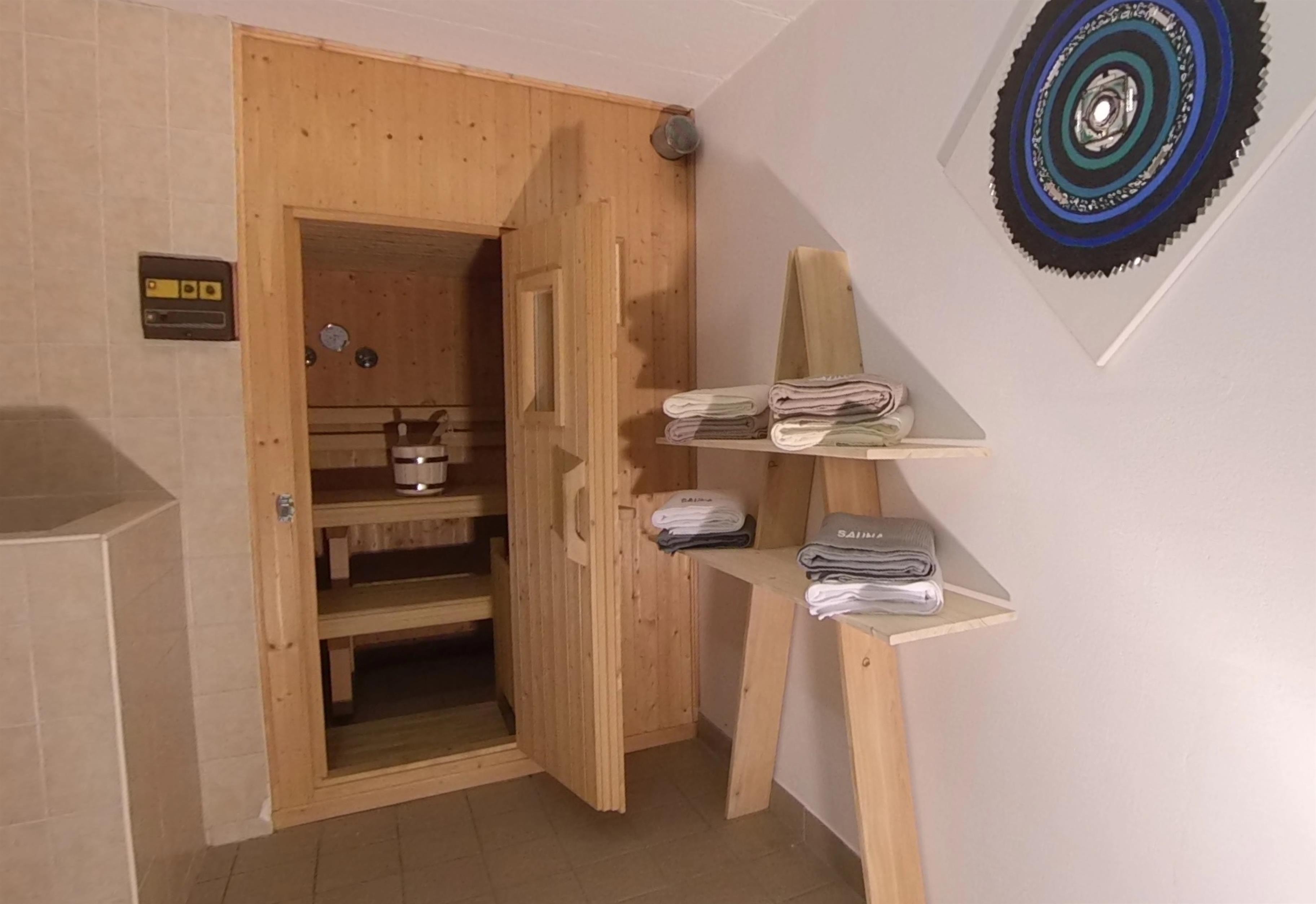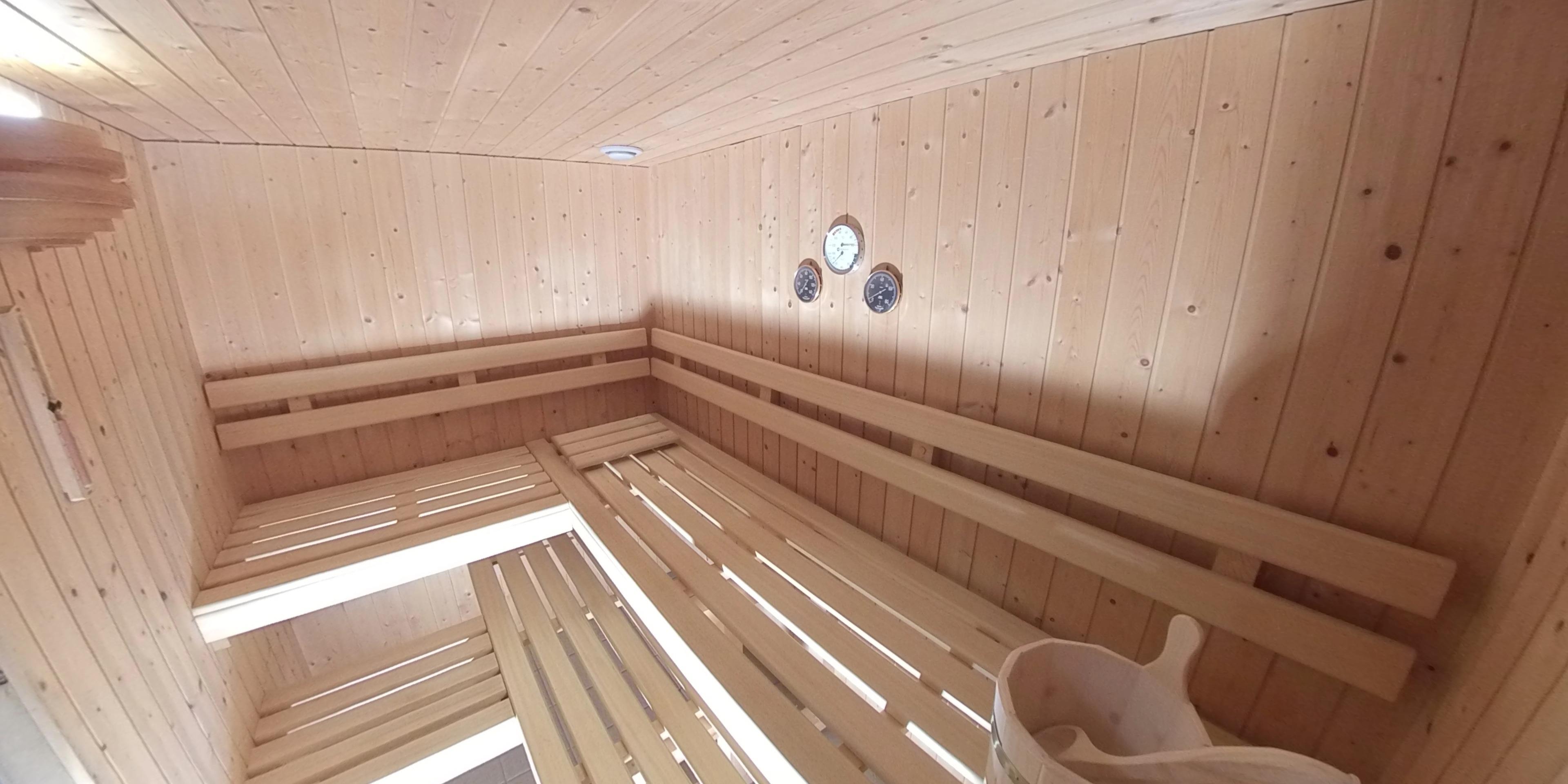 Im Erdgeschoss befindet sich die Sauna und eine grosse Garderobe.?