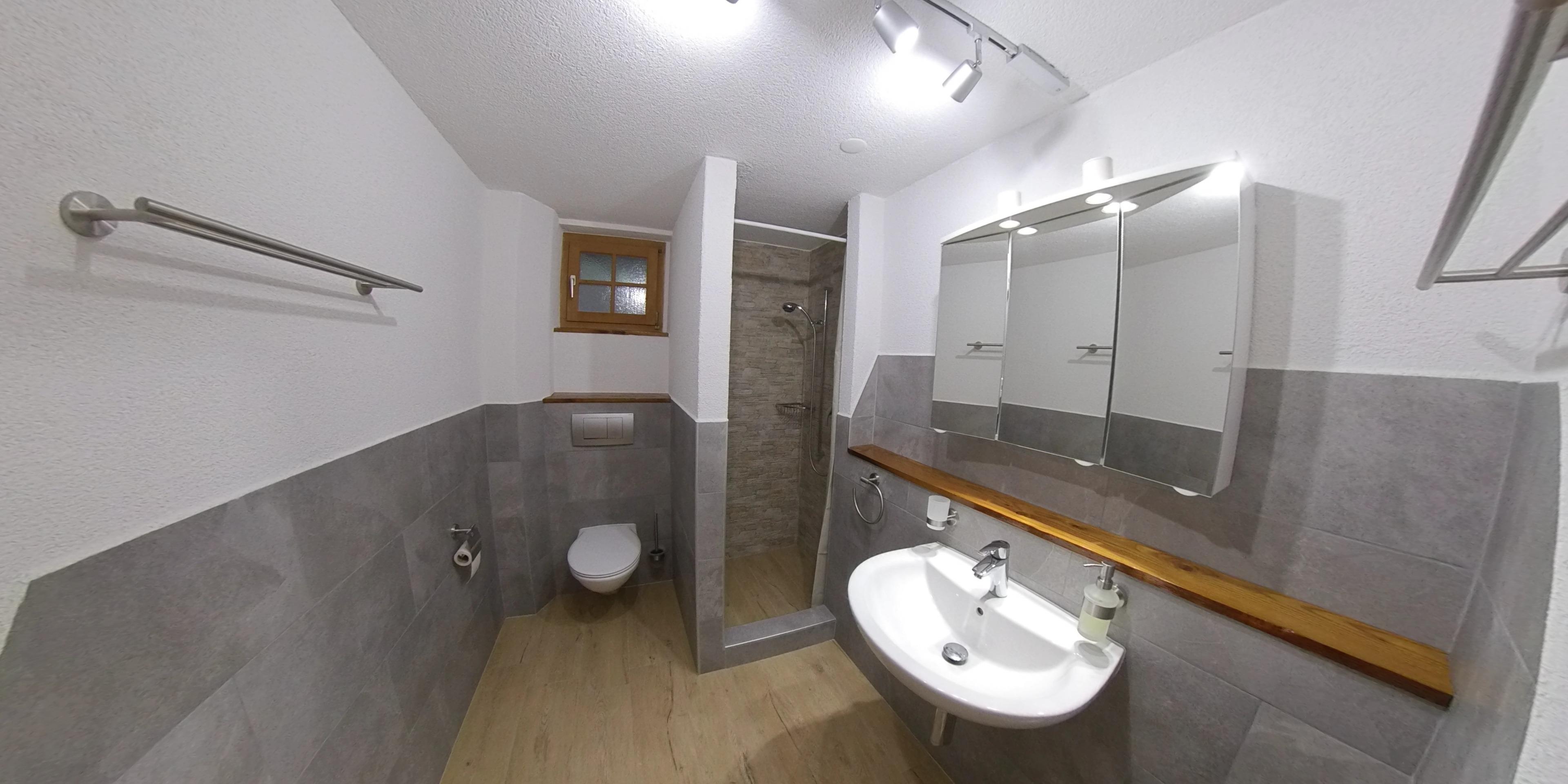 Schlafzimmer: alle 4 Schlafzimmer sind mit einem grossen Doppelbett mit hochwertigen 18 cm hohen Matratzen (2x90x200cm) ausgestattet und verdunkelbar.??Im ersten Obergeschoss befindet sich 1 Doppelzimmer mit Doppelbett 180x200cm und ein Badezimmer mit Dusche/WC.