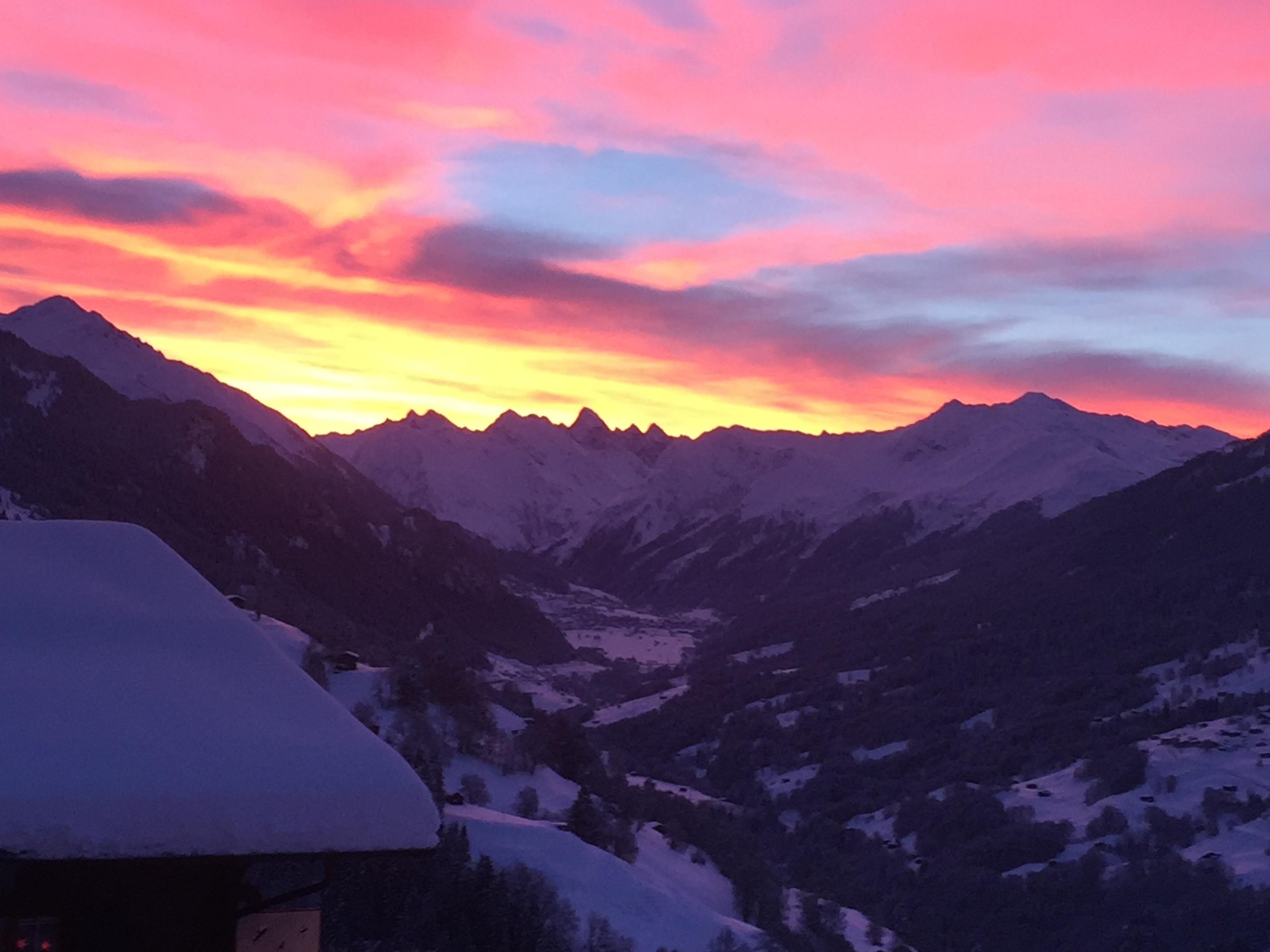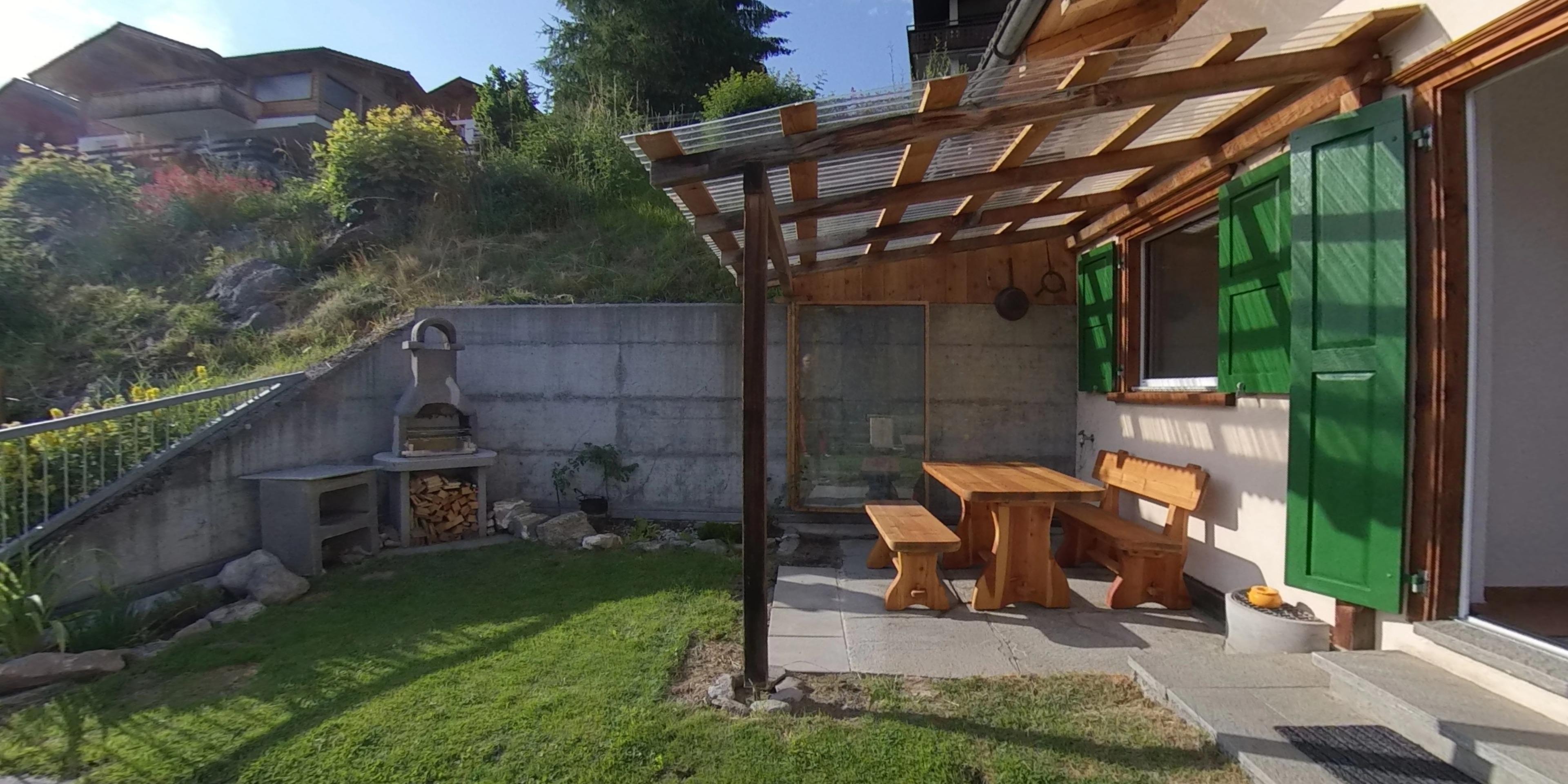 Grosszügiges, sonniges Haus (170m2, renoviert 2021) für bis zu 9 Personen mit 4 Schlafzimmern, Sauna, Balkon und Sitzplatz mit Grill und sensationeller Sicht in die Berge.