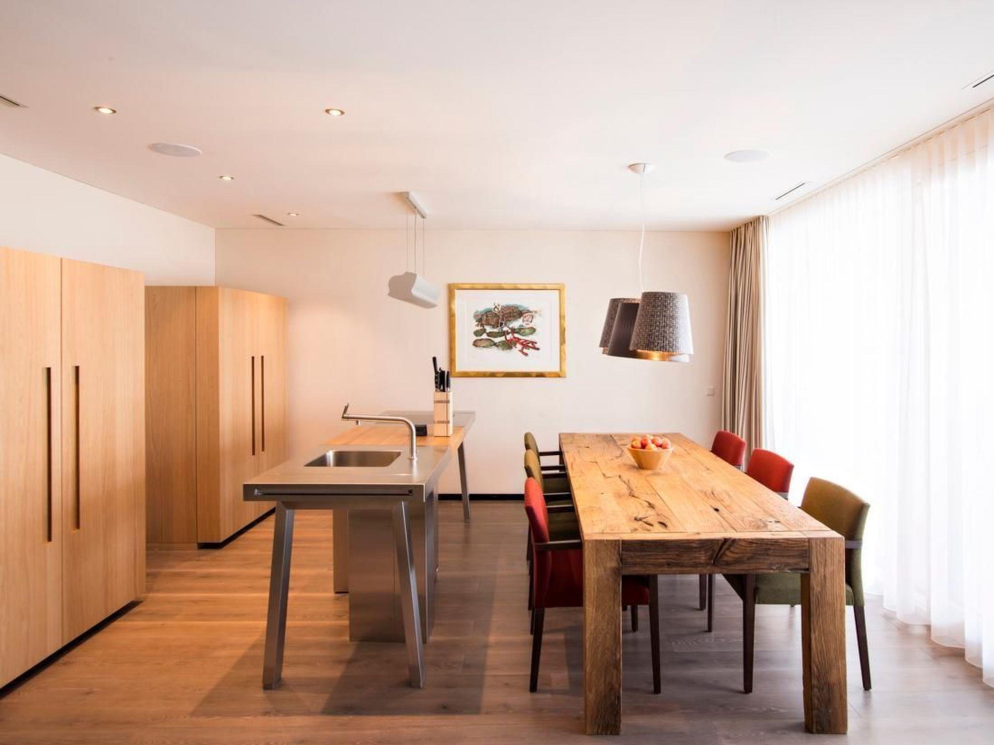You will find your home on 143m2. The local Swiss stone pine wood will accompany you throughout the flat and exudes a cosy feeling of security. The apartment is connected underground to the hotel complex of the Sporthotel Pontresina. For 2-6 persons possible. For an occupancy of 6 persons, 2 persons sleep on the sofa bed in the living room