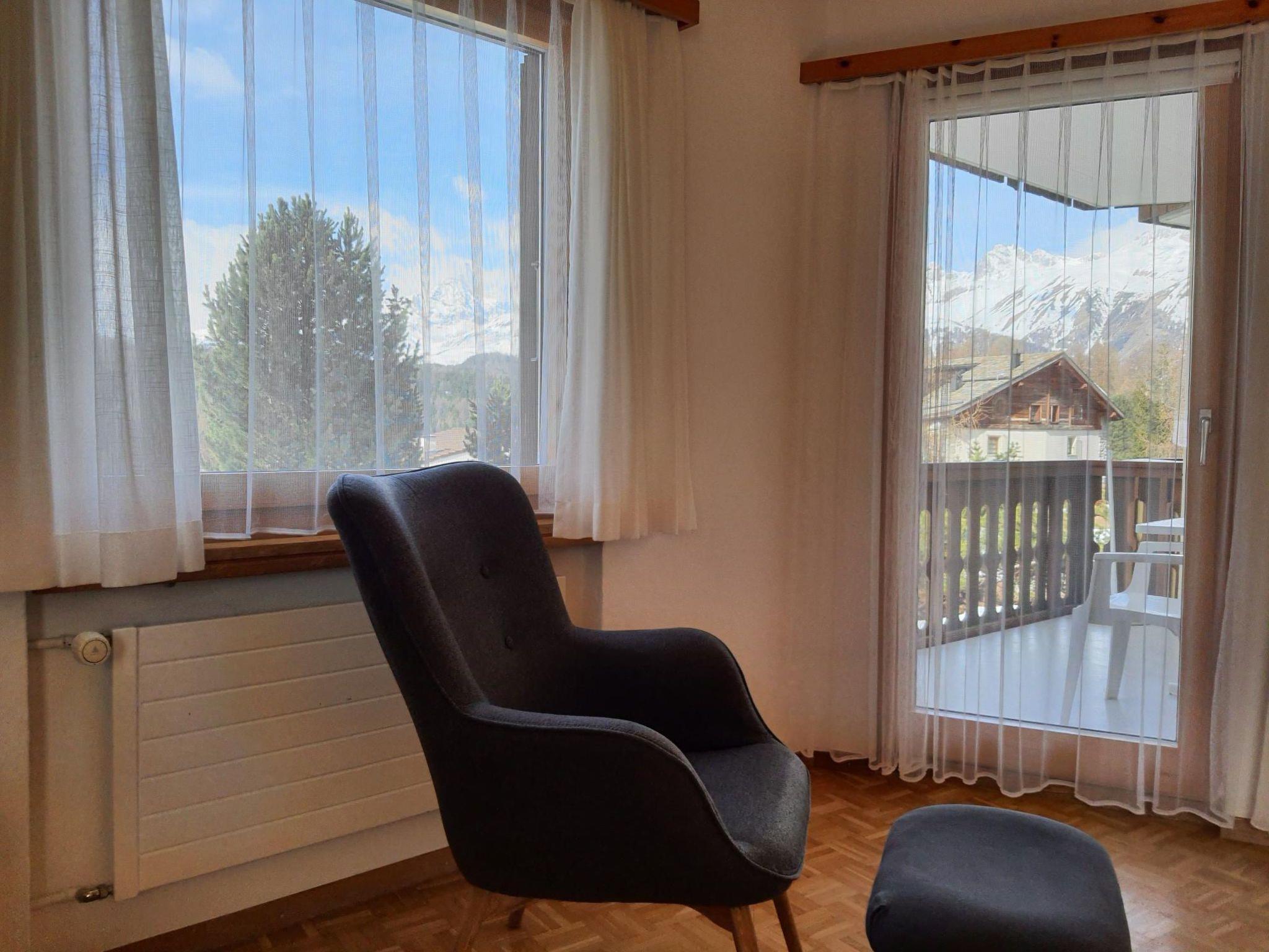 Beautiful, bright 3 1/2-room flat (65m2 for 4 people) on the mezzanine floor, particularly quiet, slightly sloping location in the Muragls district.