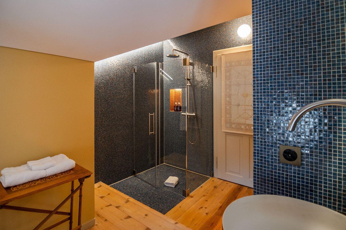 1. Obergeschoss: grosser Vorplatz. 3 Doppelschlafzimmer, wovon eines mit ensuit Badezimmer. 1 separate Dusche. 1 "Tee-Erker" mit Verglasung.