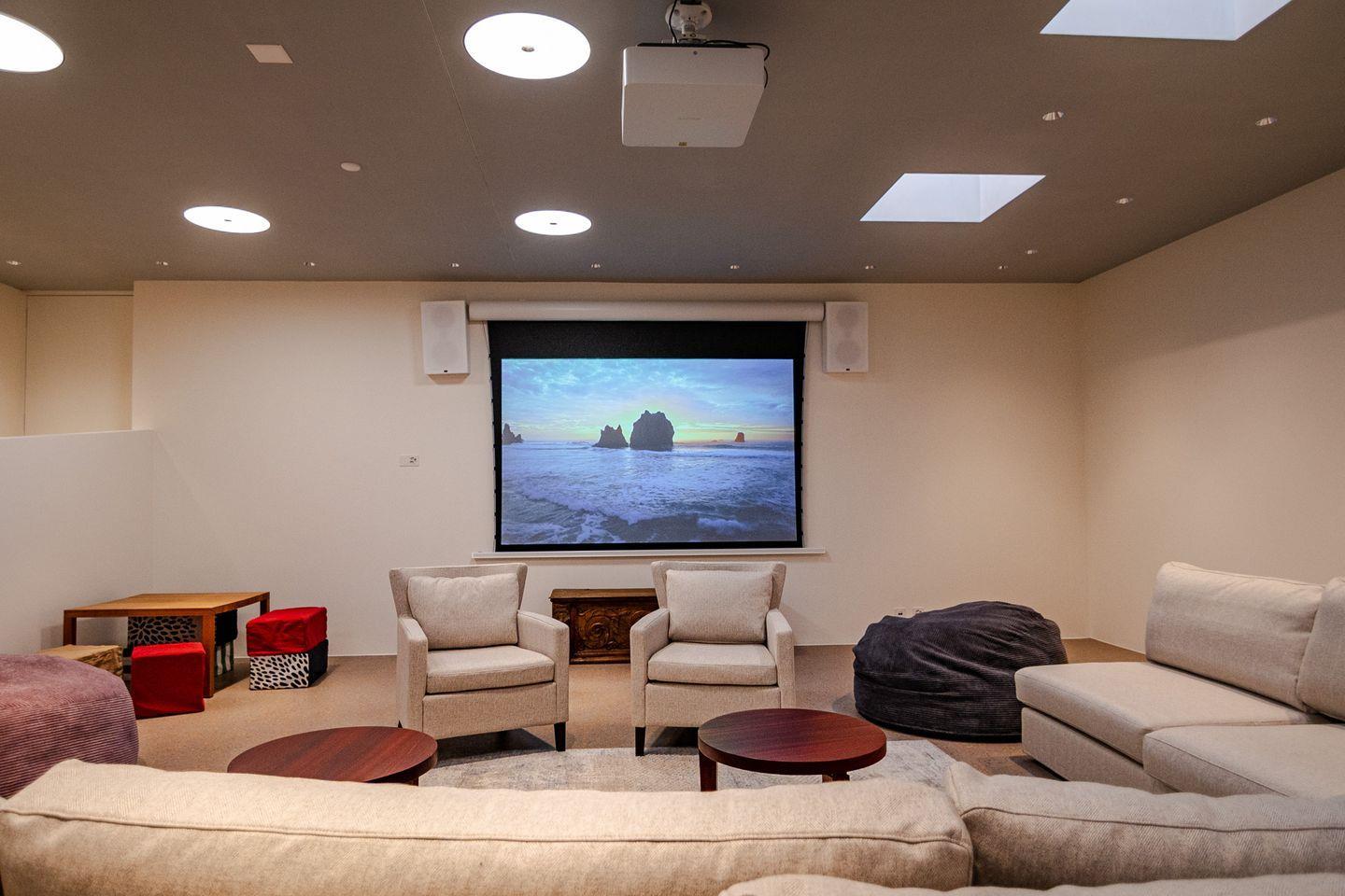 Untergeschoss: Moderner, grosszügiger Kinosaal, Seminarraum. Der Spa-Bereich mit Whirlpools, Sauna, Dampfbad, Massage- und Ruheraum rundet das Erholungsangebot in der Villa ab.