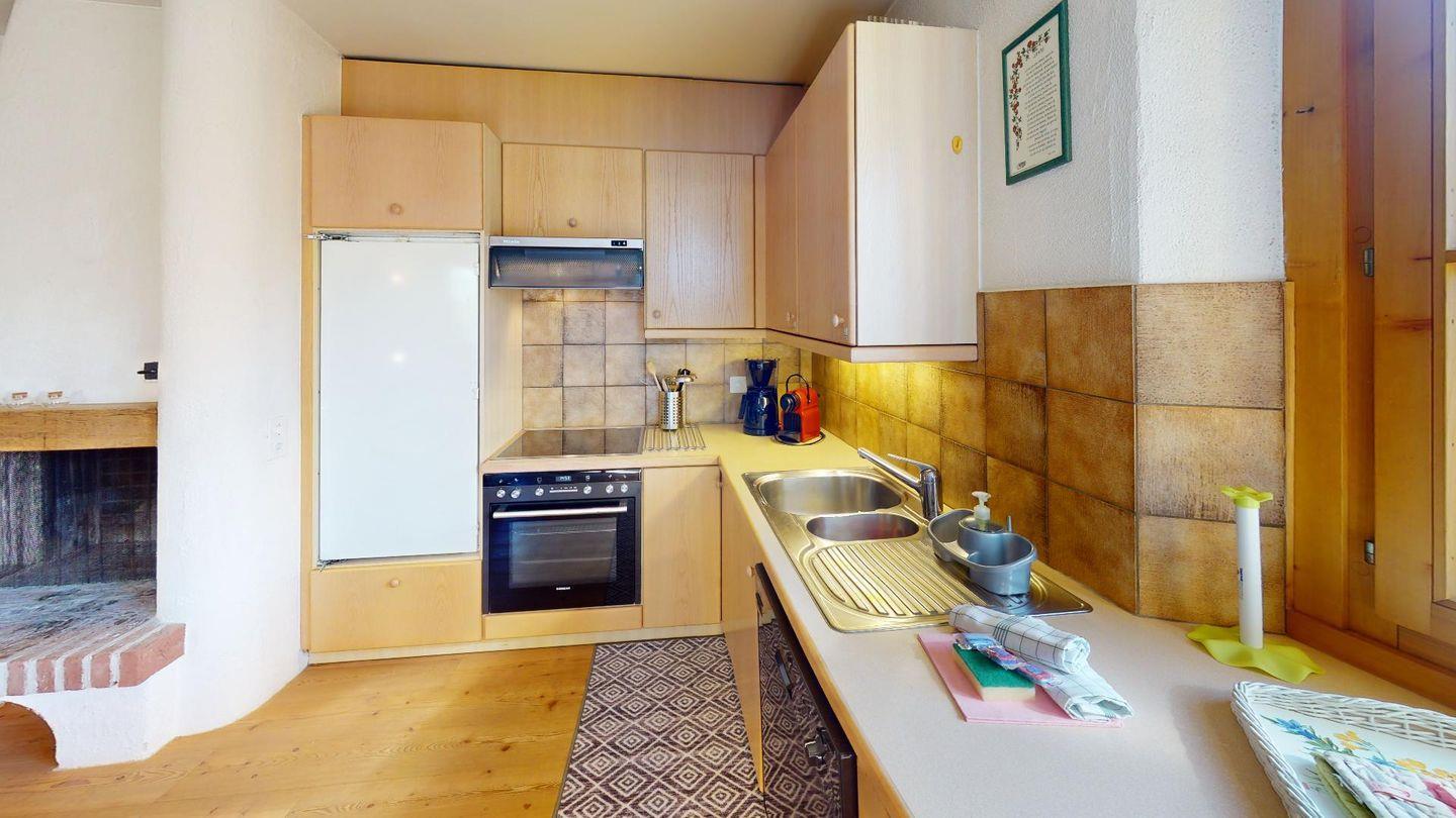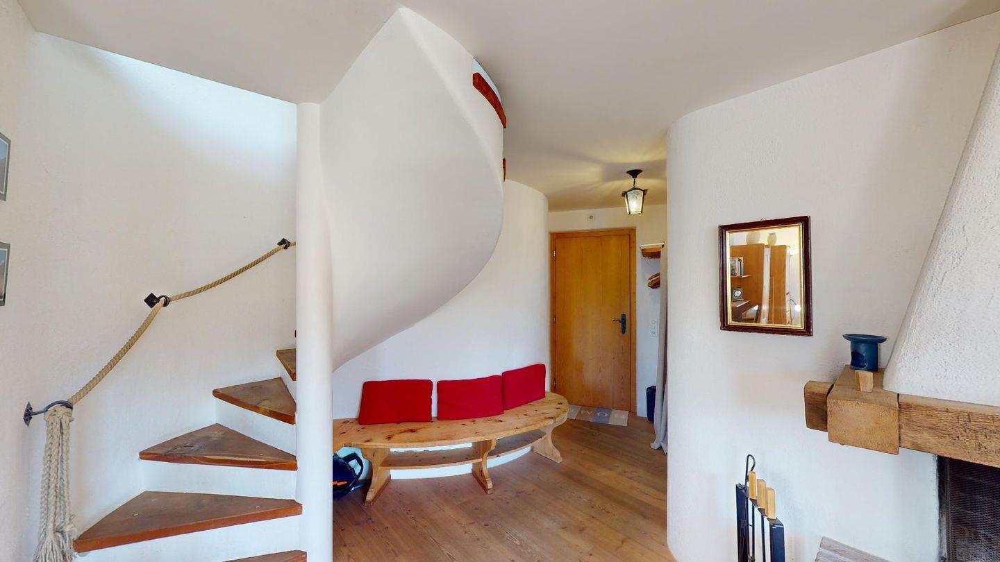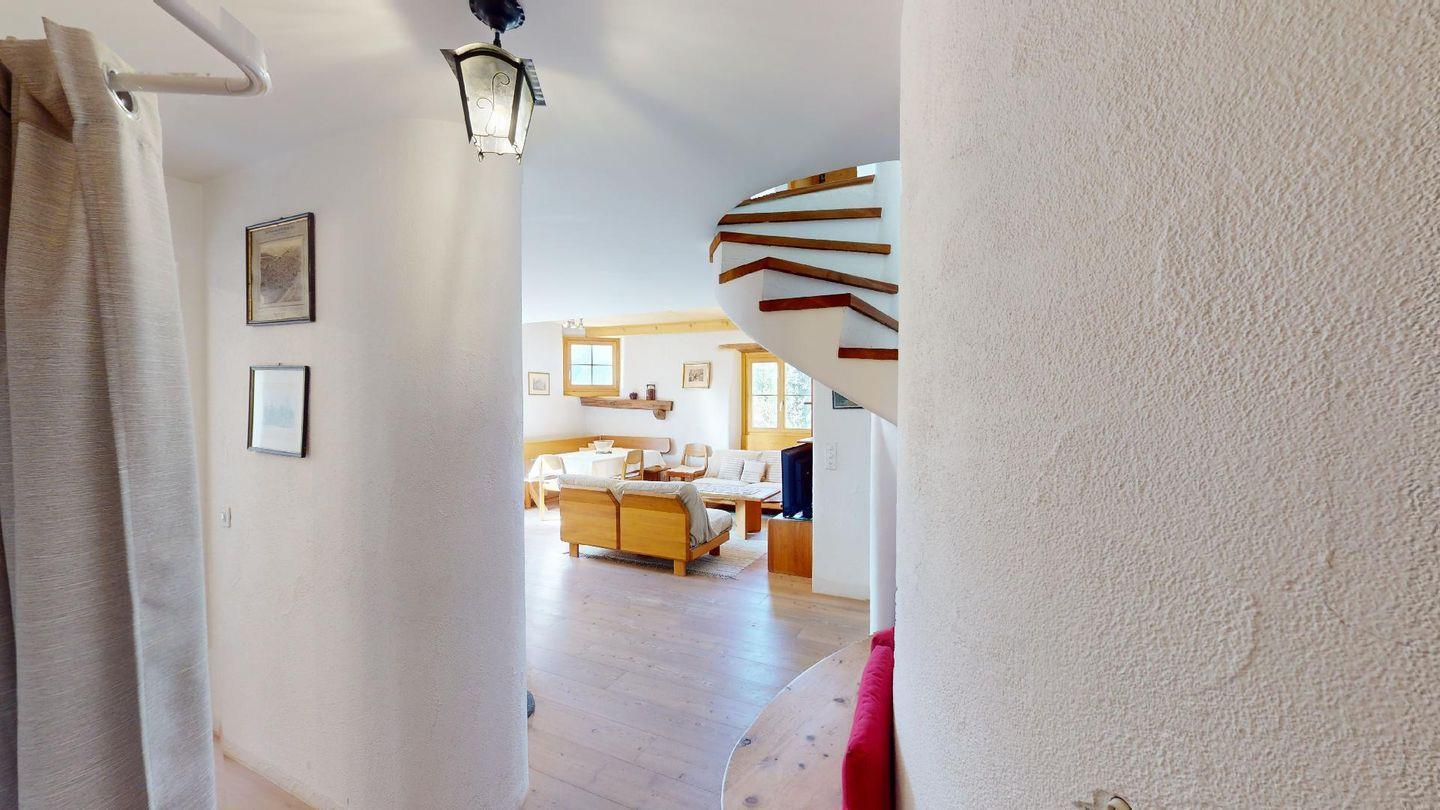 3.5 Zimmer-Dachwohnung im dritten Stock eines Engadinerhauses. Die Wohnung ist auf zwei Stockwerken und befindet sich an ruhiger und zentraler Lage in Pontresina.